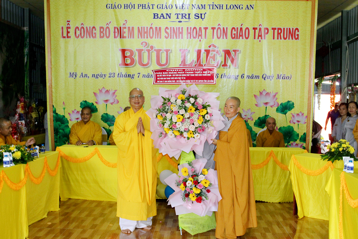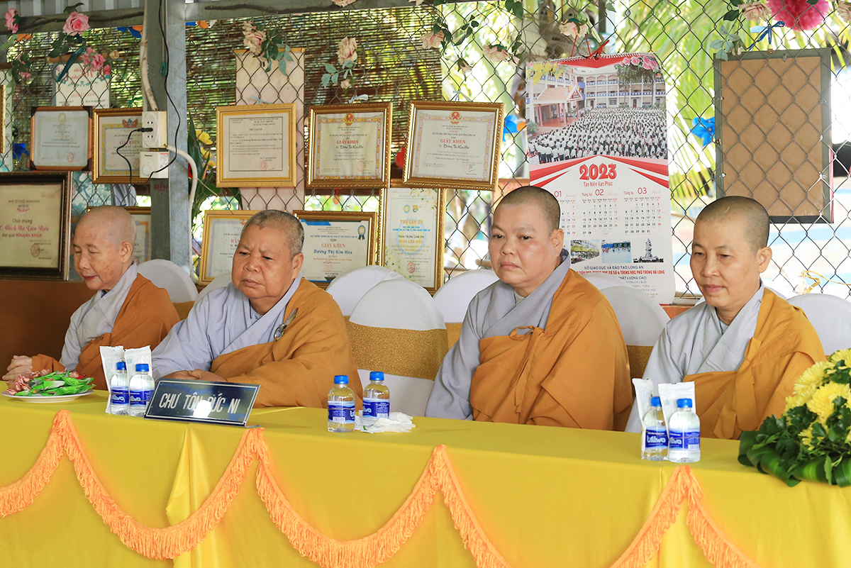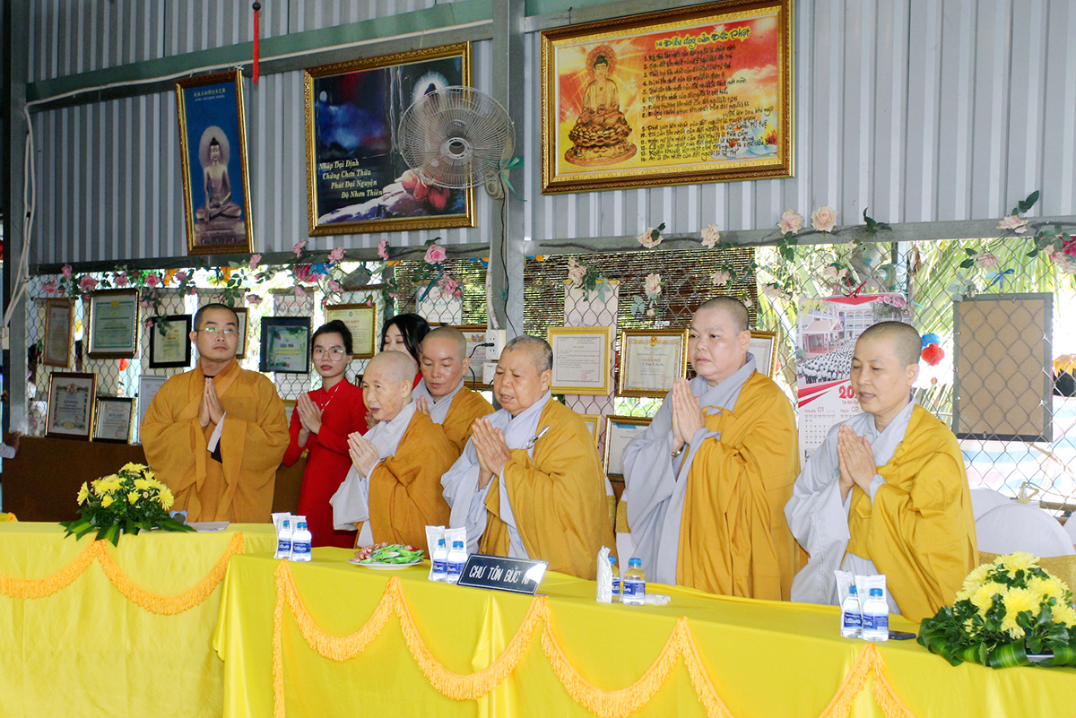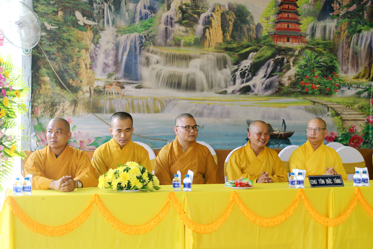 Chứng minh và tham dự buổi lễ có sự hiện diện của Hoà thượng Thích Thiện Huệ – Thành viên Hội đồng chứng minh GHPGVN, Chứng minh BTS Tỉnh Long An; Hòa thượng Thích Minh Thiện – Uỷ viên HĐTS, Phó ban Hoằng pháp TW, Trưởng BTS GHPGVN tỉnh Long An; Thượng tọa Thích Quảng Tâm – Uỷ viên HĐTS, Phó Trưởng ban Thường trực BTS GHPGVN tỉnh Long An; Đại đức Thích Lệ Duyên – Phó ban kiêm Chánh Thư ký Ban Trị sự GHPGVN tỉnh Long An, Trưởng ban Trị sự GHPGVN huyện Đức Hòa; Đại đức Thích Thiện Danh – Phó Thư ký kiêm Chánh Văn phòng BTS GHPGVN tỉnh Long An; Thượng tọa Thích Lệ Tấn – Ủy viên Thường trực BTS GHPGVN tỉnh Long An, Trưởng BTS GHPGVN huyện Tân Thạnh; Thượng Tọa Thích Tất Quảng – Chứng minh BTS GHPGVN huyện Thủ Thừa; Đại đức Thích An Nhựt – Ủy viên Thường trực GHPGVN tỉnh Long An, Trưởng ban Hướng dẫn Phật tử tỉnh Long An, Trưởng BTS GHPGVN huyện Thủ Thừa; Ni trưởng Thích Nữ Tuệ Đăng – Phó trưởng BTS, Trưởng Phân Ban Ni giới GHPGVN tỉnh Long An cùng Chư tôn đức Tăng Ni trong địa bàn huyện.