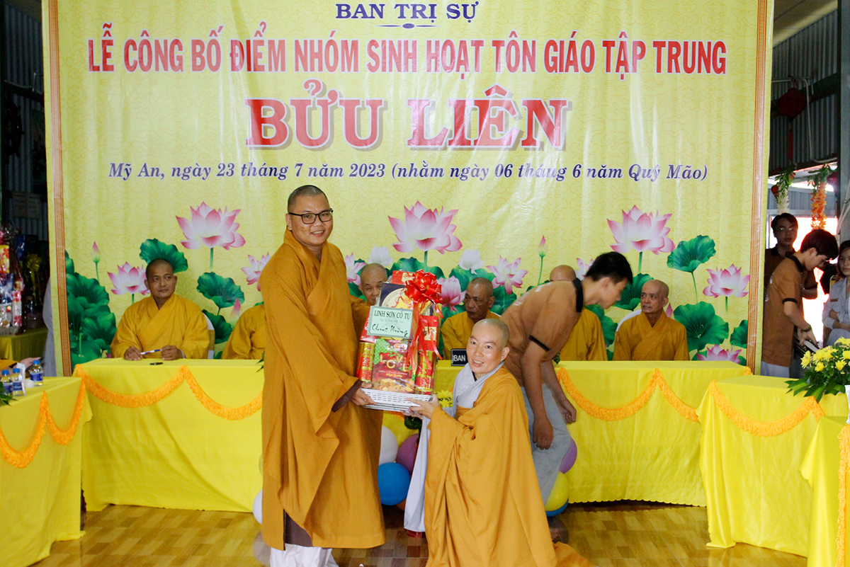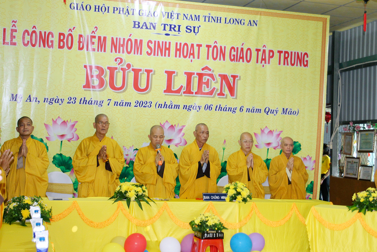 Đãi lao Chư tôn đức chứng minh, Hòa thượng Thích Minh Thiện có lời phát biểu chỉ đạo. Việc công bố thành lập điểm nhóm sinh hoạt Tôn giáo tập trung Bửu Liên đúng theo quy định của luật tín ngưỡng Tôn giáo, hiến chương GHPGVN, nội quy Ban Tăng sự Trung ương GHPGVN nhằm đáp ứng nhu cầu sinh hoạt tu học của bộ phận quần chúng tín đồ ở các địa phương chưa có cơ sở già lam tự viện trực thuộc Giáo hội đây cũng là bước để có cơ sở cho đồng bào Phật tử đến với quý Chư tôn đức Tăng Ni hướng dẫn tinh thần thực hiện nghi lễ chánh tín theo Phật giáo và nhất là lắng nghe học hiểu tin thần chánh tín của Đạo Phật và qua đó cúng chính là cơ hội để Tăng Ni quản lý các đạo tràng tu học như vậy đúng theo tinh thần yêu nước của dân tộc, đạo pháp dân tộc và chủ nghĩa xã hội.