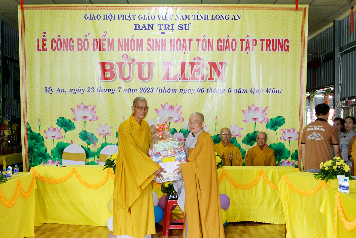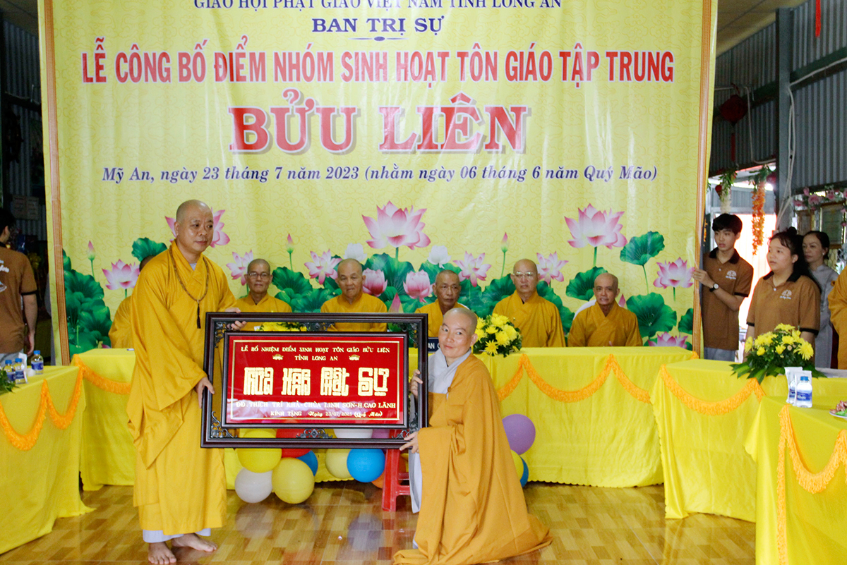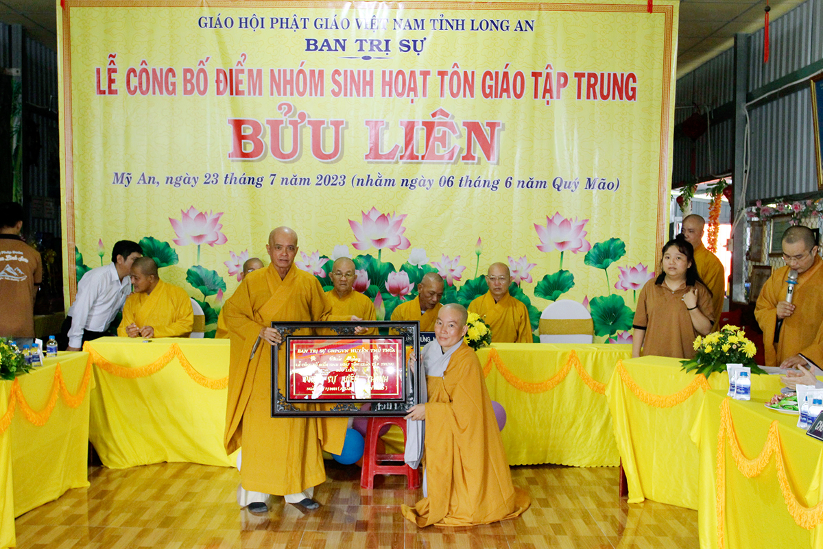 Sáng nay, ngày 23 tháng 07 năm 2023 (nhằm ngày 06/06/Quý Mão), Ban Trị sự GHPGVN tỉnh Long An kết hợp Ban Trị sự GHPGVN huyện Thủ Thừa long trọng tổ chức Lễ công bố quyết định thành lập điểm nhóm sinh hoạt Tôn giáo tập trung Bửu Hiền, toạ lạc tại ấp 4, xã Mỹ An, huyện Thủ Thừa, tỉnh Long An, do Sư cô Thích Nữ Liên Hiền quản lý.