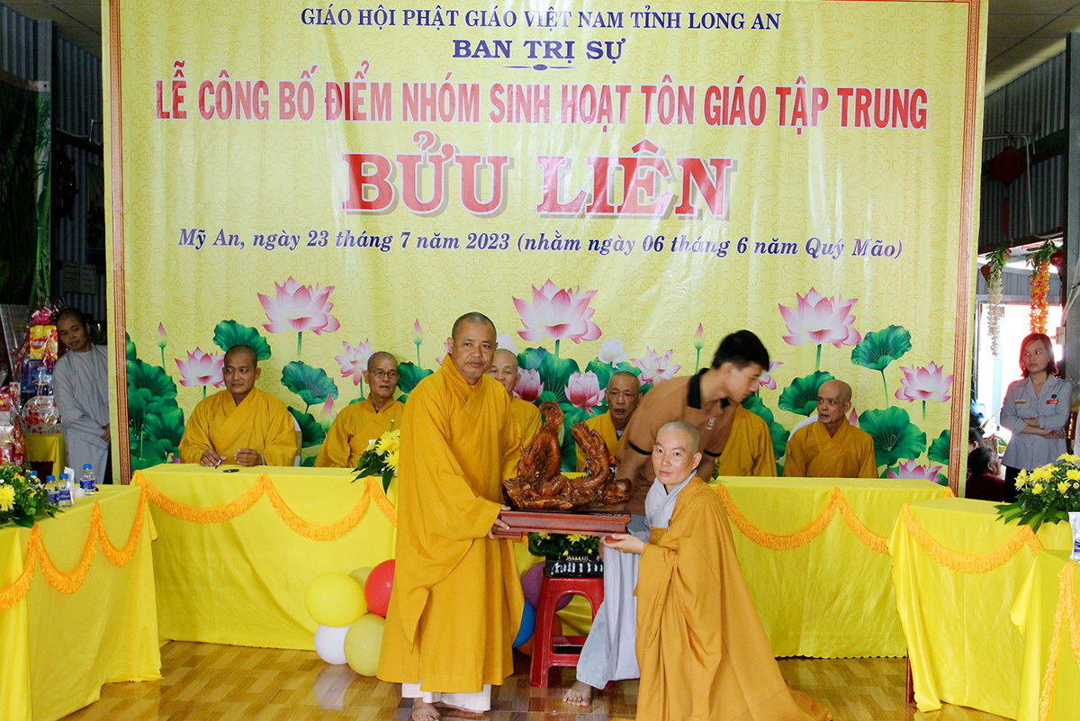 Tiếp theo, Đại đức Thích Thiện Danh – Phó Thư ký kiêm Chánh Văn phòng BTS GHPGVN tỉnh Long An thông qua nội dung chương trình sinh hoạt tại Đạo tràng Bửu Liên. Theo đó, hoạt động thường xuyên từ 18g30 đến 19g30 các ngày trong năm là tụng kinh Di Đà, Vu Lan, Pháp Hoa, Sám hối… Hoạt động tiêu biểu là 15 âm lịch tháng Giêng, tháng 4, tháng 7, tháng 10 cúng rằm; các ngày vía Phật, Bồ tát; khóa tu Bát Quan Trai.
