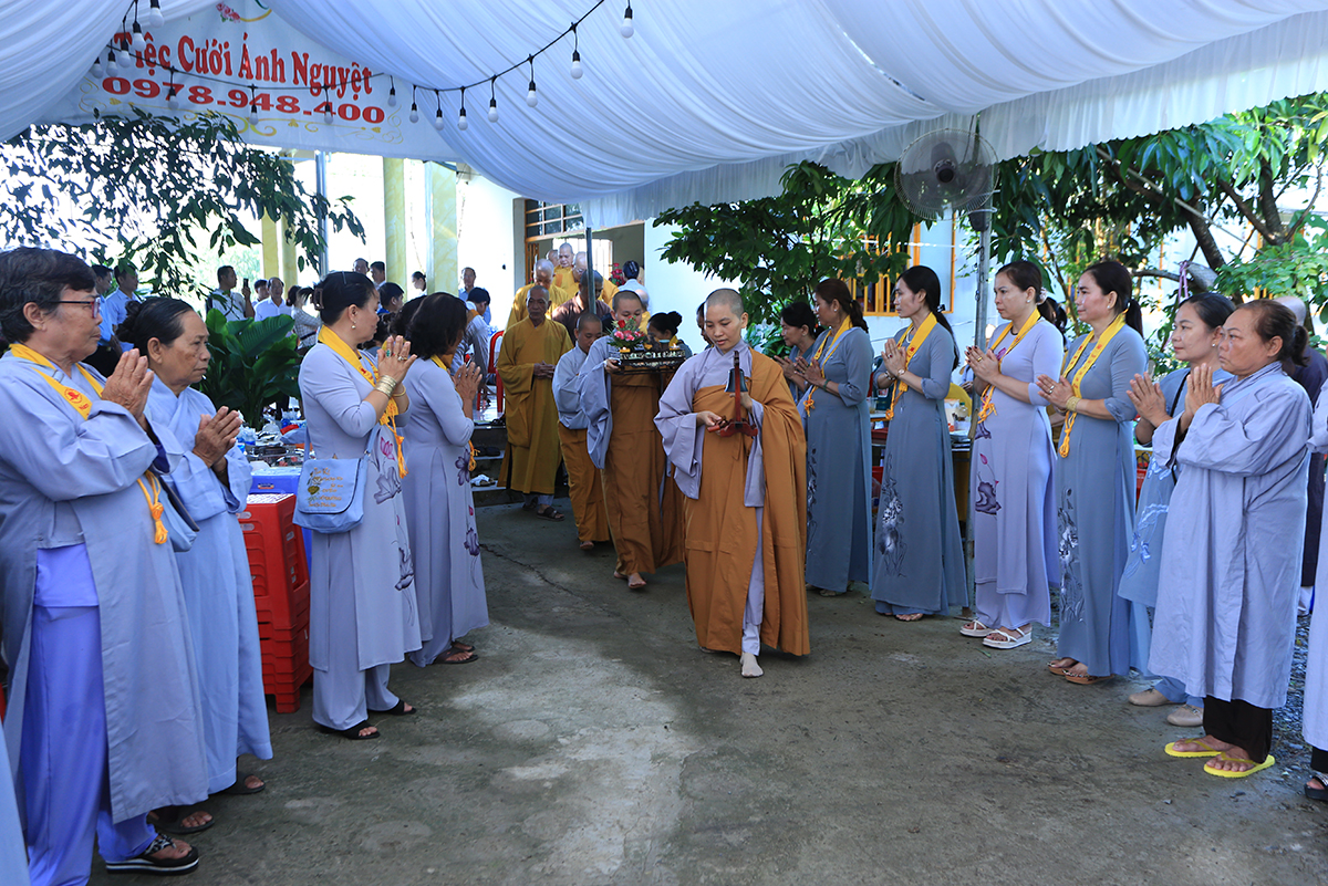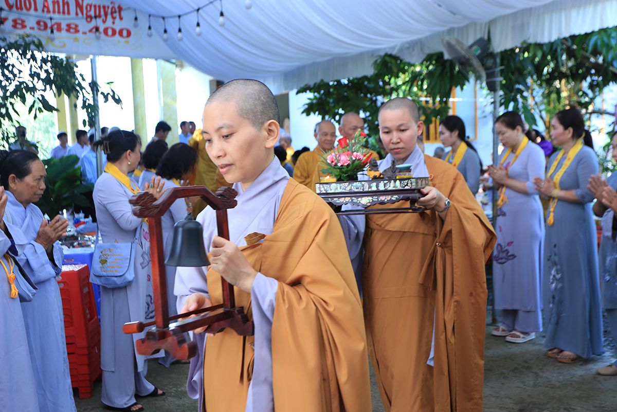 Sau lễ hành chính, Chư tôn đức chứng minh quang lâm cổng Tam quan thực hiện nghi thức thượng bảng, tiếp đó là nghi thức an vị Phật và sái tịnh đạo tràng. Buổi lễ kết thúc trong niềm hoan hỷ của tất cả mọi người.