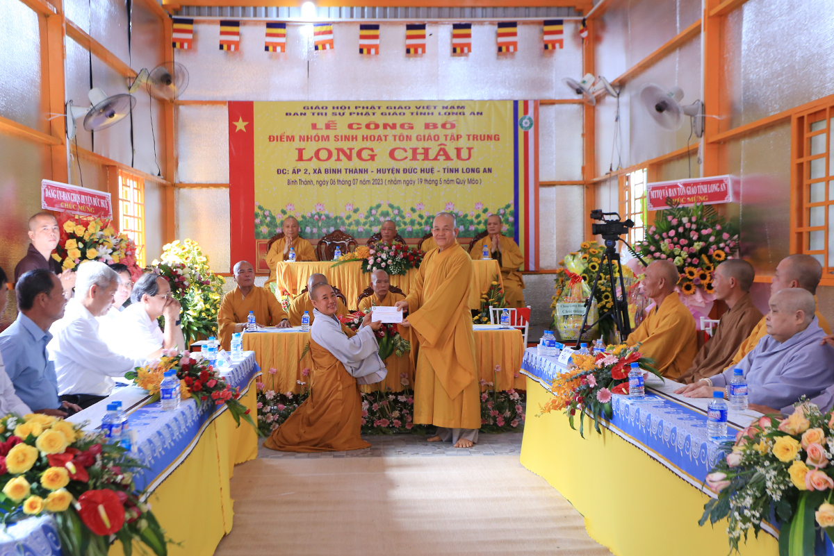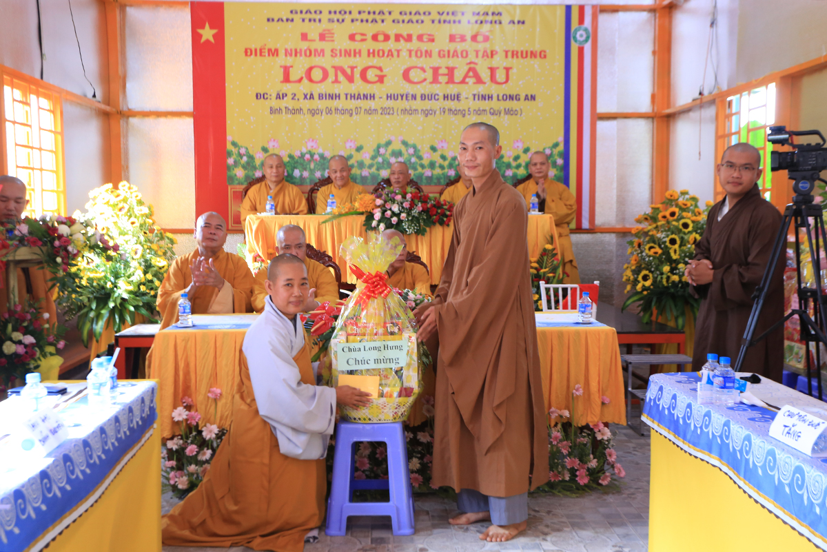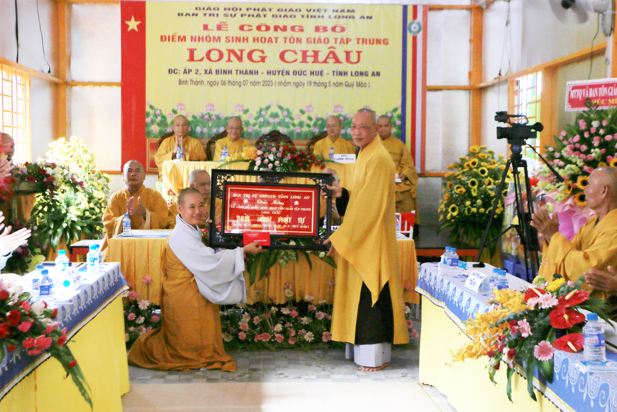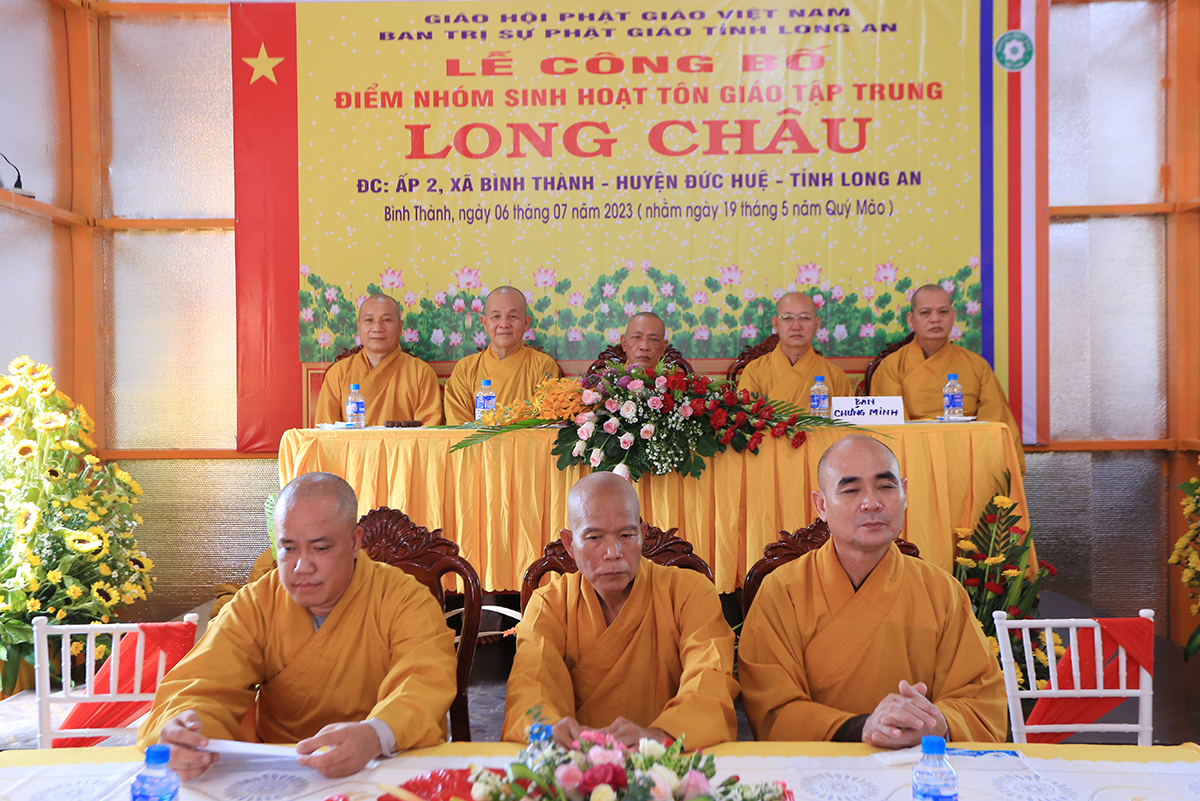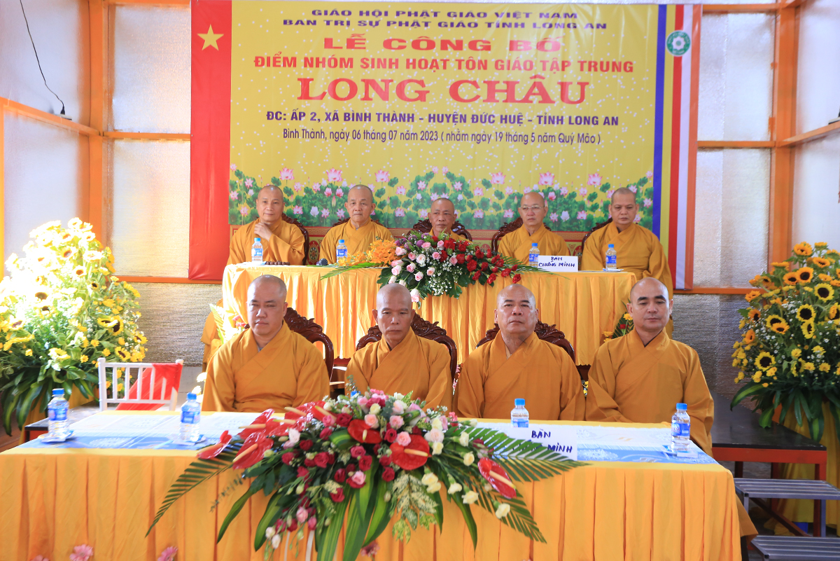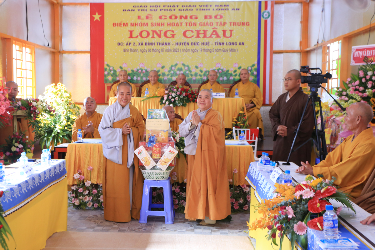 Sáng ngày 06 tháng 07 năm 2023 (nhằm ngày 19/05/Quý Mão), Ban Trị sự GHPGVN tỉnh Long An kết hợp Ban Trị sự GHPGVN huyện Đức Huệ long trọng tổ chức Lễ công bố quyết định thành lập điểm nhóm sinh hoạt tôn giáo tập trung Long Châu, toạ lạc tại ấp 2, xã Bình Thành, huyện Đức Huệ, tỉnh Long An, do Sư cô Thích Nữ Chúc Hà quản lý.