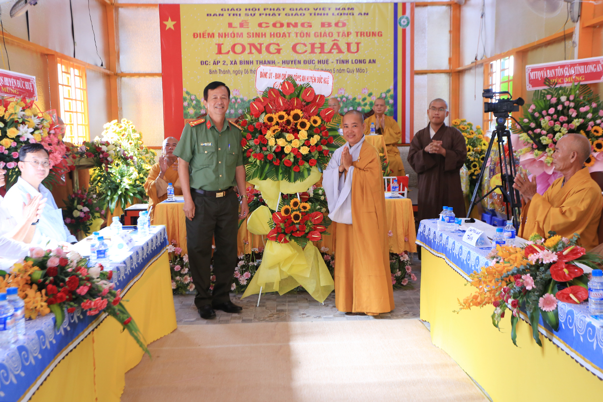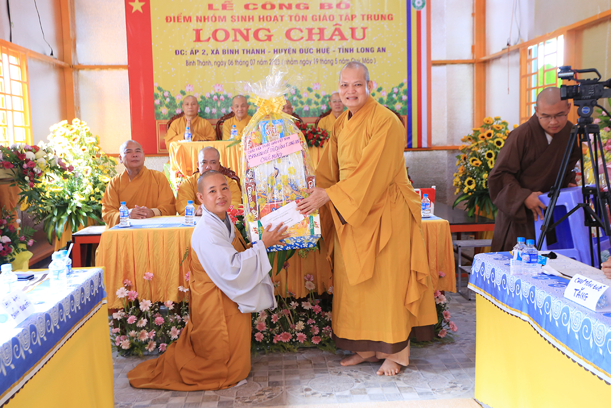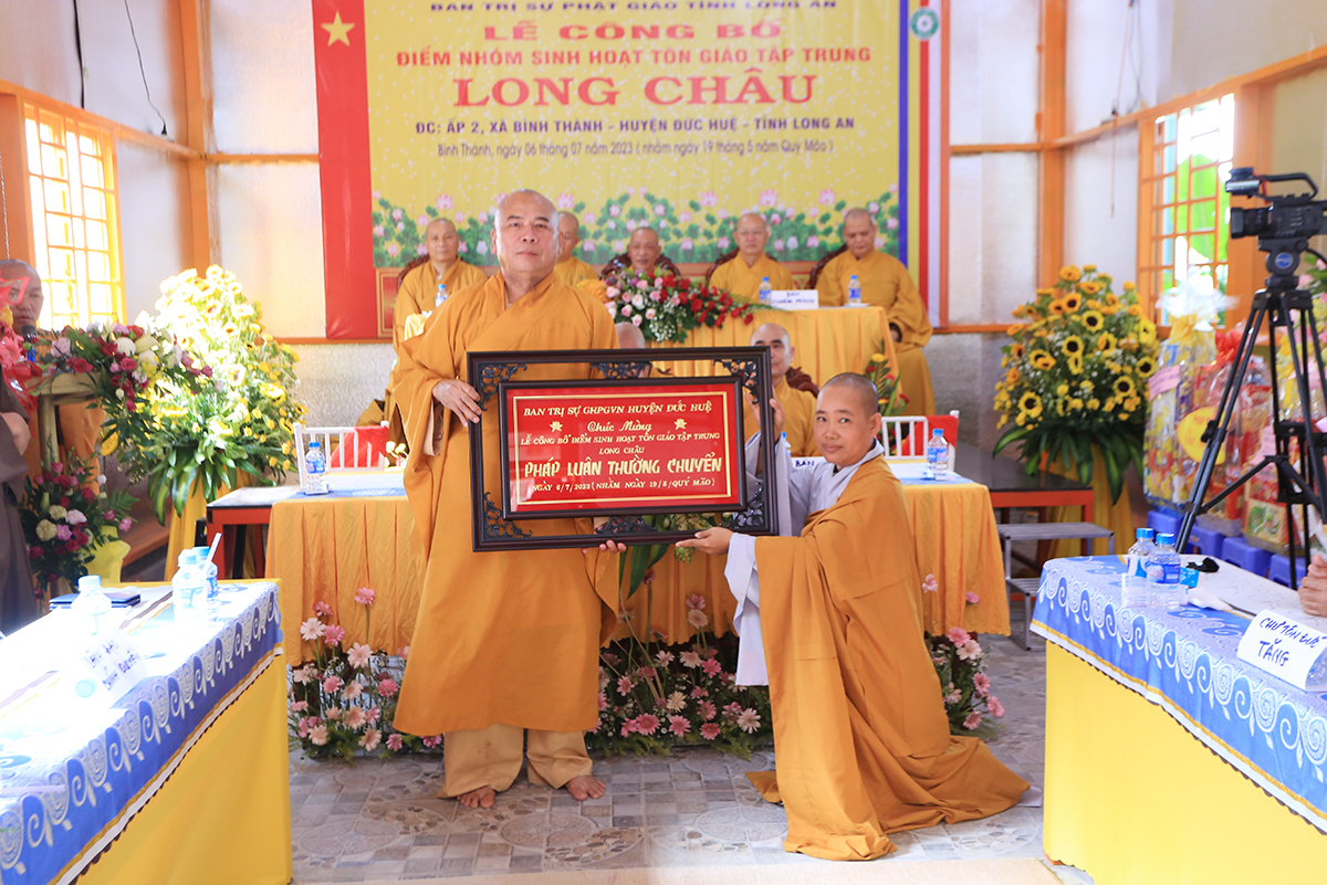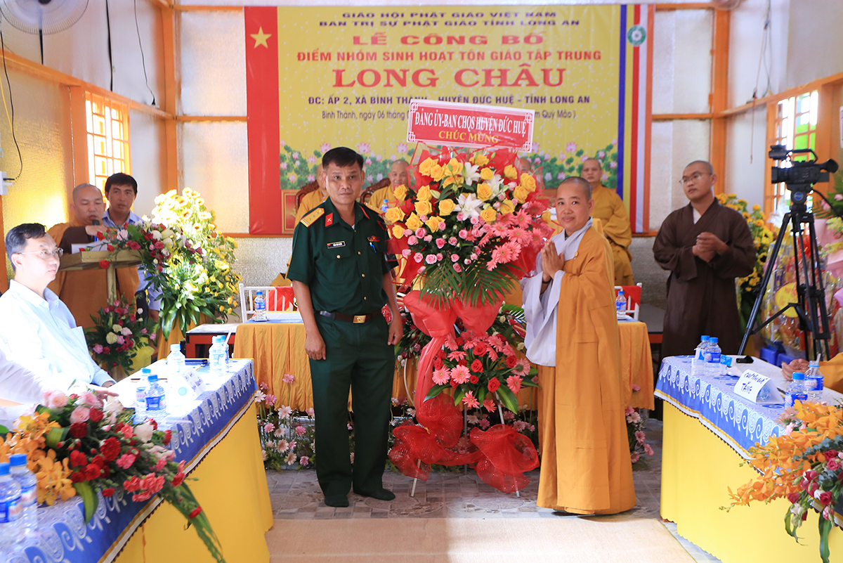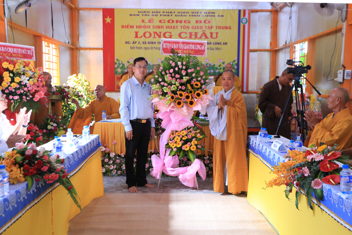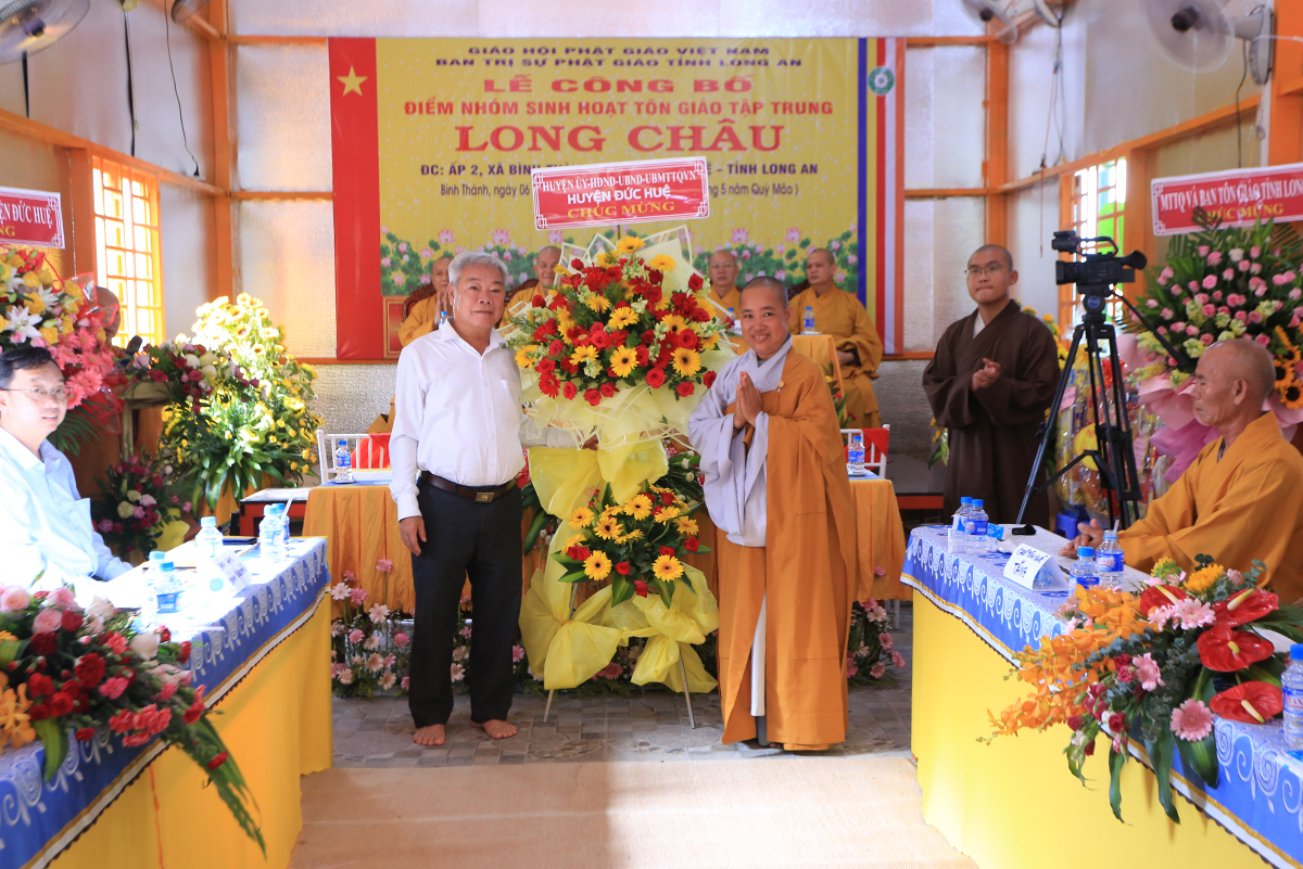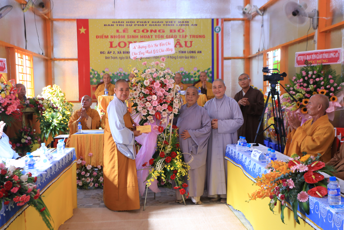 Sáng ngày 06 tháng 07 năm 2023 (nhằm ngày 19/05/Quý Mão), Ban Trị sự GHPGVN tỉnh Long An kết hợp Ban Trị sự GHPGVN huyện Đức Huệ long trọng tổ chức Lễ công bố quyết định thành lập điểm nhóm sinh hoạt tôn giáo tập trung Long Châu, toạ lạc tại ấp 2, xã Bình Thành, huyện Đức Huệ, tỉnh Long An, do Sư cô Thích Nữ Chúc Hà quản lý.