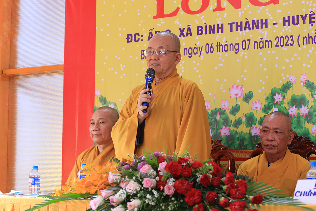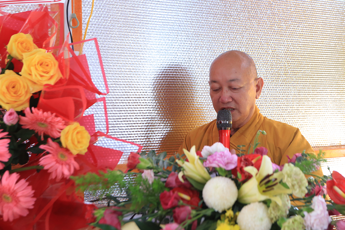 Thượng toạ Thích Thiện An – Uỷ viên BTS GHPGVN tỉnh Long An, Trưởng BTS GHPGVN huyện Đức Huệ thay mặt Ban Tổ chức dâng lời cảm tạ đến chư tôn Hoà thượng chứng minh, chư tôn đức ban Thường trực GHPGVN tỉnh Long An, các Ban Trị sự huyện thị xã, thành phố; quý vị lãnh đạo chính quyền các cấp cùng Chư tôn đứcTăng Ni, Phật tử đã quang lâm chứng minh ban đạo từ, phát biểu chỉ đạo và tham dự buổi lễ.