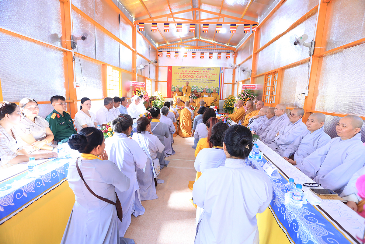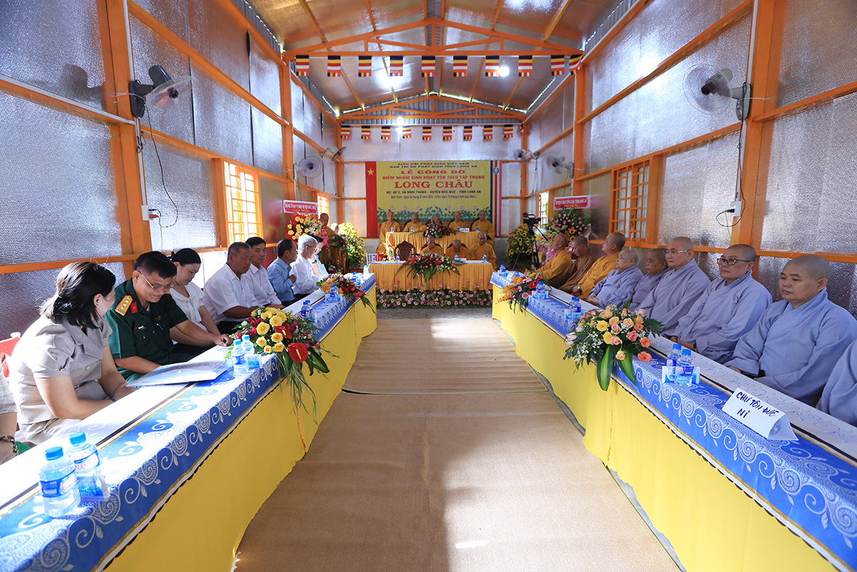 Tại buổi lễ, Thượng tọa Thích Quảng Tâm- Phó Trưởng ban Thường trực BTS GHPGVN tỉnh Long An tuyên đọc giấy chứng nhận đăng ký sinh hoạt tôn giáo tập trung Long Châu.