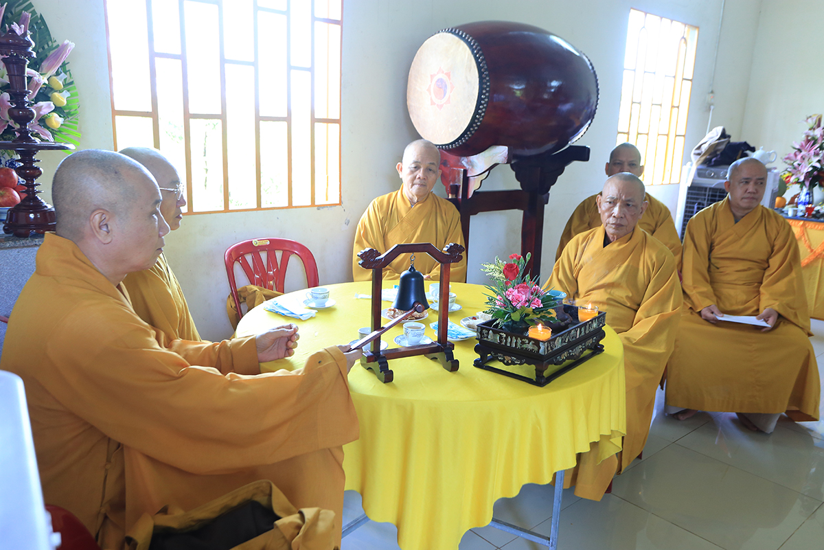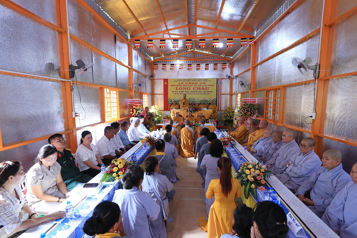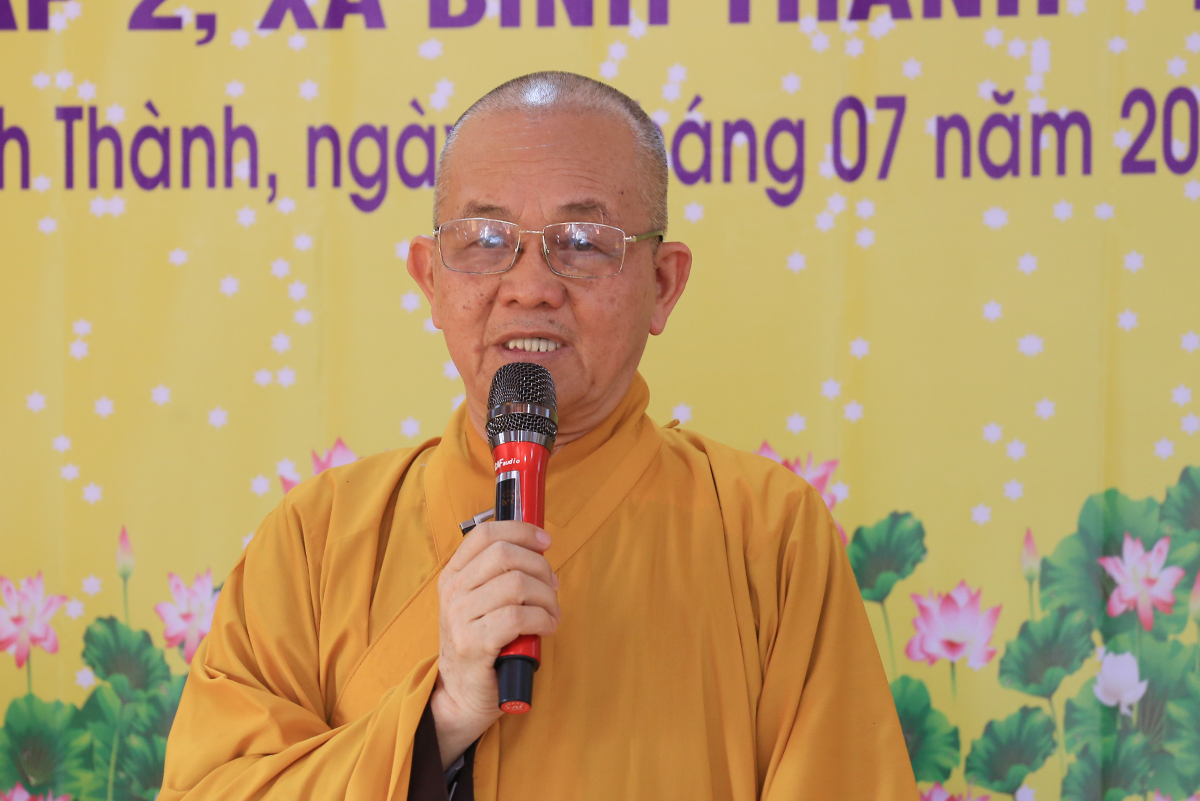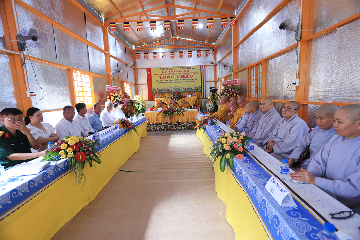 Ban lời đạo từ, Hòa thượng Thích Minh Thiện – Uỷ viên Hội Đồng Trị Sự trung ưng, Trưởng BTS GHPGVN tỉnh Long An gửi lời tri ân sâu sắc đến Mặt Trận tổ quốc, Ban Tôn giáo, Ban Dân vận tỉnh – huyện cùng các cơ quan chức năng hữu quan đã tạo điều kiện cho Phật giáo có được thêm một điểm nhóm sinh hoạt tập trung. Hòa thượng nhắc lại truyền thống văn hóa Phật giáo nước nhà mấy ngàn năm lịch sử luôn đồng hành cùng Dân tộc. Đặc biệt nói về việc Phát triển Phật giáo ở huyện Đức Huệ, vùng đất giáp biên giới chịu nhiều thiệt hại do chiến tranh còn để lại là tích cực đền ơn đồng bào địa phương Đức Huệ.