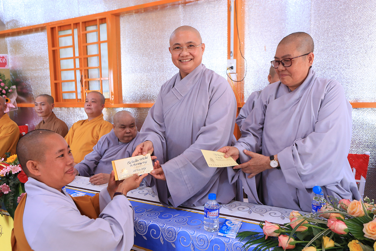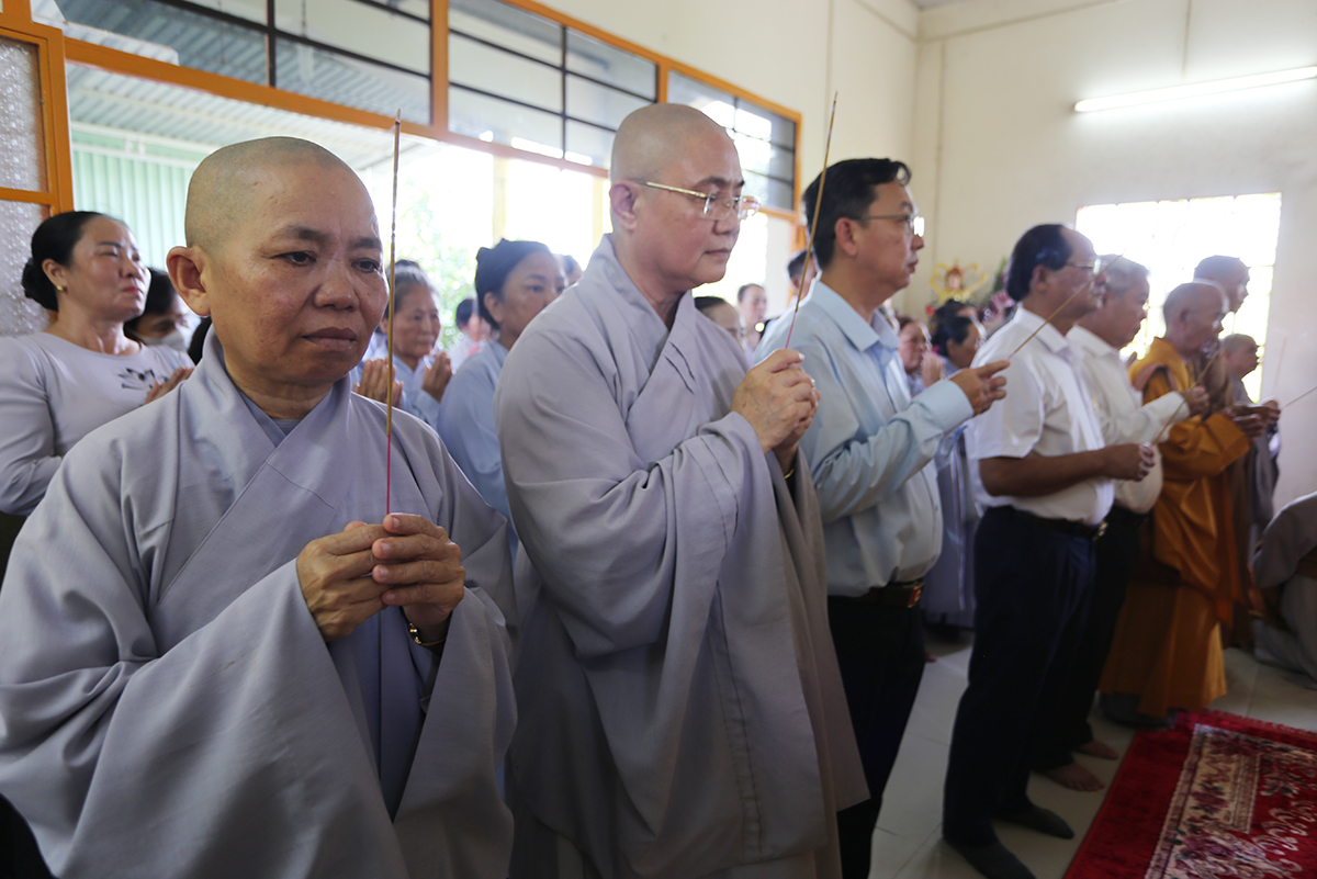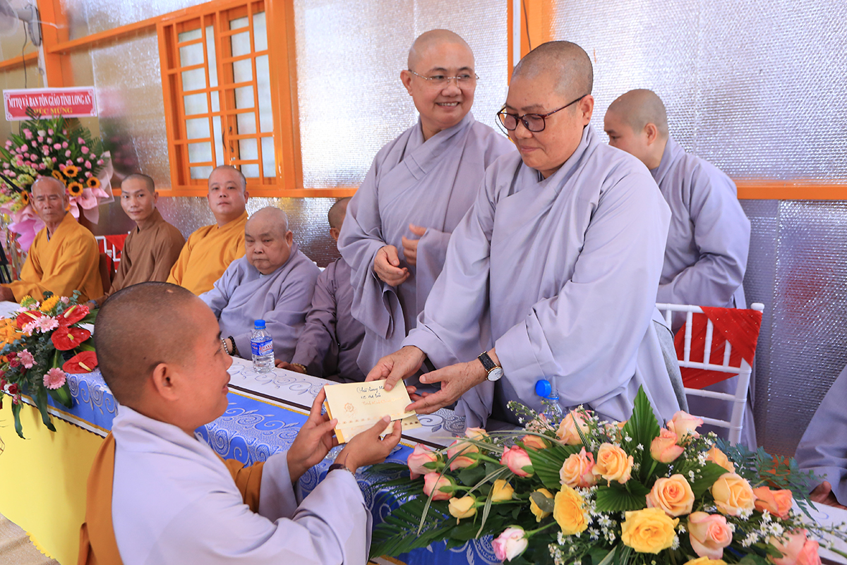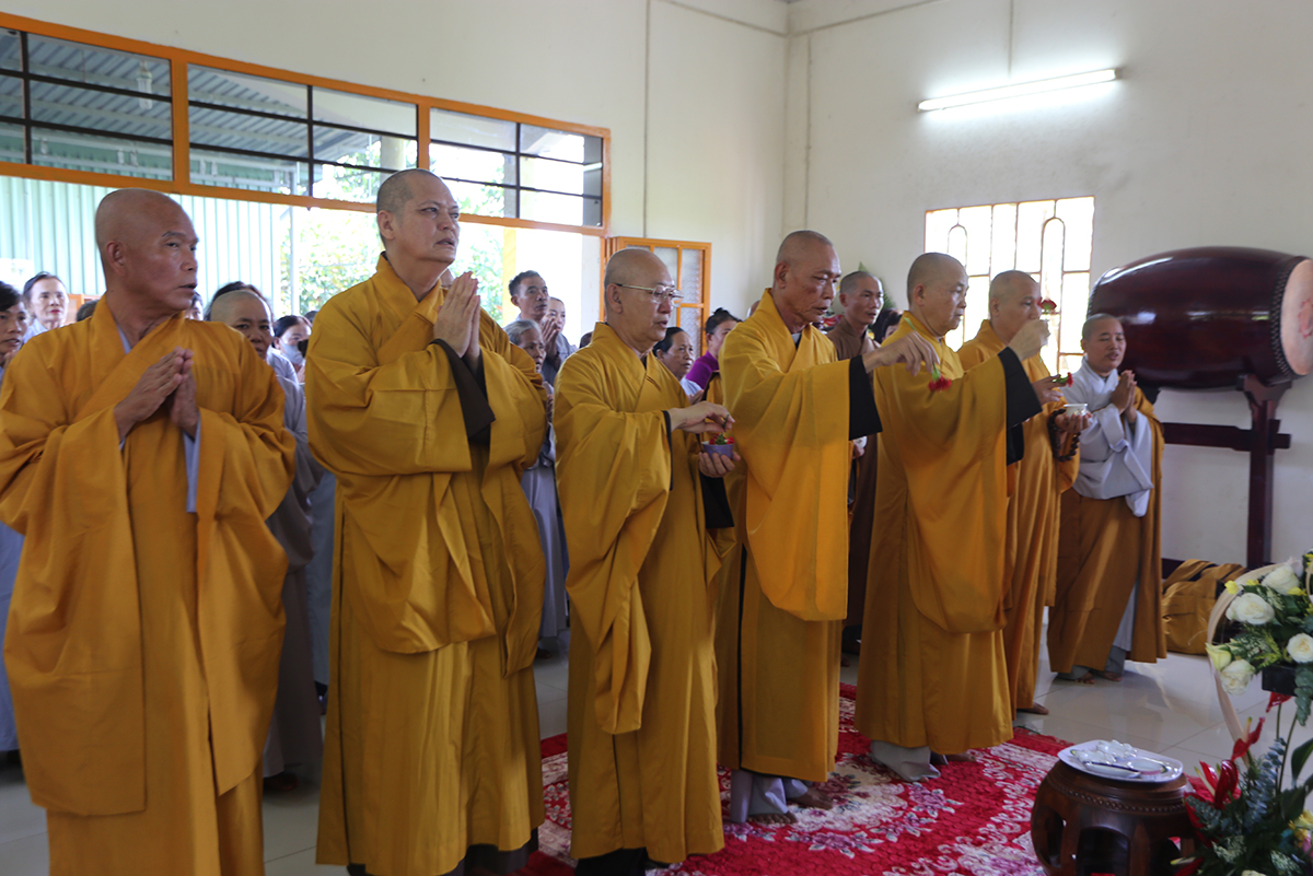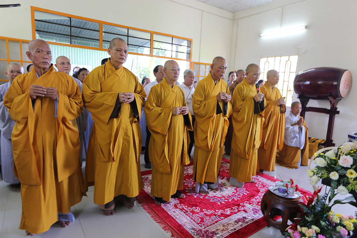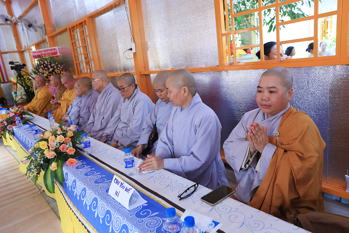 Chứng minh và tham dự buổi lễ có sự hiện diện của Hoà thượng Thích Thiện Huệ – thành viên hội đồng chứng minh GHPGVN, Chứng minh BTS Tỉnh Long An; Hòa thượng Thích Minh Thiện – Uỷ viên HĐTS, Phó ban Hoằng pháp TW, Trưởng BTS GHPGVN tỉnh Long An; Thượng tọa Thích Quảng Tâm – Uỷ viên HĐTS, Phó Trưởng ban Thường trực BTS GHPGVN tỉnh Long An; Thượng tọa Thích Đức Hoàng – Phó Trưởng BTS GHPGVN tỉnh Long An; Thượng tọa Thích Nhuận Thành – Trưởng ban Kinh tế Tài chính GHPGVN tỉnh Long An; Đại đức Thích An Nhựt – Trưởng ban hướng dẫn Phật tử GHPGVN tỉnh Long An, Trưởng BTS GHPGVN huyện Thủ Thừa; Thượng tọa Thích Minh Trung – Phó Trưởng ban Thường trực BTS GHPGVN huyện Đức Hòa; Thượng tọa Thích Thiện Nguyện – phó Trưởng ban hoằng pháp GHPGVN tỉnh Long An, trưởng ban hoằng pháp huyện Đức Hòa; Đại đức Thích Thiện An – ủy viên BTS GHPGVN tỉnh Long An, Trưởng BTS GHPGVN huyện Đức Huệ; Đại đức Thích Minh Trí – Ủy viên BTS GHPGVN tỉnh Long An, Phó Trưởng ban Thường trực BTS GHPGVN huyện Đức Huệ; Đại đức Thích Minh Nguyệt – phó trưởng BTS GHPGVN huyện Đức Huệ; Ni trưởng Thích Nữ Tịnh Mẫn – Chứng minh phân ban ni giới TW, viện chủ chùa Long Thạnh tỉnh Bình Phước; Ni sư Thích Nữ Chúc Tường – Ủy viên phân ban Ni giới TW, trụ trì chùa Kiều Đàm Tp. Thủ Đức; Ni sư Thích Nữ Huệ Bảo – UV BTS GHPGVN tỉnh Bình Phước, trụ trì chùa Quang Minh cùng Chư tôn đức Tăng Ni, Phật tử trong địa bàn huyện Đức Huệ về tham dự.