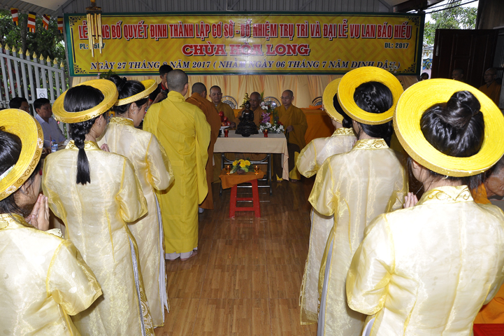Trong chương trình gồm có: tuyên đọc quyết định thành lập cơ sở thờ tự của Ủy ban Nhân dân tỉnh Long An; tuyên đọc quyết định bổ nhiệm trụ trì của Giáo hội Phật giáo Việt Nam tỉnh Long An, phát biểu của Chính quyền, phát nguyện của tân trụ trì, lễ Vu Lan truyền thống và Đạo từ của Hòa thượng Chứng minh.