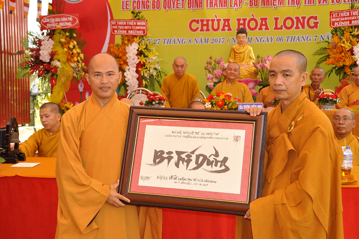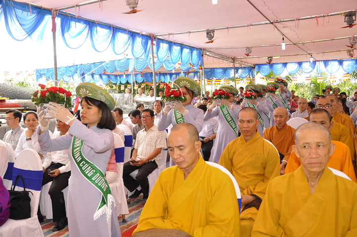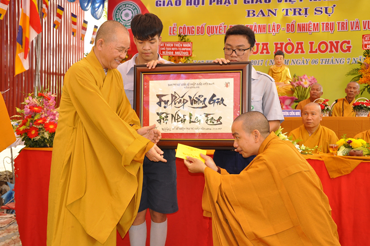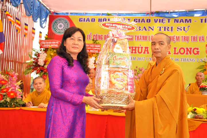 Tiếp theo chương trình là phần tặng hoa chúc mừng từ quý ban ngành Phật giáo và Chính quyền.
