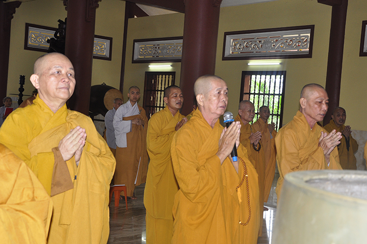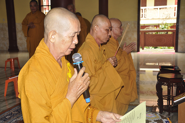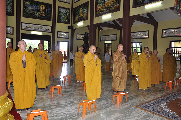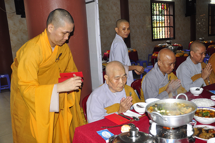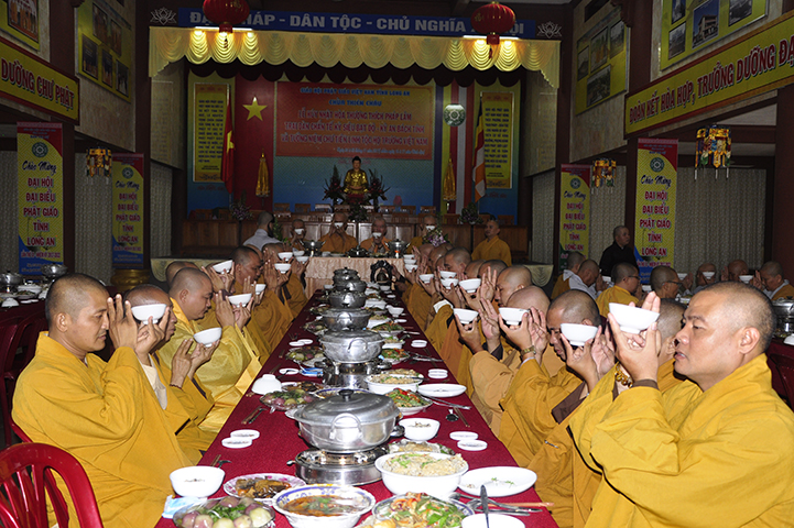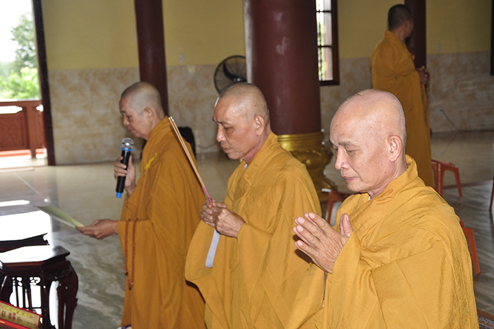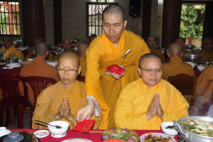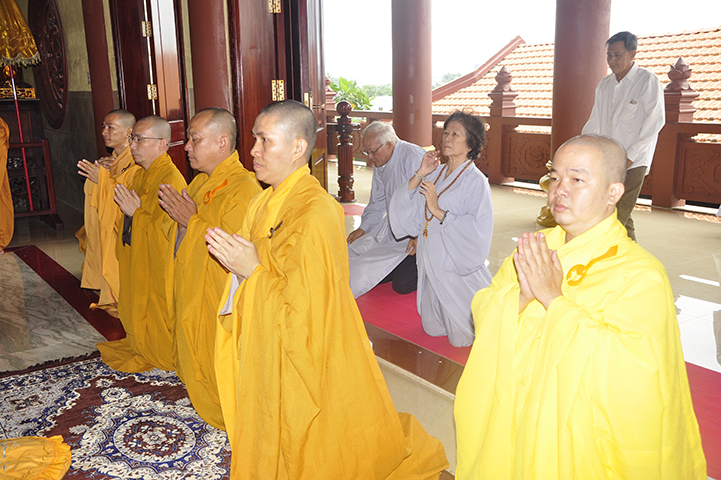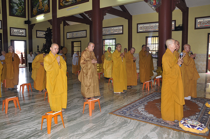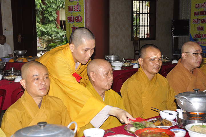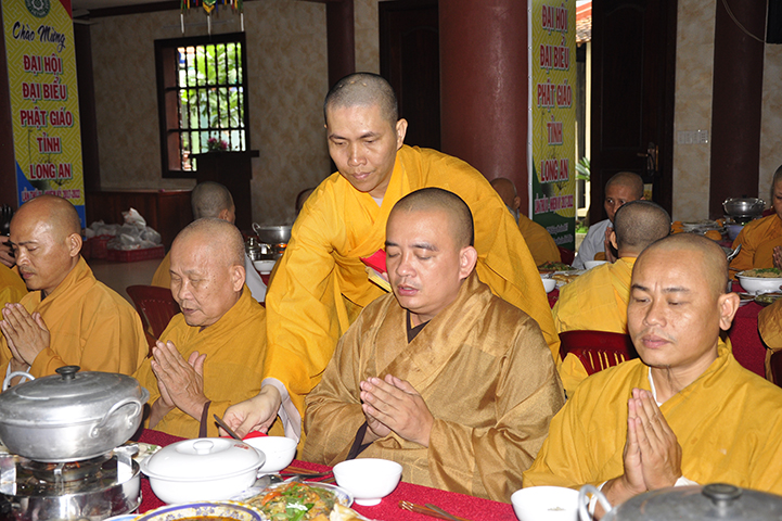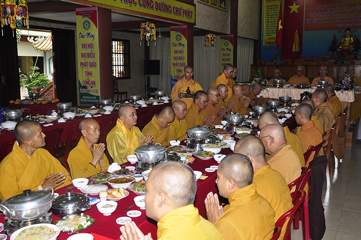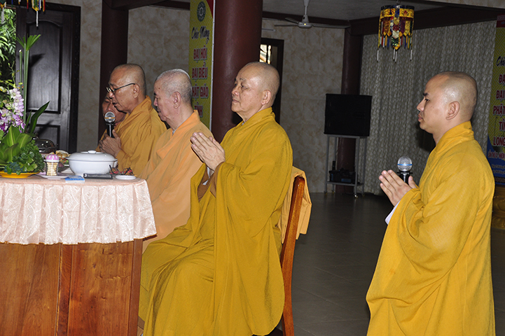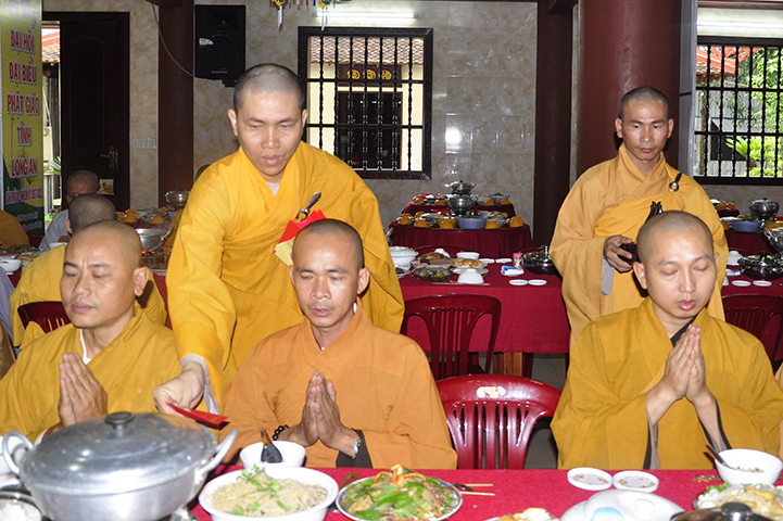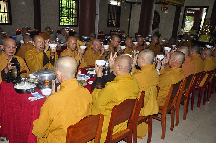 Sau lễ cúng Ngọ và cung tiến Giác linh là lễ cúng dường trai Tăng. Đối trước chư tôn thiền đức, ĐĐ. Thích Lệ Ngôn-Trưởng Ban Hoằng Pháp GHPGVN tỉnh Long An thay lời HT. Thích Minh Thiện cùng môn đồ pháp quyến dâng lên lời tác bạch cúng dường trai Tăng.