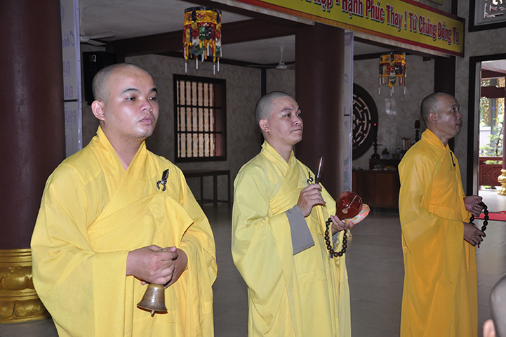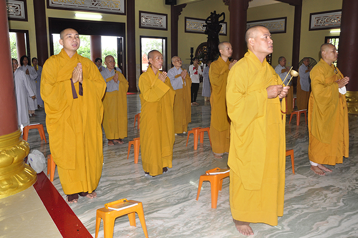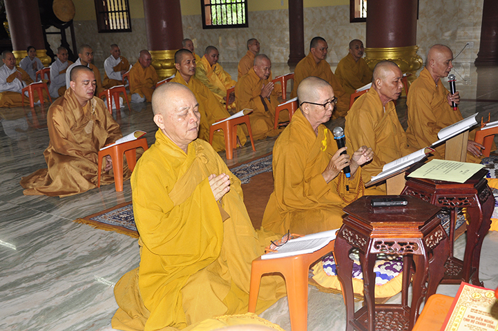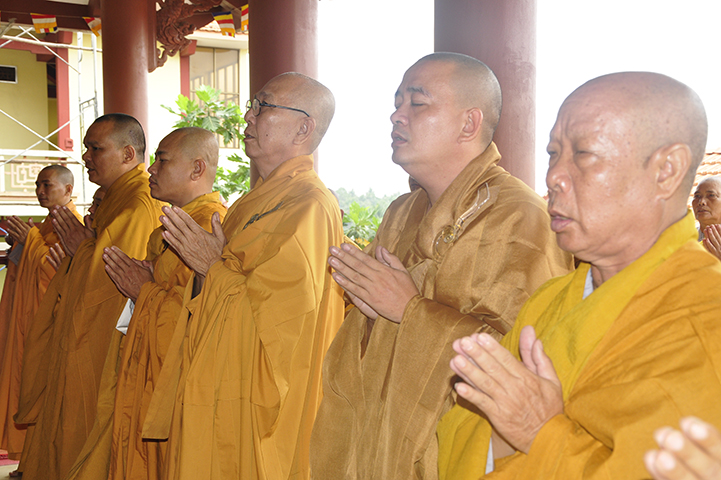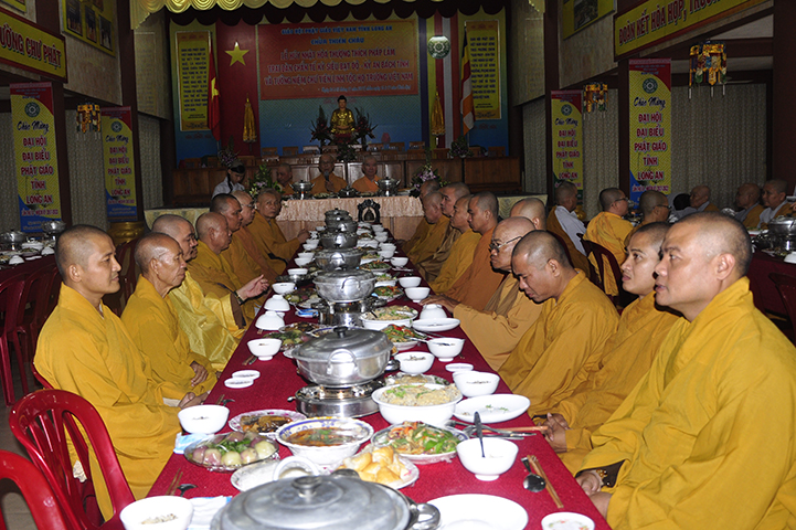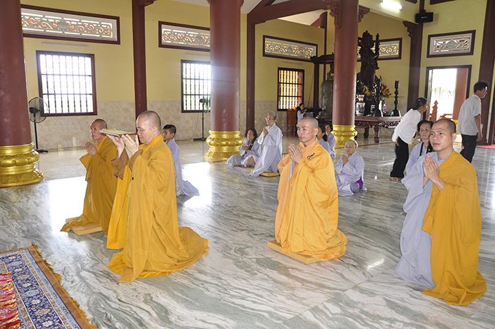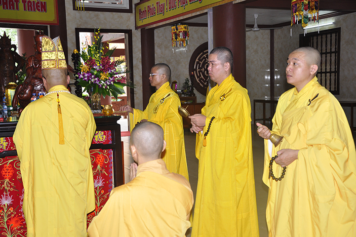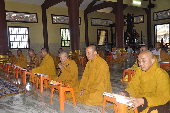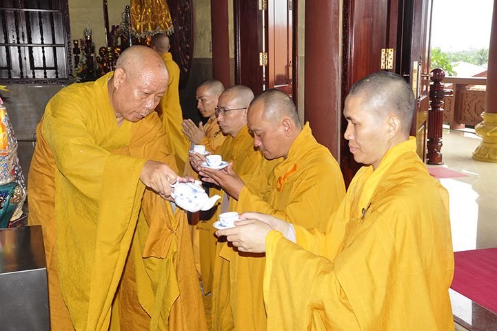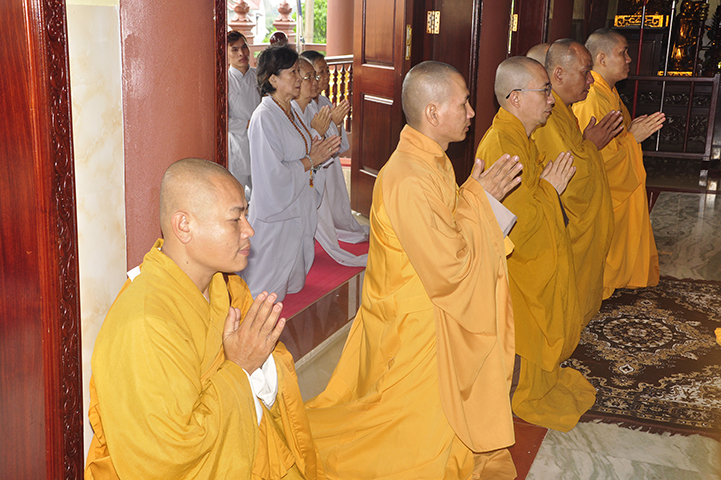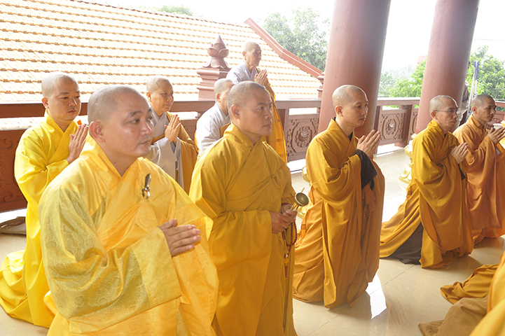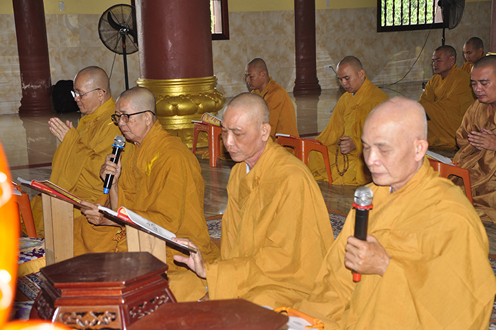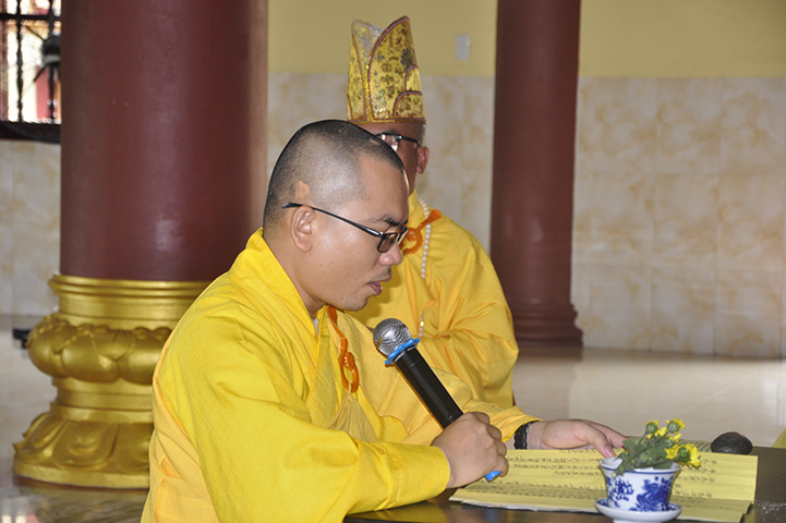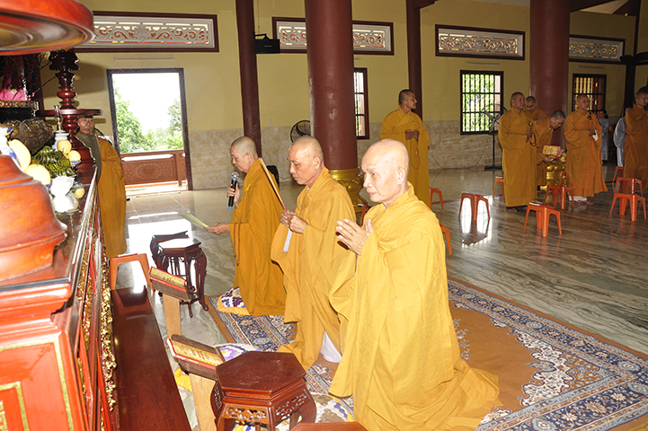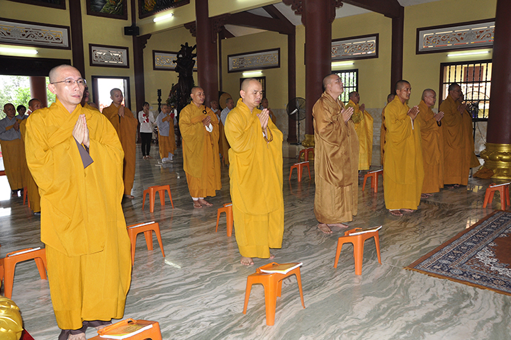 Sau lễ cúng Ngọ và cung tiến Giác linh là lễ cúng dường trai Tăng. Đối trước chư tôn thiền đức, ĐĐ. Thích Lệ Ngôn-Trưởng Ban Hoằng Pháp GHPGVN tỉnh Long An thay lời HT. Thích Minh Thiện cùng môn đồ pháp quyến dâng lên lời tác bạch cúng dường trai Tăng.
