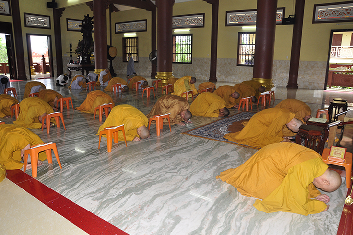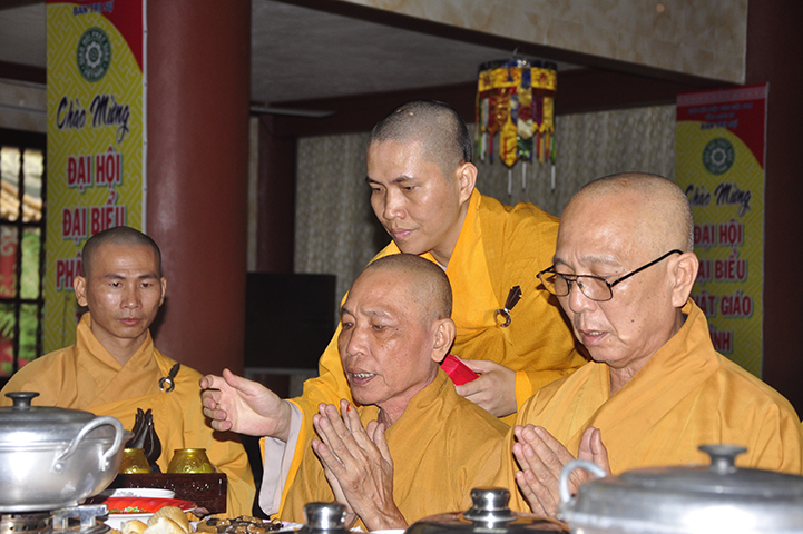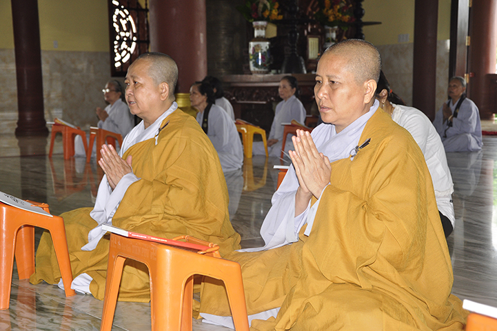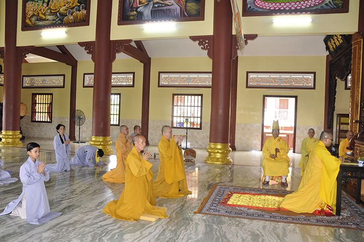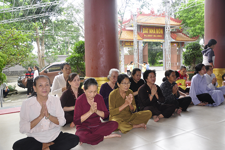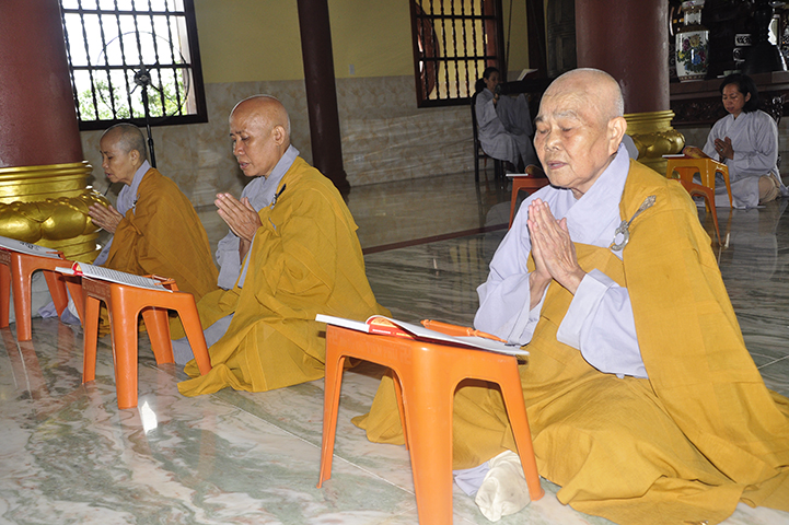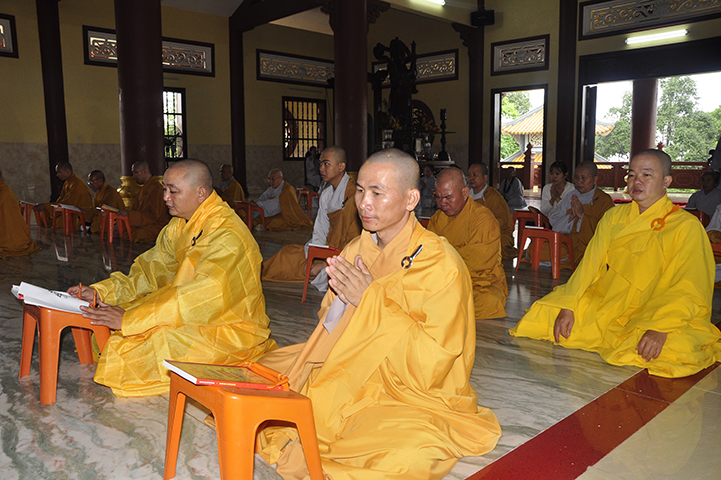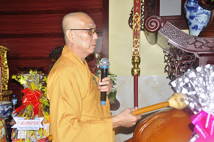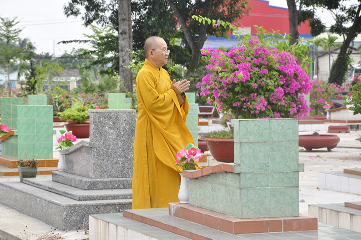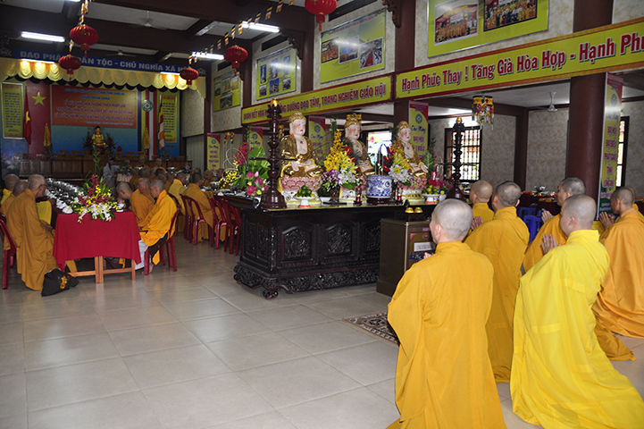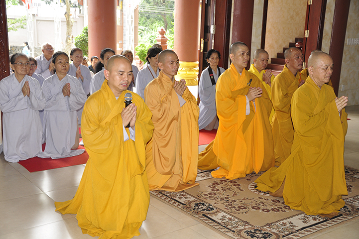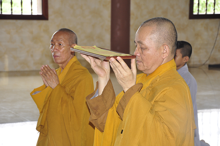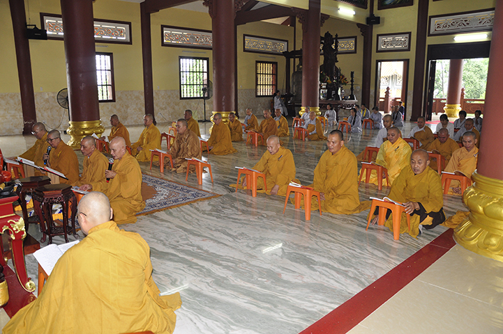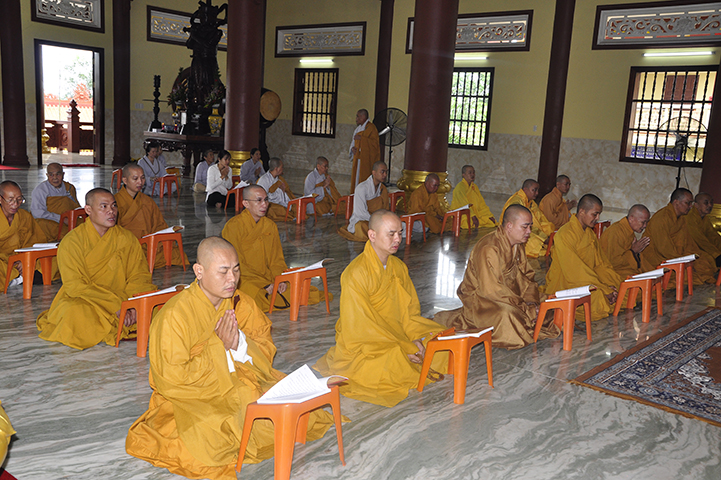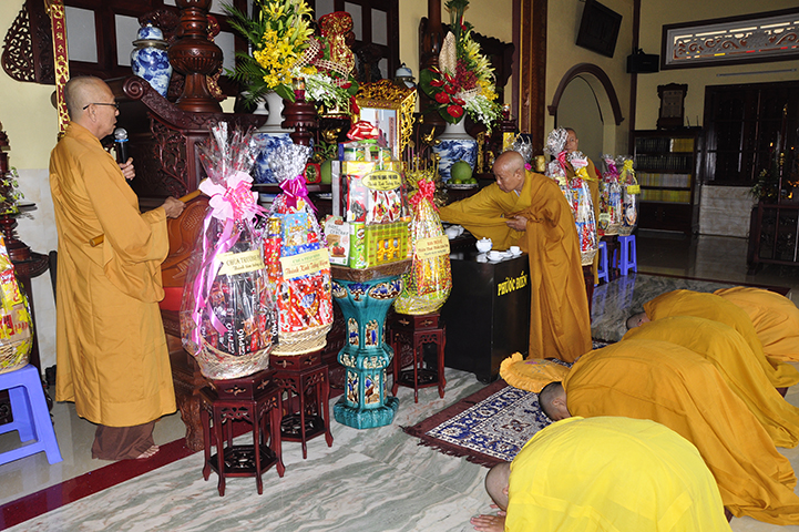 Sau lễ cúng Ngọ và cung tiến Giác linh là lễ cúng dường trai Tăng. Đối trước chư tôn thiền đức, ĐĐ. Thích Lệ Ngôn-Trưởng Ban Hoằng Pháp GHPGVN tỉnh Long An thay lời HT. Thích Minh Thiện cùng môn đồ pháp quyến dâng lên lời tác bạch cúng dường trai Tăng.
