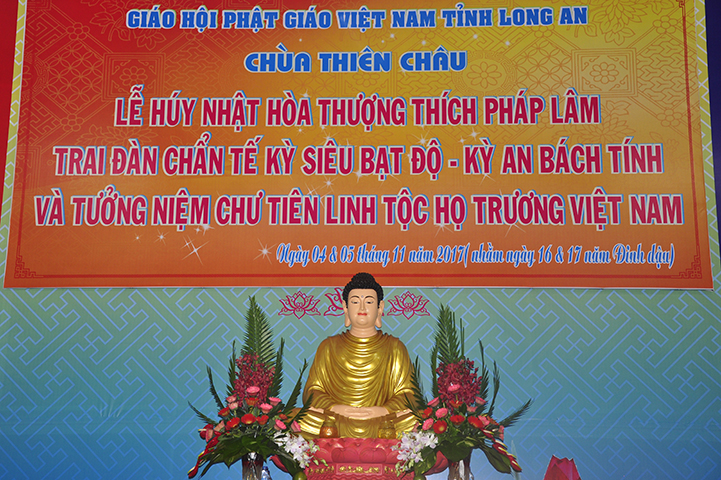 Sáng ngày 05 tháng 11 năm 2017(17/09/ Đinh Dậu) tại chùa Thiên Châu (văn phòng Ban trị sự GHPGVN tỉnh Long An) số 101, đường Huỳnh Văn Nhứt, Phường 3, Tp. Tân An, tỉnh Long An trang nghiêm tổ chức Lễ tưởng niệm Húy nhật cố Hòa thượng Thích Pháp Lâm.