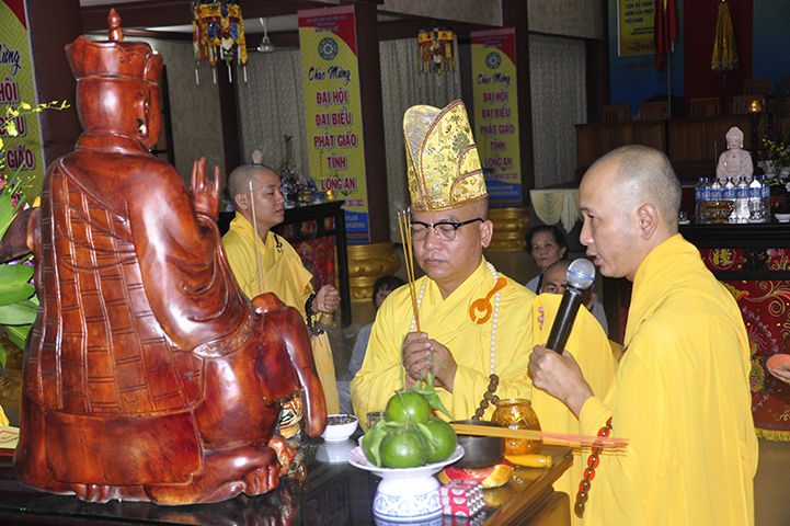 Chứng minh tham dự buổi lễ có Chư tôn đức giáo phẩm: HT Thích Thiện Huệ- Chứng minh BTS GHPGVN tỉnh Long An; Minh Thiện- UV HĐTS, Phó Trưởng Ban Hoằng pháp TƯ, Trưởng ban Trị sự GHPGVN tỉnh Long An, trụ trì chùa Thiên Châu, HT. Thích Thiện Xuân- Trưởng Ban trị sự GHPGVN quận Bình Tân Tp. HCM, Phó ban Thừa kế tông Thiên Thai; HT. Thích Thiện Pháp- Phó ban Thừa kế Tông Thiên Thai, Trụ trì chùa Hội Linh Tp. Cần Thơ; HT. Thích Thiện Tài- Trưởng Ban Nghi lễ GHPGVN tỉnh Long An; TT. Thích Chơn Đạo- Giáo thọ trường trung cấp Phật học Long An; TT. Thích Quảng Tâm- Phó thường trực BTS GHPGVN tỉnh Long An cùng chư tôn đức Tăng Ni thường trực trong Ban trị sự GHPGVN tỉnh huyện thị, thành phố trong tỉnh về tham dự.