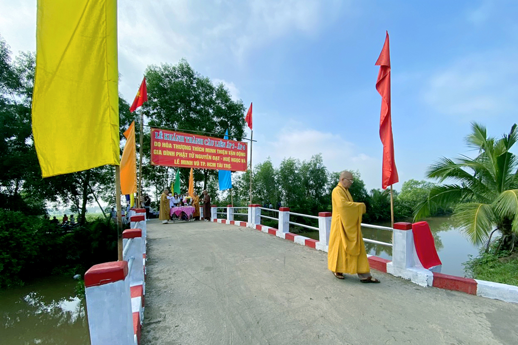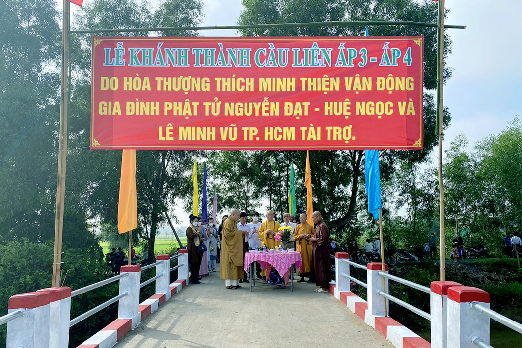 Sáng ngày 13 tháng 06 năm 2022 (nhằm ngày 15/5/Nhâm Dần), Hòa thượng Thích Minh Thiện – Ủy viên HĐTS, Phó ban Hoằng pháp TW, Trưởng ban Trị sự GHPGVN tỉnh Long An đến chứng minh và tham dự buổi lễ khánh thành Cầu Liên Ấp 3 – Ấp 4, trao quà cho mẹ Việt Nam Anh hùng, học bổng cho học sinh nghèo hiếu học trên địa bàn xã An Thạnh, huyện Bến Lức. Tháp tùng Hòa thượng có: Thượng tọa Thích Quảng Tâm – Ủy viên HĐTS, Phó Trưởng ban Thường trực Ban Trị sự GHPGVN tỉnh Long An; Chư tôn đức Tăng Ni đồng tham dự.