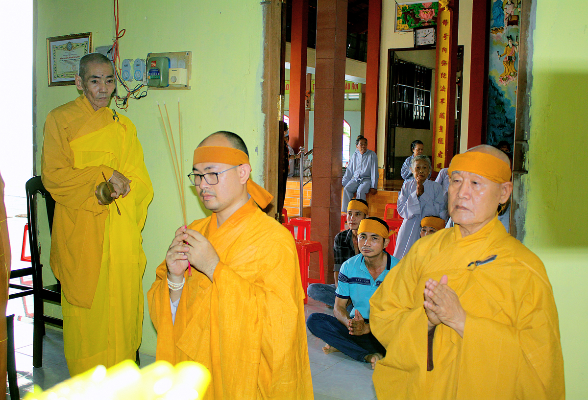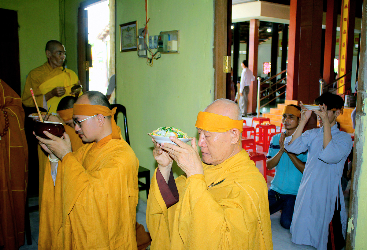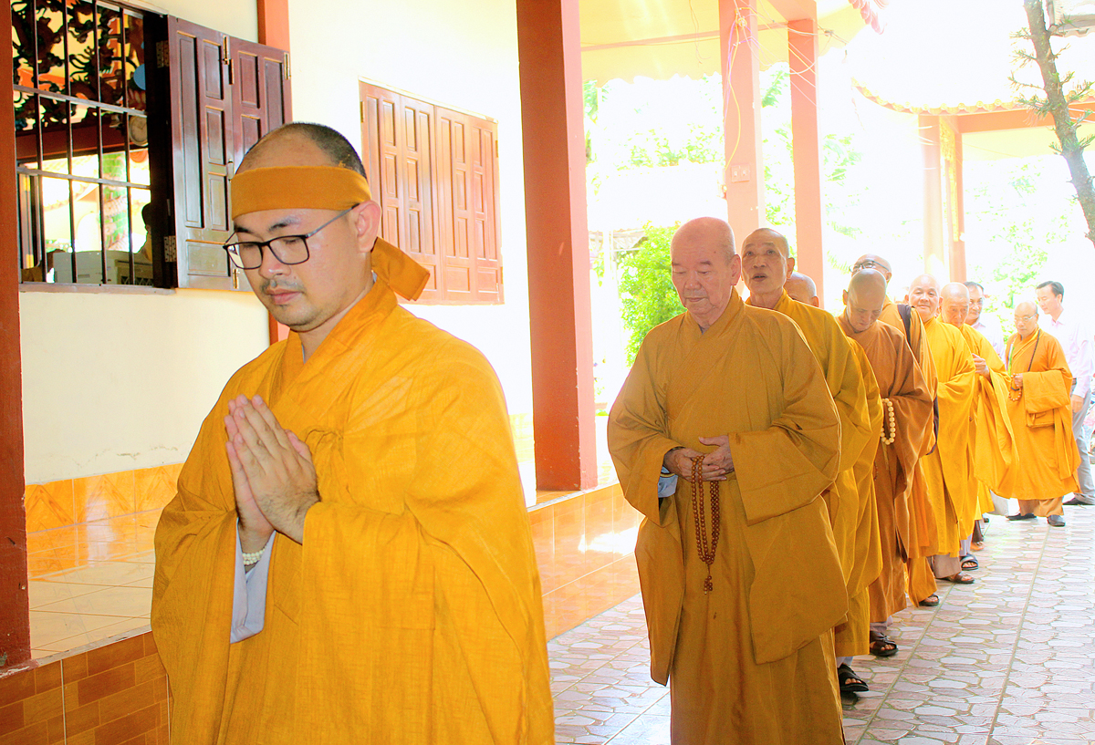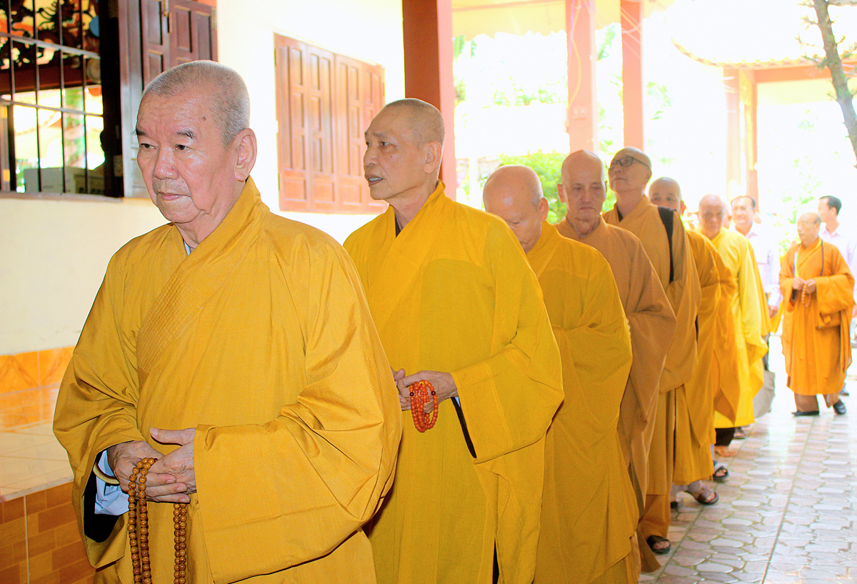 Buổi lễ khép lại tốt đẹp với phần Chư tôn đức thắp hương tưởng niệm Cố Hòa thượng tại Giác linh đường, kinh hành nhiễu tháp và chứng minh lễ trai tăng cúng dường của môn đồ pháp quyến.