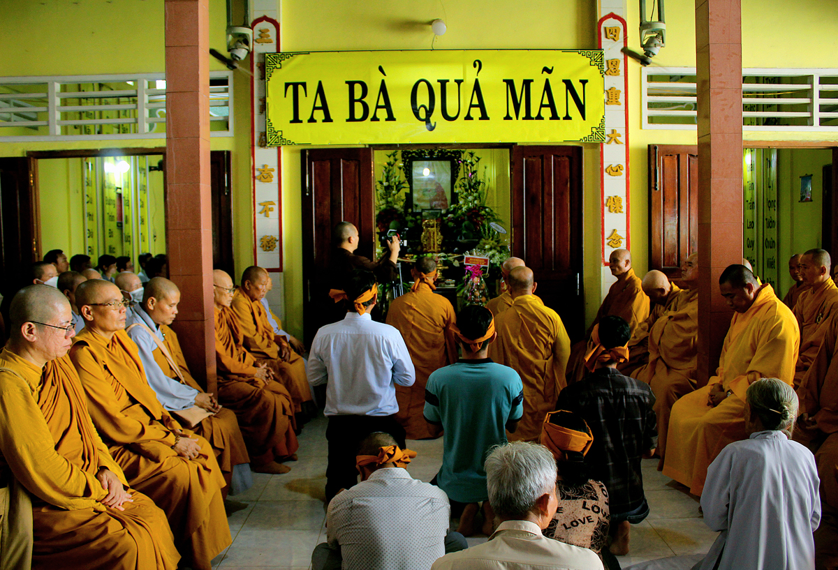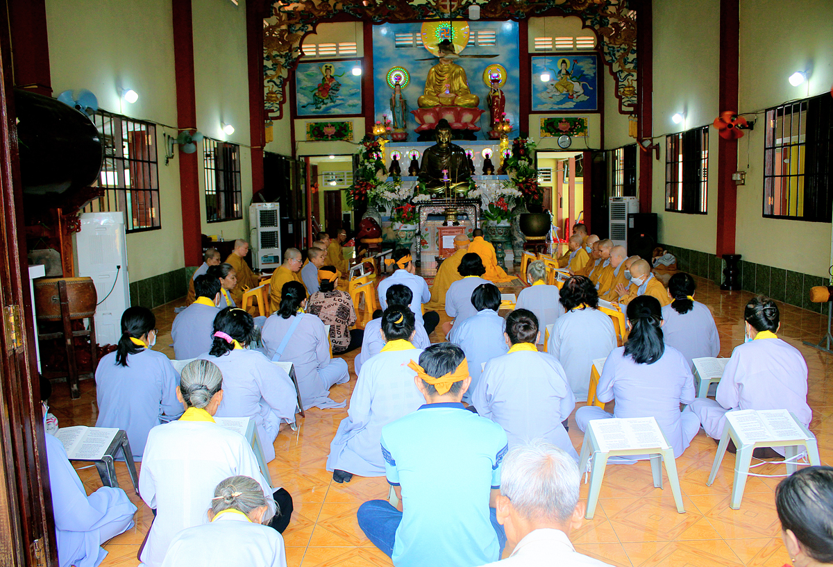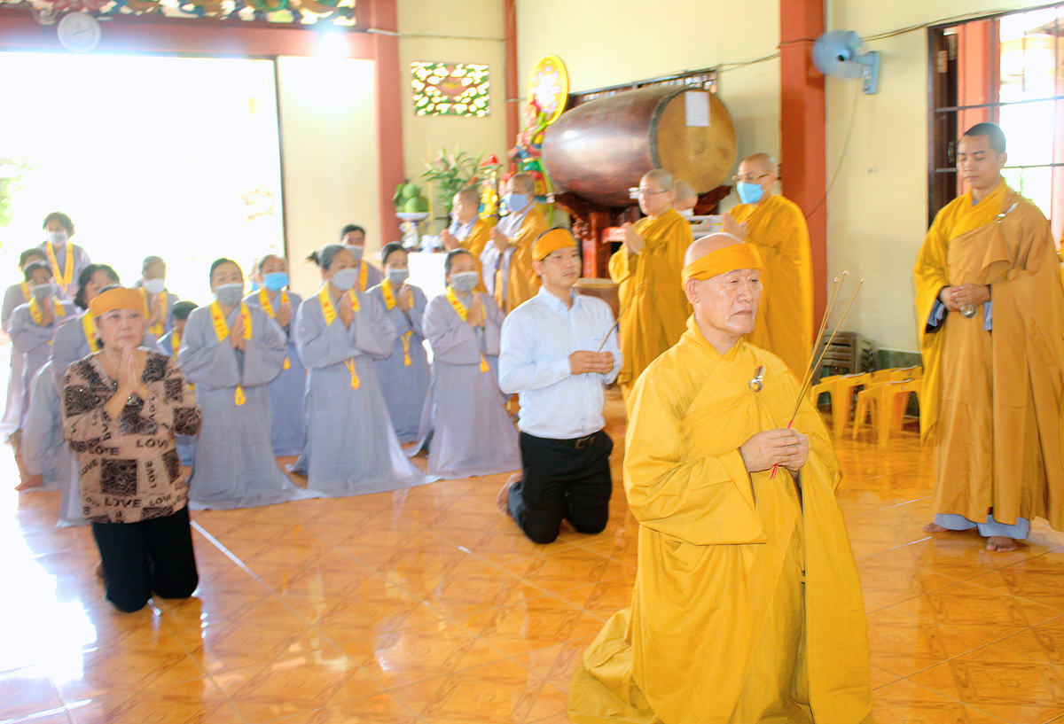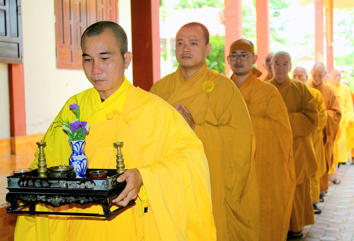 Buổi lễ khép lại tốt đẹp với phần Chư tôn đức thắp hương tưởng niệm Cố Hòa thượng tại Giác linh đường, kinh hành nhiễu tháp và chứng minh lễ trai tăng cúng dường của môn đồ pháp quyến.