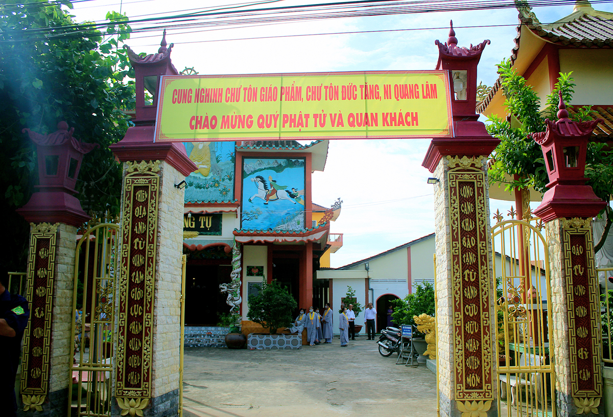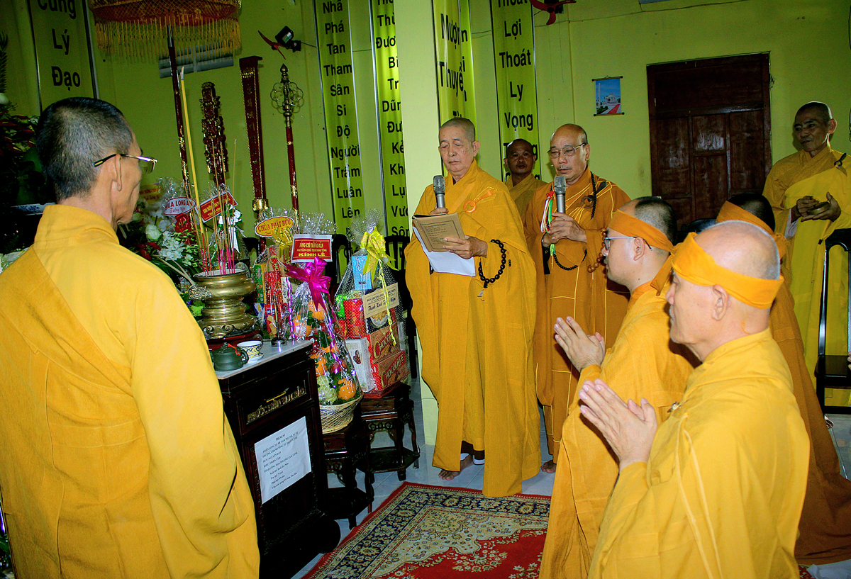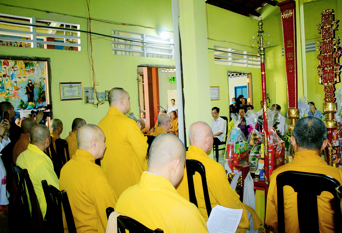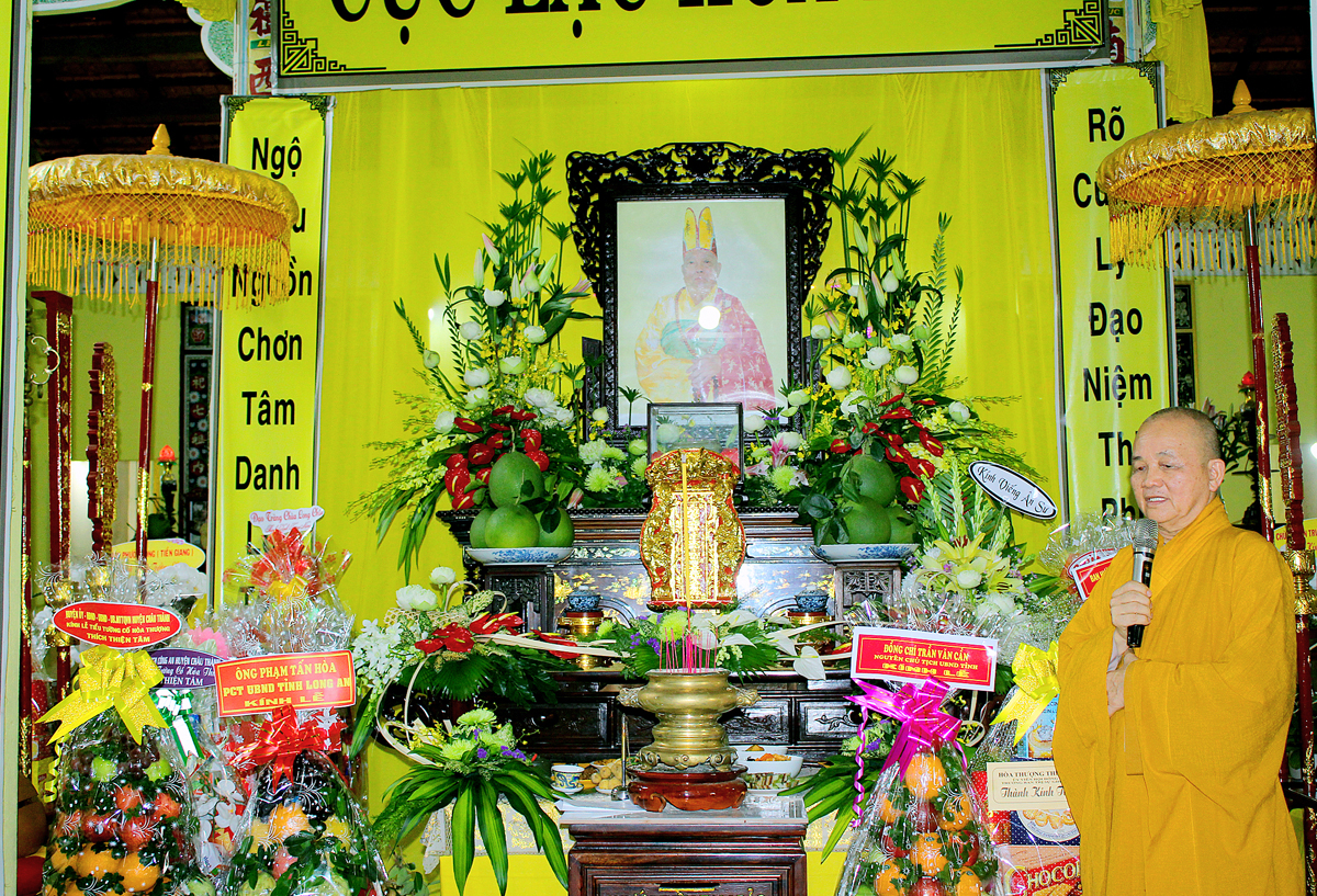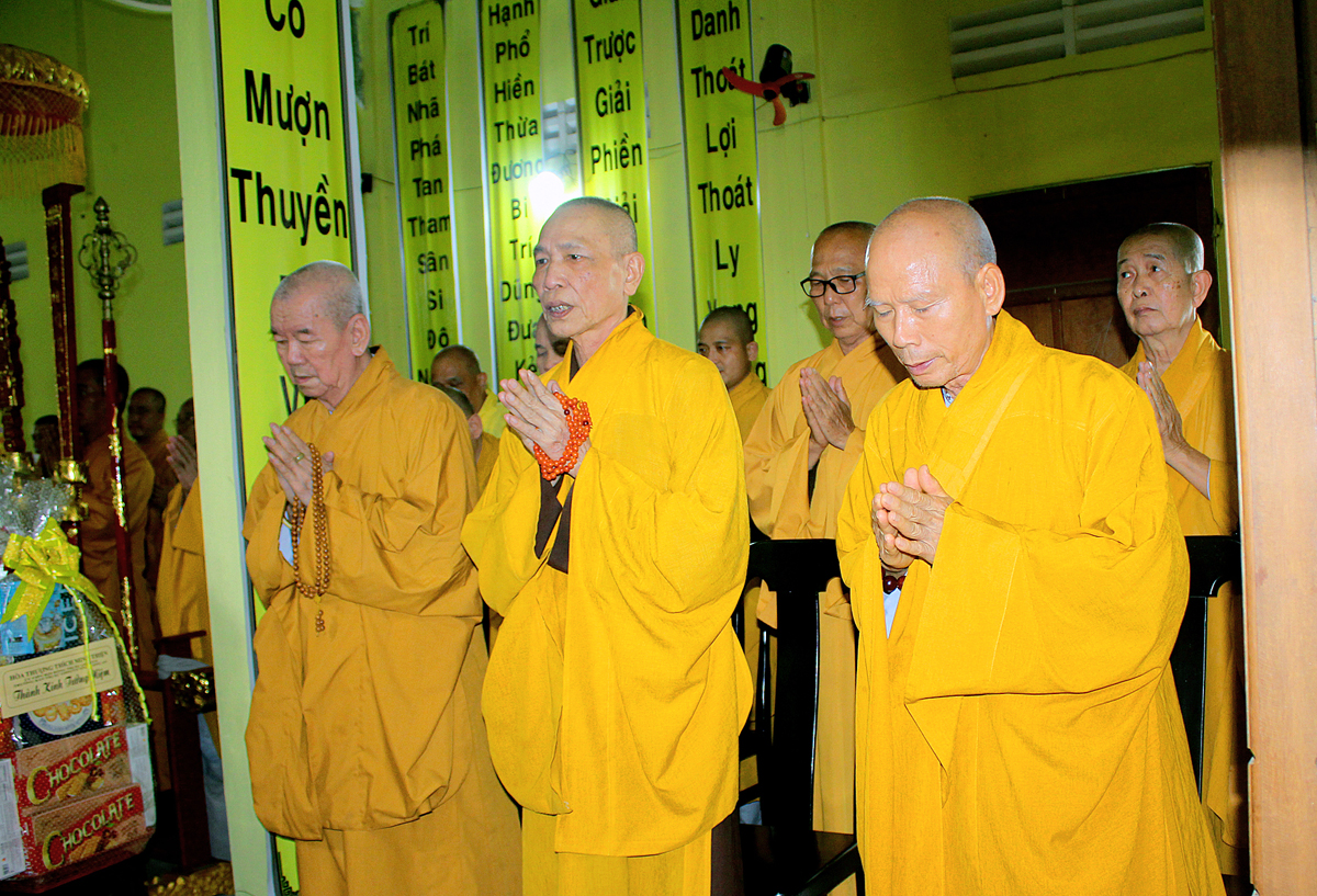 Quang lâm chứng minh buổi lễ có: Hòa thượng Thích Thiện Huệ, Hòa thượng Thích Huệ Hồng, Hòa thượng Thích Thiện Tài, Hòa thượng Thích Quảng Ý – đồng Chứng minh BTS GHPGVN tỉnh Long An; Hoà Thượng Thích Thiện Xuân- Trưởng Ban thừa kế tông Thiên Thai Thiền Giáo tông; Hoà thượng Thích Thiện Pháp- Phó Ban thường trực Ban Thừa kế Thiên Thai Thiền Giáo Tông; Hòa thượng Thích Minh Thiện – Uỷ viên HĐTS, Phó ban Hoằng pháp Trung ương, Trưởng Ban Trị sự GHPGVN tỉnh Long An, Phó Ban Thừa kế Thiên Thai Thiền Giáo Tông; Thượng tọa Thích Minh Thọ – Phó Ban Trị sự GHPGVN tỉnh Long An; Đại đức Thích Lệ Duyên – Phó ban kiêm Chánh Thư ký BTS GHPGVN tỉnh Long An; Đại đức Thích Huệ Quang – UV BTS GHPGVN tỉnh Long An, Trưởng ban Trị sự GHGPVN huyện Châu Thành. Cùng chư tôn đức Tăng Ni Phật giáo tỉnh Long An, huyện Châu Thành và các huyện thị lân cận.
