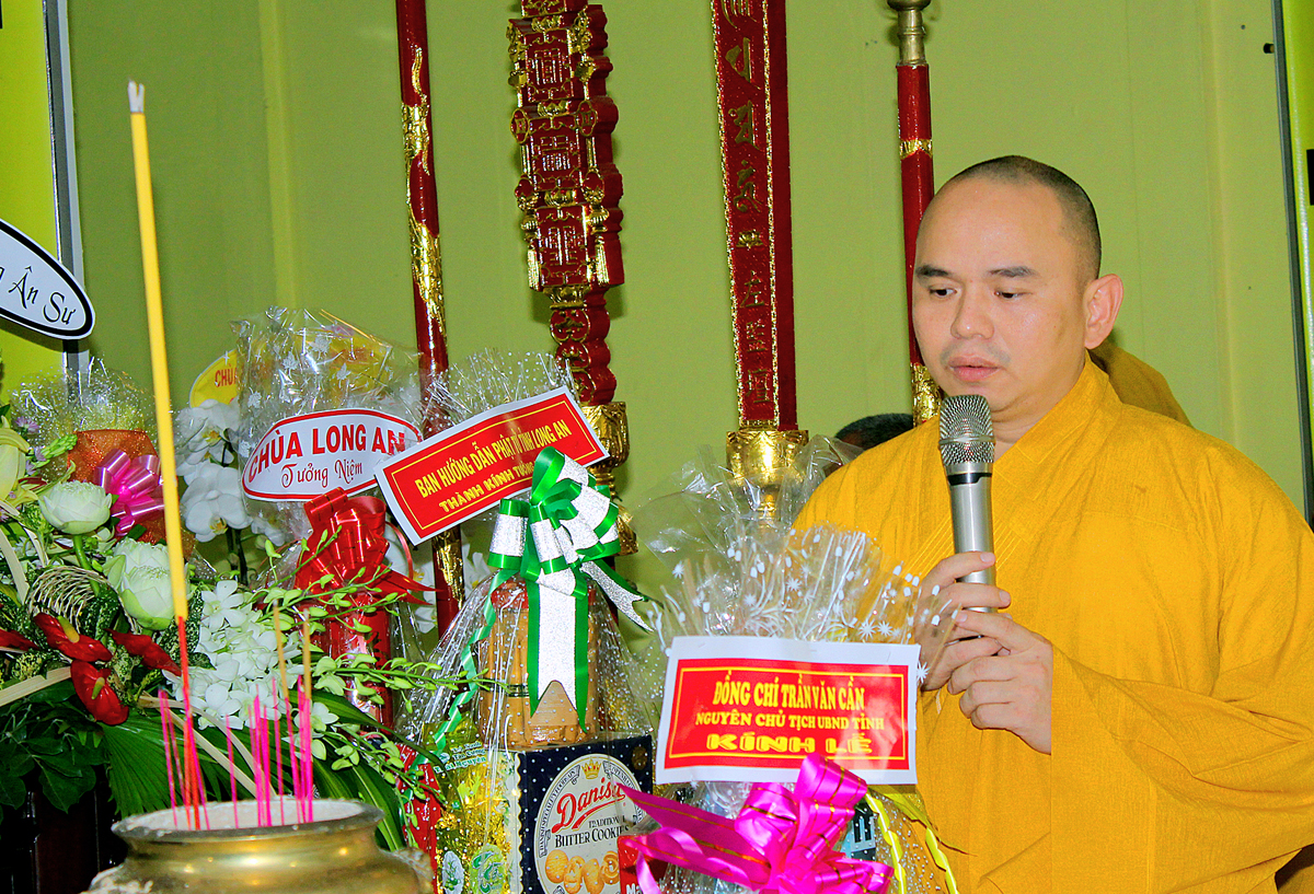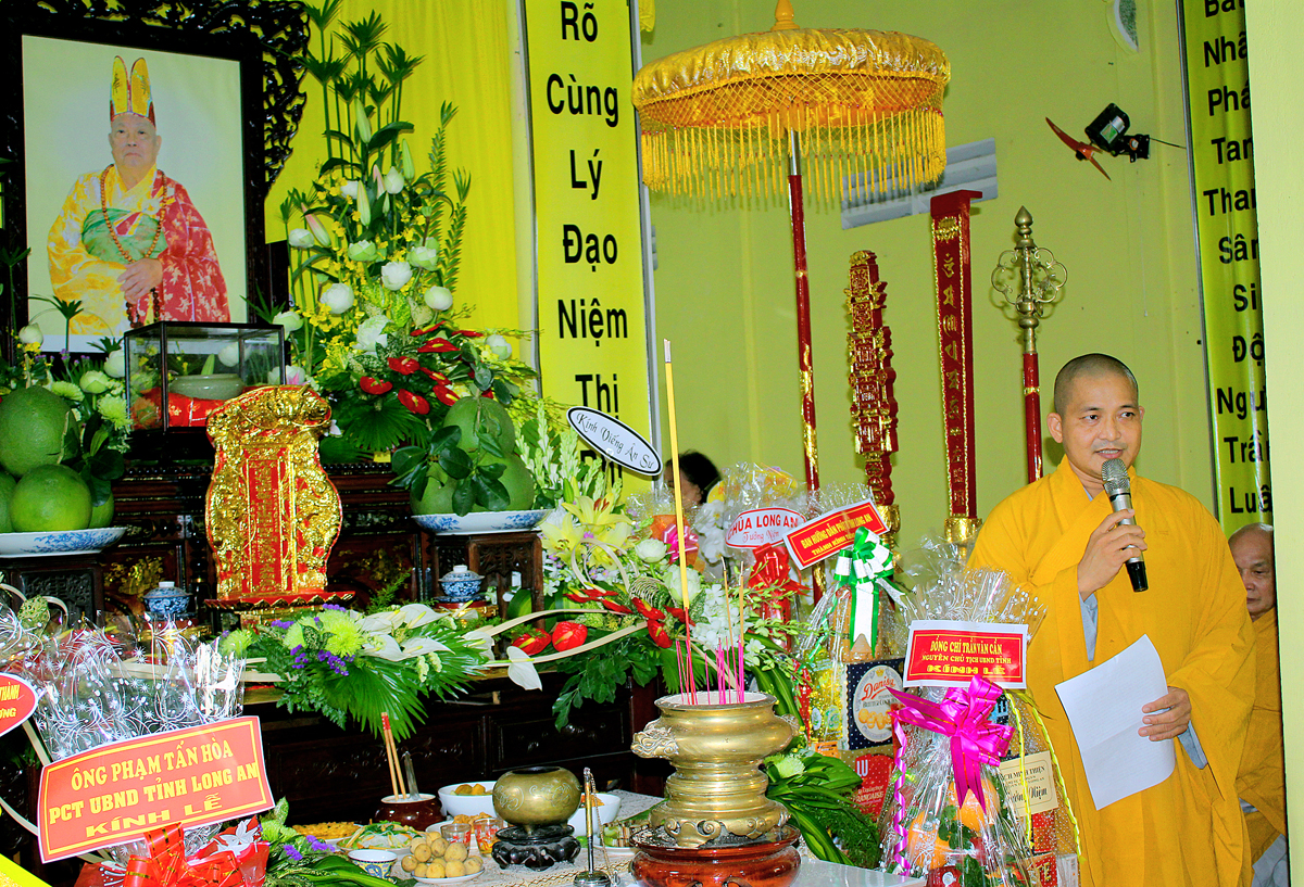 Ôn lại hành trạng của Cố Hòa thượng một đời cống hiến cho Đạo pháp và Dân tộc, Đại đức Thích Lệ Duyên – Phó ban kiêm Chánh Thư ký BTS GHPGVN tỉnh Long An thay mặt Thường trực Ban Trị sự GHPGVN tỉnh Long An cung tuyên tiểu sử cố Hòa thượng.