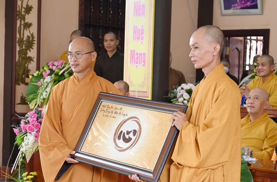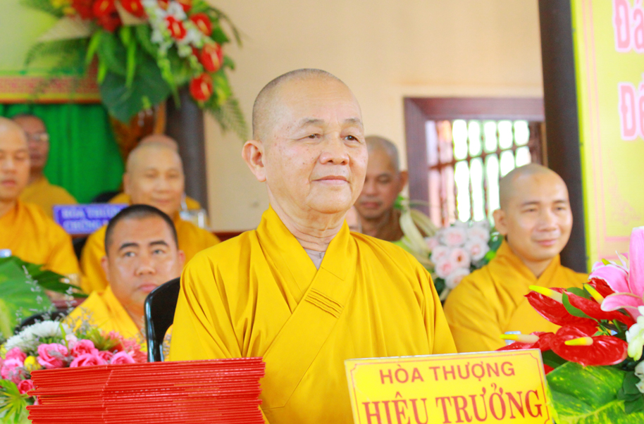 Đãi lao chư tôn đức chứng minh, Hòa thượng Thích Thiện Huệ – Chứng minh BTS GHPGVN tỉnh Long An đã từ bi ban lời đạo từ đến toàn thể hội chúng, trong lời đạo từ Hòa thượng tri ân công đức Cố Hòa thượng Thượng MINH Hạ TÁNH, vị Hòa thượng Hiệu trưởng đầu tiên của Trường đã dầy công hy sinh, tạo lập và phát triển trường TCPH cho đến tận hôm nay, bên cạnh đó Ngài chúc mừng đến Tăng, Ni sinh đã đạt kết quả tốt và thành tựu viên mãn trong con đường học vấn, Ngài sách tấn Tăng Ni sinh luôn nổ lực tu học hơn nữa, tri ân và nhớ ơn đến BTS, BGH nhà trường, Ban giảng huấn, giáo thọ tai Nhà trường để hôm nay được kết quả tốt đẹp này, để đền đáp công ơn ấy không gì khác ngoài việc phải chuyên tâm tu học nổ lực “Thượng báo tứ trọng ân”, phải nhớ ơn các cấp chính quyền sở tại đã tạo thuận duyên giúp đỡ cho Tăng Ni sinh an ổn tu tập, an ninh trật tự để có được nhân lành tu học tốt, Hòa thượng gửi lời tri ân công đức đến toàn thể Chư tôn đức BTS GHPGVN tỉnh Long An, BGH Nhà trường cùng toàn thể quý giáo thọ nhà trường, chúc nguyện mọi duyên lành đến toàn thể mọi người và thành tựu hơn nữa con con đường phụng sự đạo pháp dân tộc.