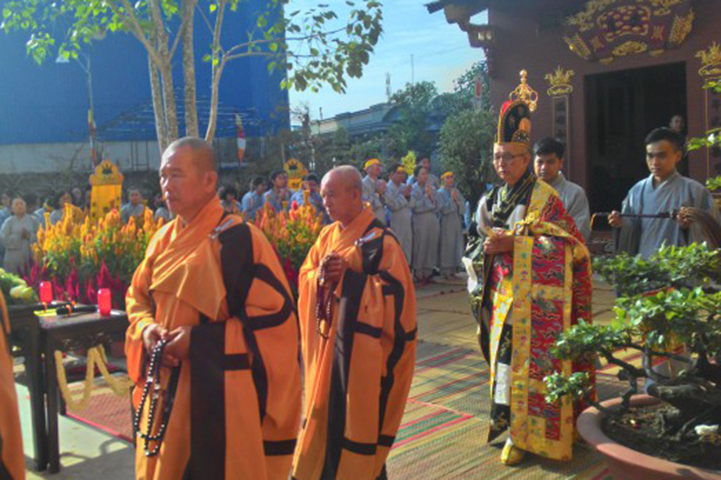 Để trang nghiêm các pháp sự trong giờ Truy niệm và Lễ Di quan, nhập Bảo tháp Cố Ni Trưởng, Ban Tổ chức đã thông tri chương trình hành lễ đến các phân ban. Tại cổng chính, Ban nghi lễ luôn túc trực cung nghinh chư Tôn đức Giáo phẩm tỉnh Long An; chư Tôn đức các Ban Trị sự huyện thị, thành; chư Tôn đức trụ trì các tự viện; chư Tôn đức Phân ban Ni giới quang lâm dự lễ. Tại Bảo tháp Cố Ni trưởng, các Phật tử đều hai hàng trang nghiêm phan lọng cung nghinh.