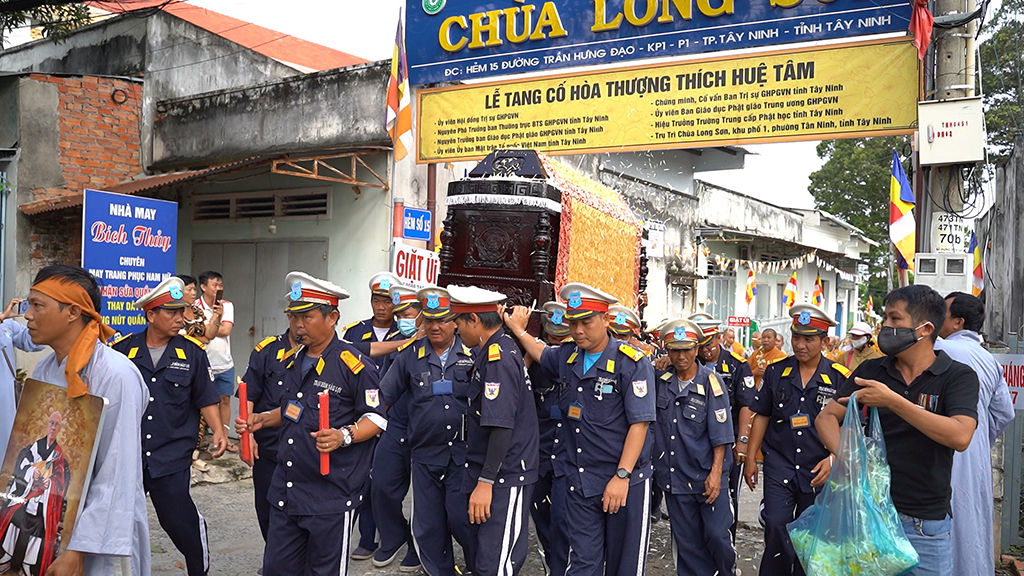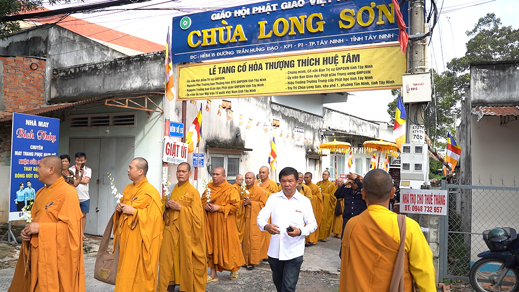 Sáng ngày 30/8/2025 (nhằm ngày 7/7/Ất Tỵ), tại chùa Long Sơn, khu phố 1, phường Tân Ninh, Ban Thường trực HĐTS Giáo hội Phật giáo Việt Nam, BTS GHPGVN tỉnh Tây Ninh và môn đồ pháp quyến tổ chức Lễ Truy niệm và phụng tống kim quan Cố HT. Thích Huệ Tâm trà tỳ.