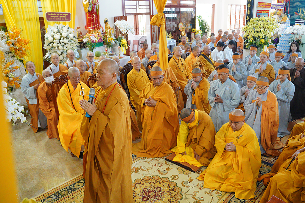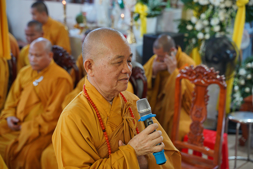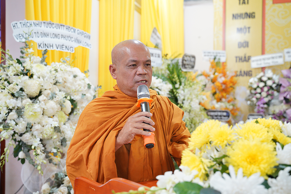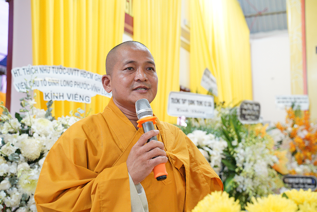 ĐĐ. Thích Lệ Duyên – Phó ban kiêm Chánh Thư ký BTS GHPGVN tỉnh Tây Ninh đã thay mặt Ban Tổ chức Tang lễ phát biểu cảm tạ.