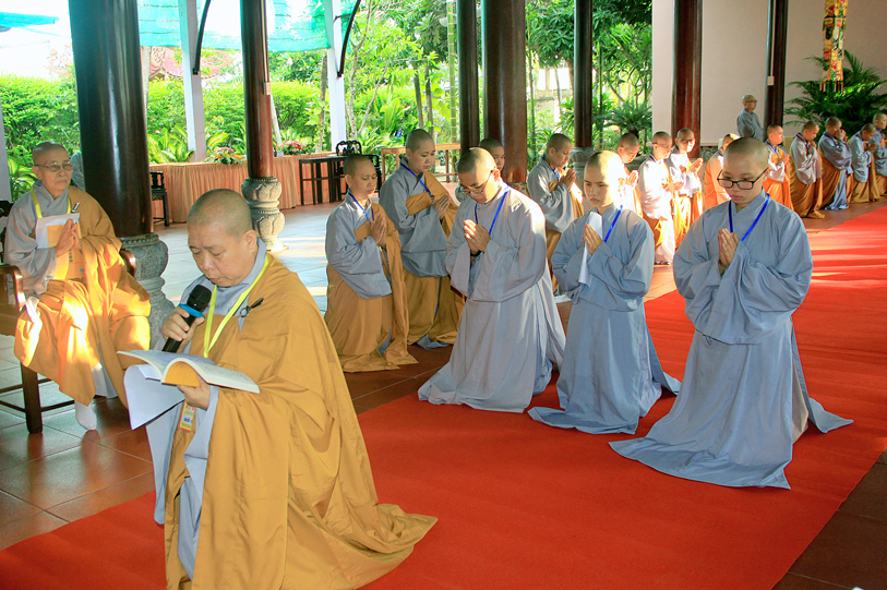 Chư tôn đức giáo phẩm Hội đồng Thập sư Ni cũng đã thực hiện các nghi thức niêm hương lễ Tam Bảo, giới tử sám hối tam nghiệp trước khi đăng đàn truyền giới. Các giới tử Sa-di-ni đã lần lượt đối trước Thập sư, chí thành thọ nhận giới pháp.