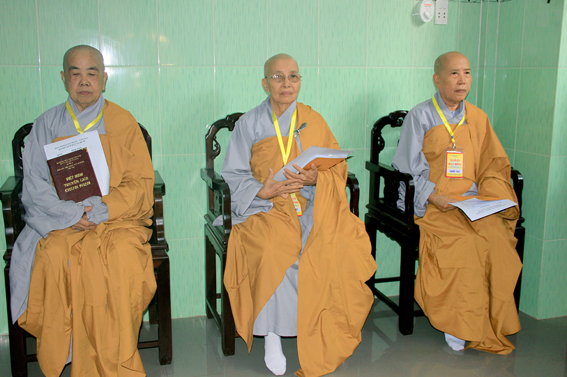 Đúng 07h00, Ban Cung nghinh và Điển lễ cung thỉnh Hội đồng Thập sư Sa-di-Ni quang lâm giới trường. Sau khi cung thỉnh Hội đồng Thập sư tham lễ Tam bảo, sám hối tam nghiệp cho thanh tịnh, chư tôn đức trong Ban Điển lễ đã hướng dẫn các giới tử làm lễ cung thỉnh chư tôn đức làm Tam sư và Thất chứng tiến hành nghi thức truyền trao Giới pháp. Hội đồng Thập sư Ni gồm có: Ni trưởng TN. Đạt Thuận (chùa Linh Sơn, Bình Chánh) đương vi Hòa thượng đàn đầu; Ni trưởng TN. Như Phương đương vi Yết-ma-a-xà-lê; Ni trưởng TN. Tuệ Đăng đương vi Giáo thọ A-xà-lê, và chư Tôn đức thất chứng sư: Ni trưởng TN. Giác Trung, Ni sư TN. Tắc Mẫn, Ni sư TN. Tắc Hoa, Ni sư TN. Diệu Nhàn, Ni sư TN. Chúc Đăng, Ni sư TN. Như Tâm, Ni sư TN. Diệu Phước (điển lễ).