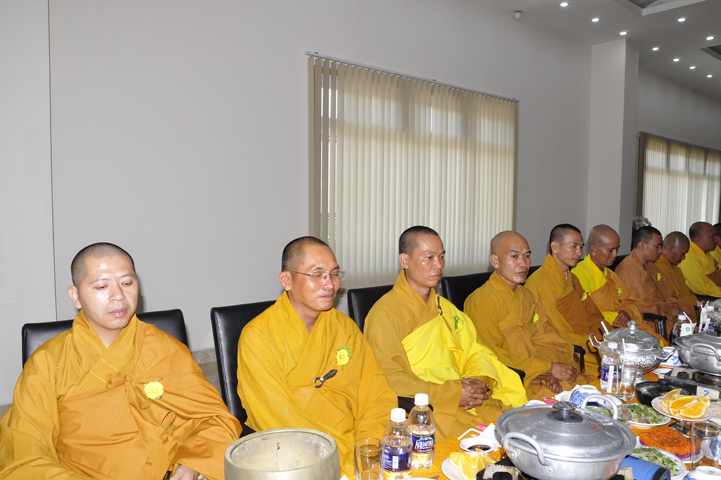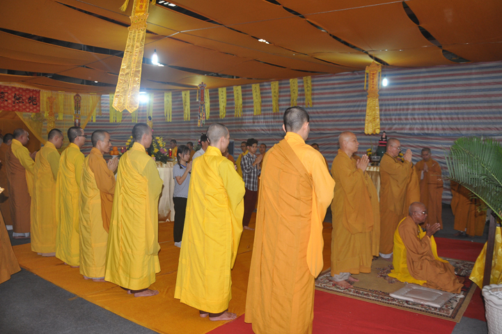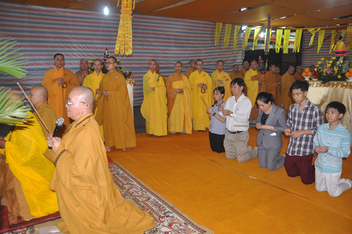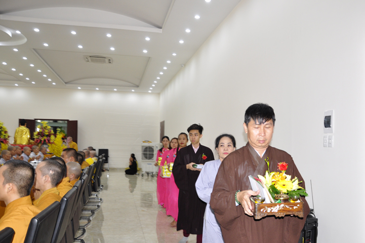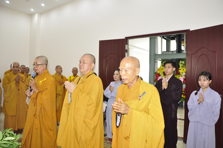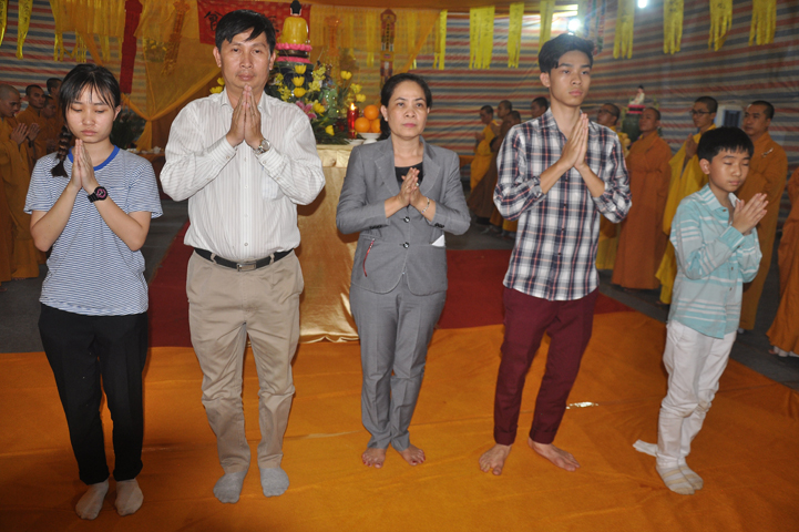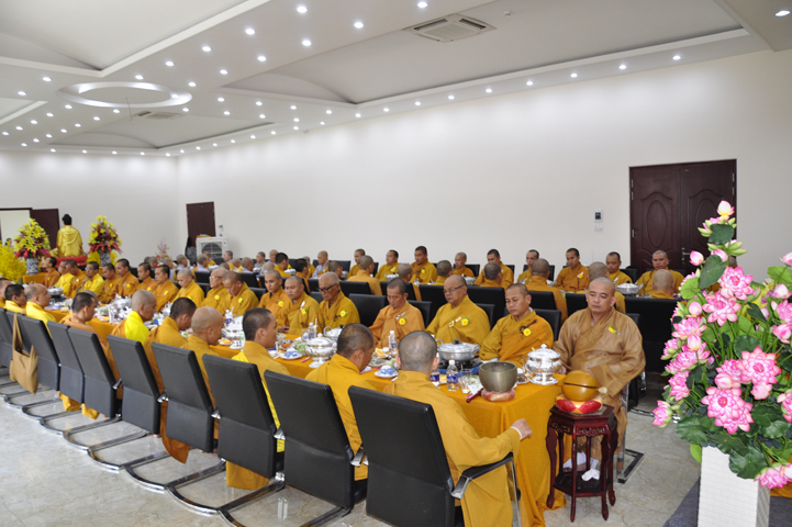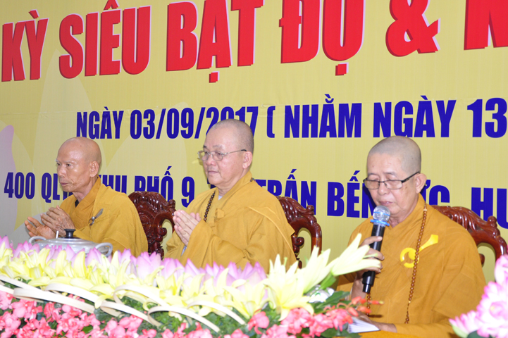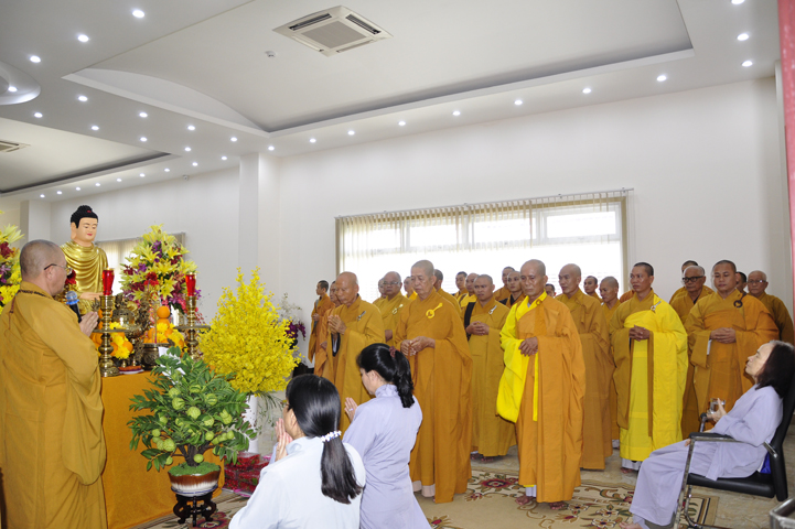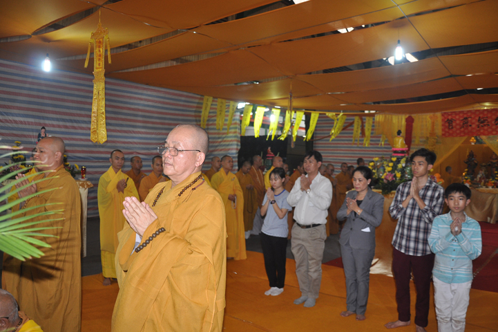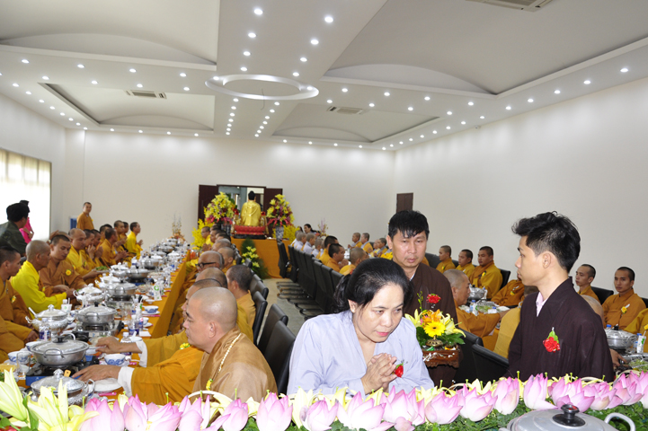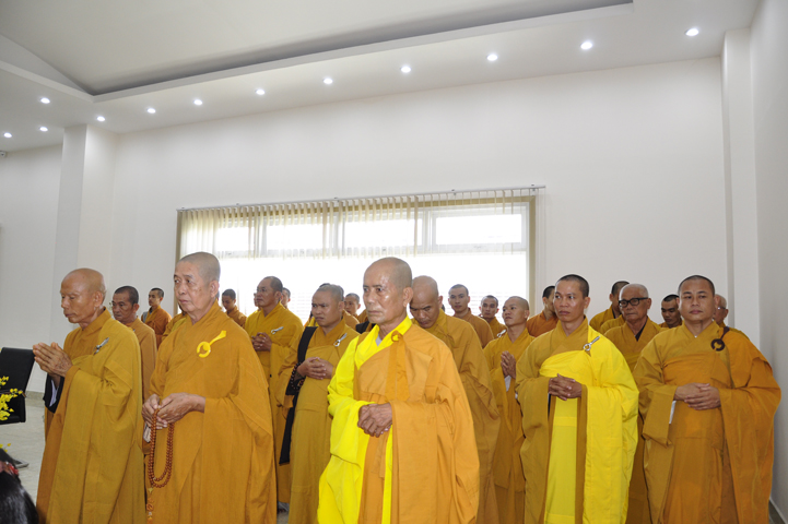 Quang lâm chứng minh buổi lễ: HT Thích Minh Thiện – UV HĐTS, Trưởng BTS GHPGVN tỉnh Long An, hiệu trưởng trường TCPHLA; HT Thích Huệ Hồng – Phó BTS GHPGVN tỉnh Long An; HT Thích Thiện Tài – Quyền trưởng ban Nghi lễ BTS GHPGVN tỉnh Long An cùng chư Tôn đức Tăng Ni tham dự 70 vị, 30 tự viện ở TpHCM, Long An và Tây Ninh.