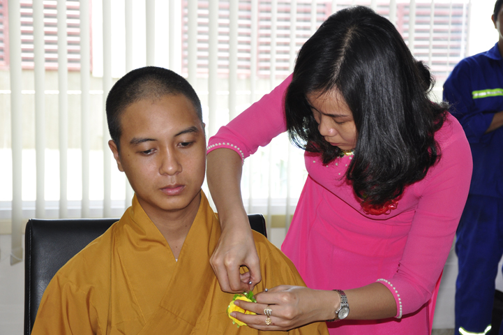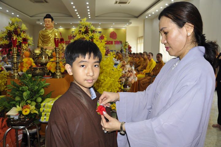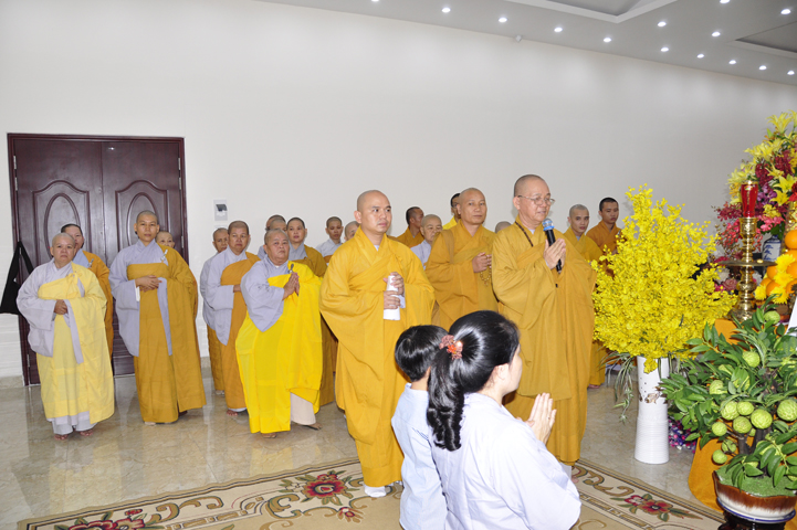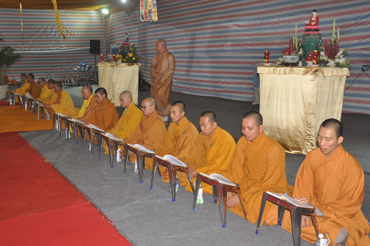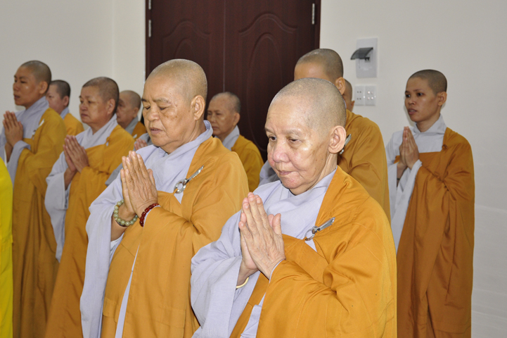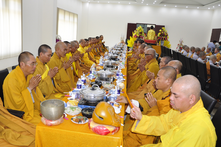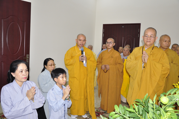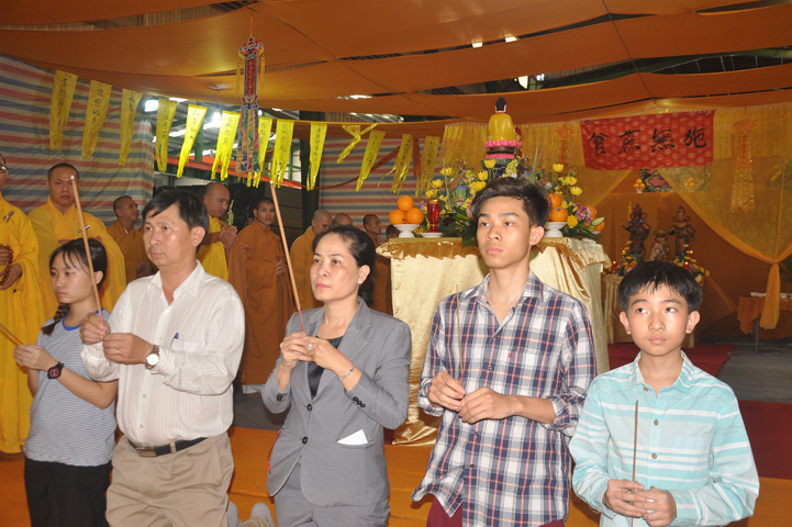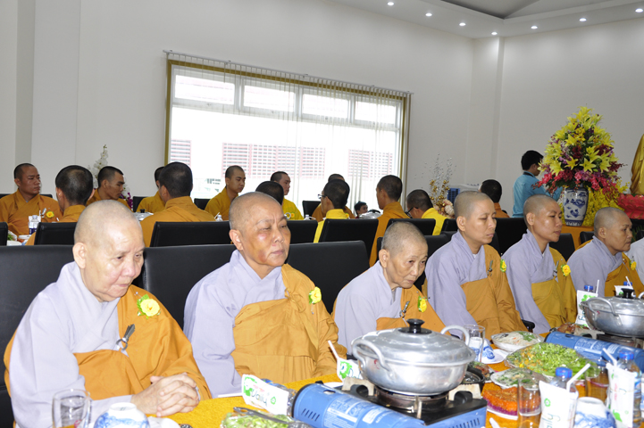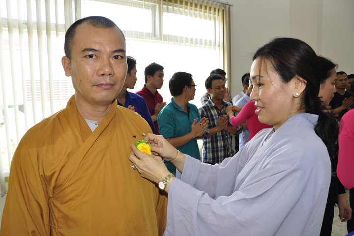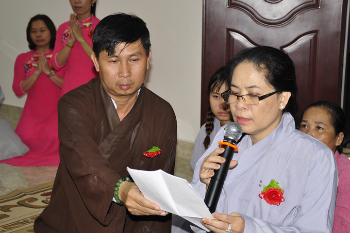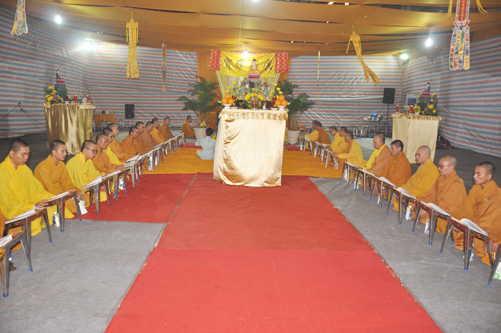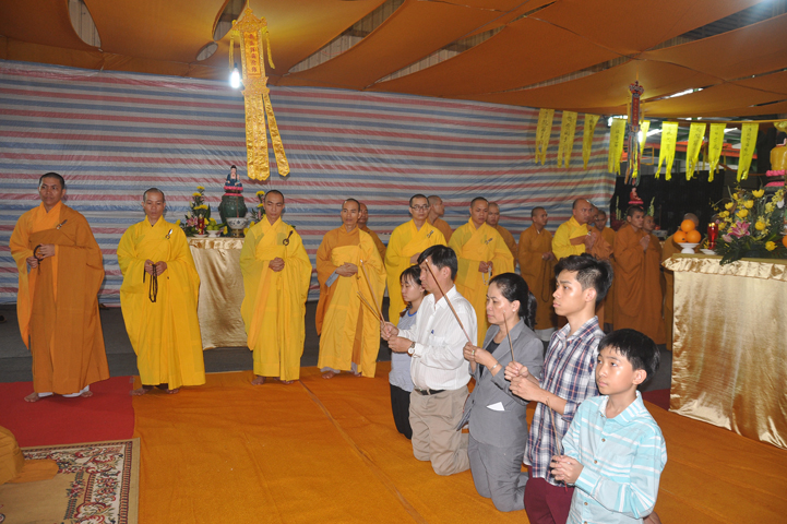 Quang lâm chứng minh buổi lễ: HT Thích Minh Thiện – UV HĐTS, Trưởng BTS GHPGVN tỉnh Long An, hiệu trưởng trường TCPHLA; HT Thích Huệ Hồng – Phó BTS GHPGVN tỉnh Long An; HT Thích Thiện Tài – Quyền trưởng ban Nghi lễ BTS GHPGVN tỉnh Long An cùng chư Tôn đức Tăng Ni tham dự 70 vị, 30 tự viện ở TpHCM, Long An và Tây Ninh.