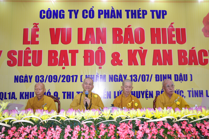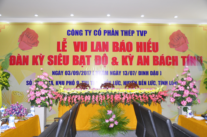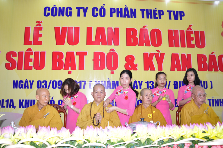 Vào ngày 13/7/ Đinh Dậu (03/9/2017), tại Công ty Thép TVP (số 400 Quốc lộ 1A, thị trấn Bến Lức, huyện Bến Lức, tỉnh Long An) tổ chức lễ Vu lan Báo hiếu, trai đàn chẩn tế bạt độ và cầu an bách tính.