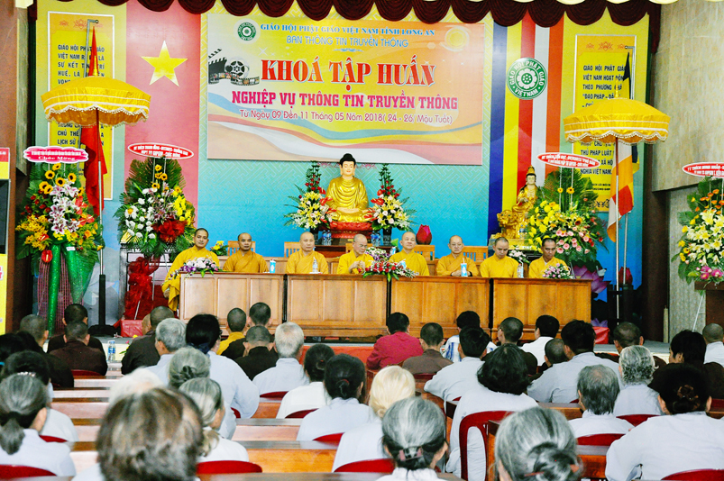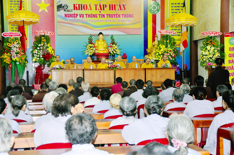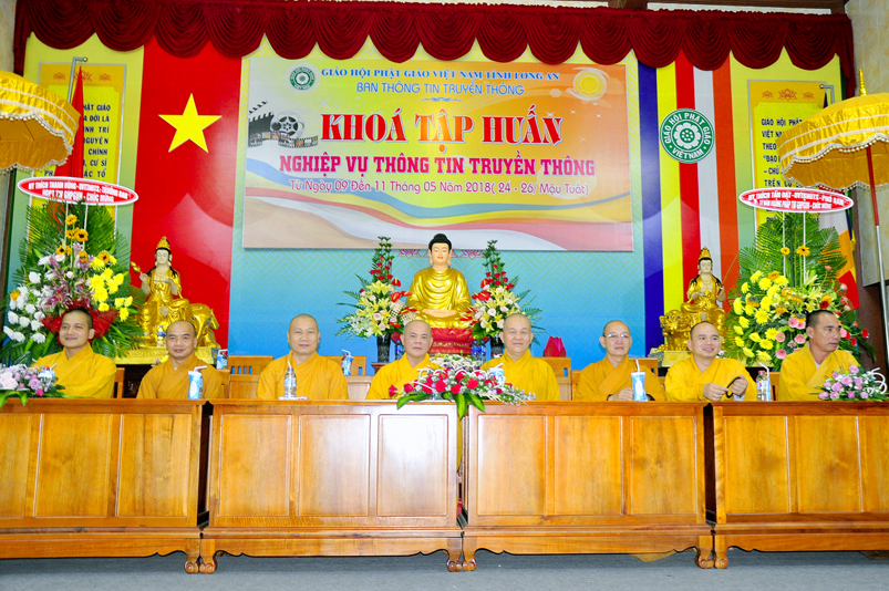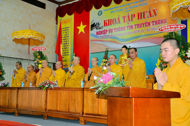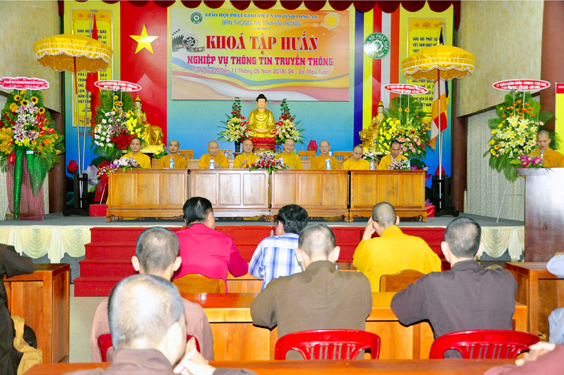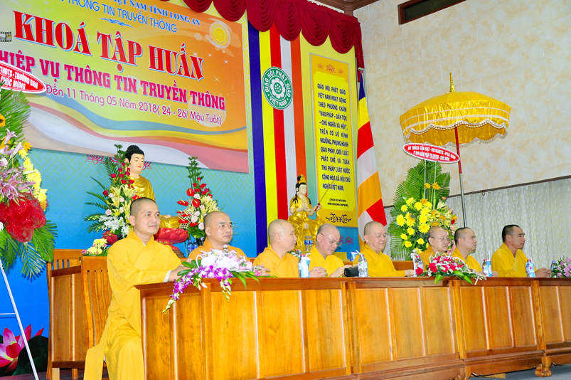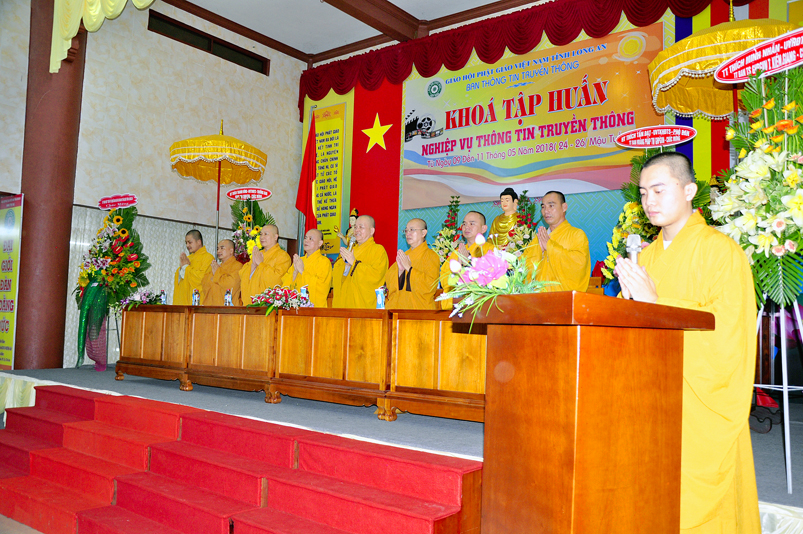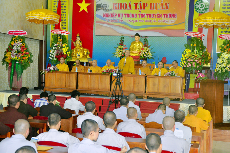 HT. Thích Minh Thiện đã từ bi hoan hỷ ban đạo từ cho toàn thể các khoá sinh, Ngài mong muốn các khoá sinh sau khi học xong khoá tập huấn này sẽ cùng nhau phát triển Thông Tin Truyền Thông mạnh mẽ hơn nữa nhằm phục vụ Đạo Pháp và Dân Tộc, Ngài cũng đã nhấn mạnh về 7 chữ vàng mà Hoà Thượng Chủ Tịch đã tặng cho ngành truyền thông. Hoà thượng chỉ dạy quan điểm tư tưởng về truyền thông phải xác quyết: “ Truyền thông chính là truyền đạt lời Phật dạy, hình ảnh đẹp của Tăng đoàn và công tác Phật sự, ai ai đệ tử Phật đều phải làm truyền thông” nhằm minh định chánh pháp và văn hoá dân tộc Phật giáo.