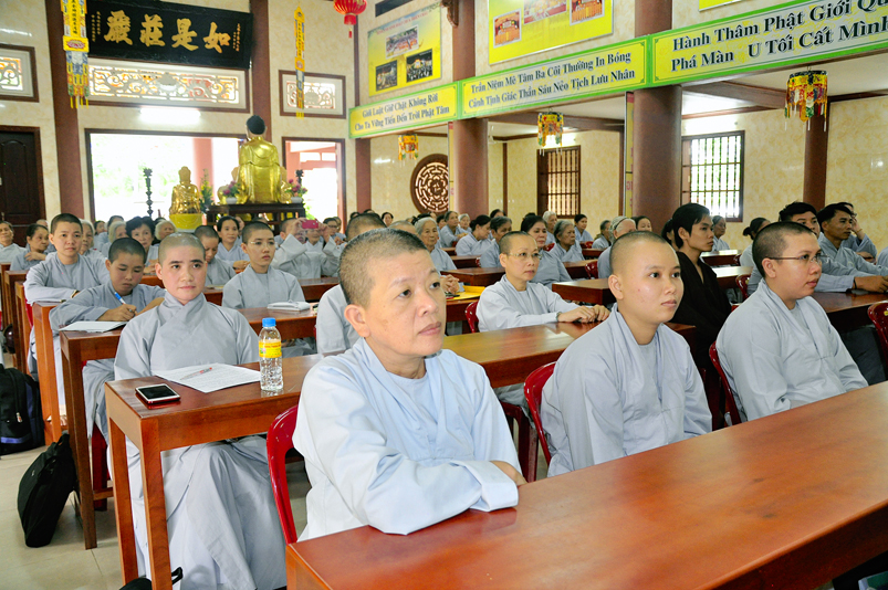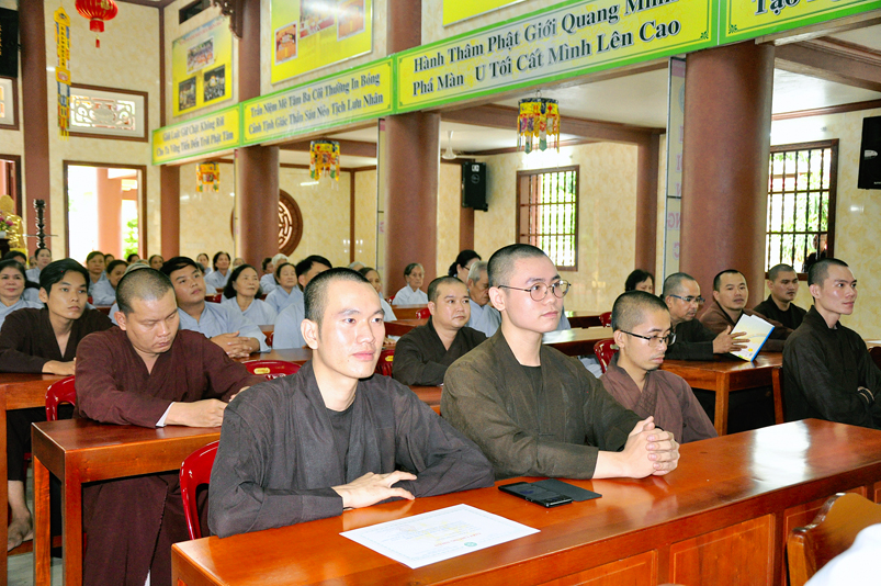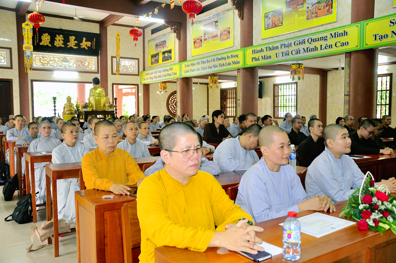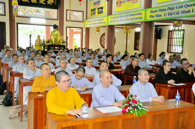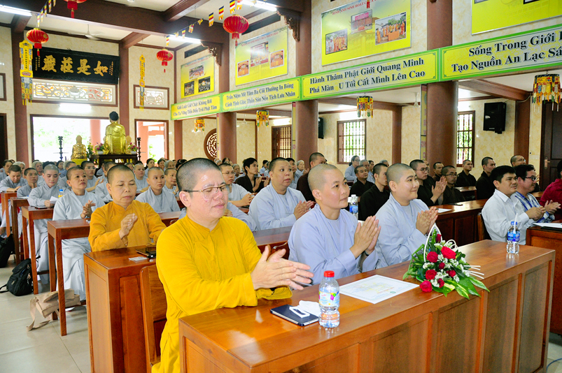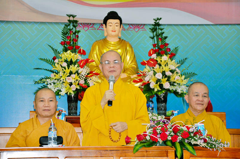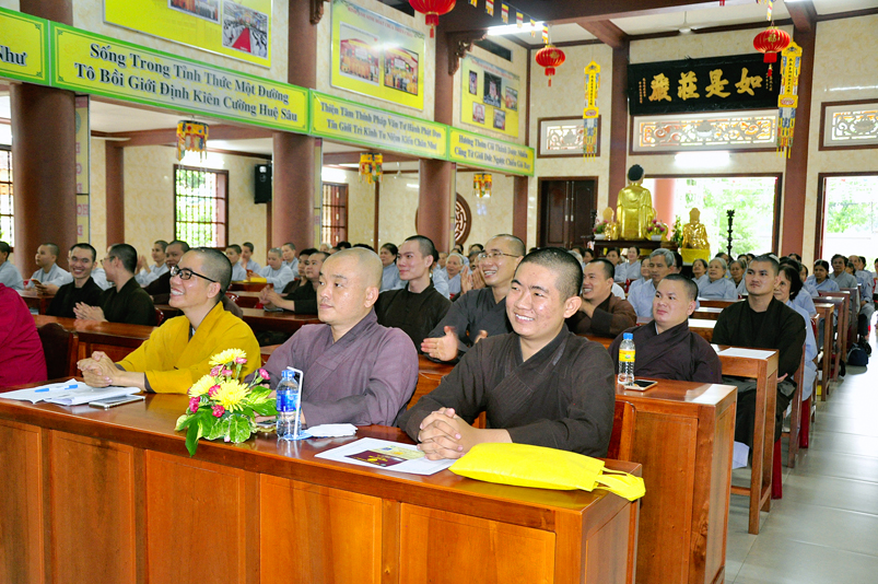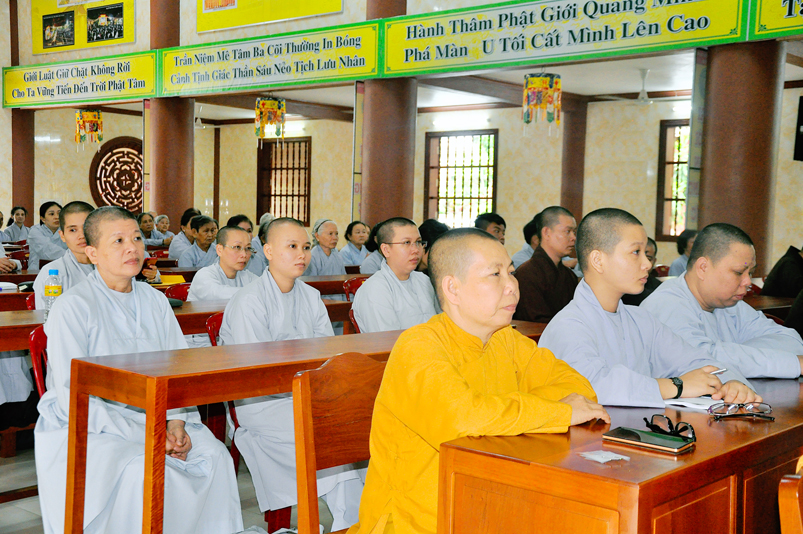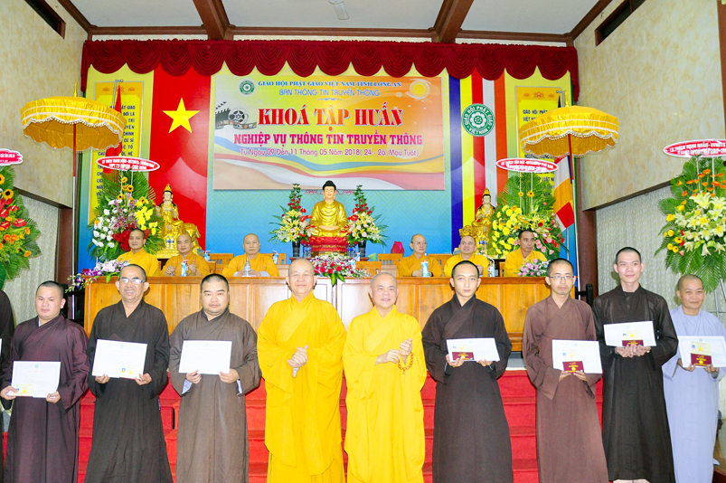HT. Thích Minh Thiện đã từ bi hoan hỷ ban đạo từ cho toàn thể các khoá sinh, Ngài mong muốn các khoá sinh sau khi học xong khoá tập huấn này sẽ cùng nhau phát triển Thông Tin Truyền Thông mạnh mẽ hơn nữa nhằm phục vụ Đạo Pháp và Dân Tộc, Ngài cũng đã nhấn mạnh về 7 chữ vàng mà Hoà Thượng Chủ Tịch đã tặng cho ngành truyền thông. Hoà thượng chỉ dạy quan điểm tư tưởng về truyền thông phải xác quyết: “ Truyền thông chính là truyền đạt lời Phật dạy, hình ảnh đẹp của Tăng đoàn và công tác Phật sự, ai ai đệ tử Phật đều phải làm truyền thông” nhằm minh định chánh pháp và văn hoá dân tộc Phật giáo.