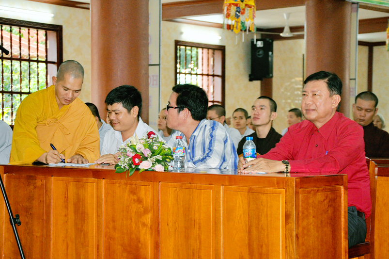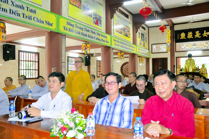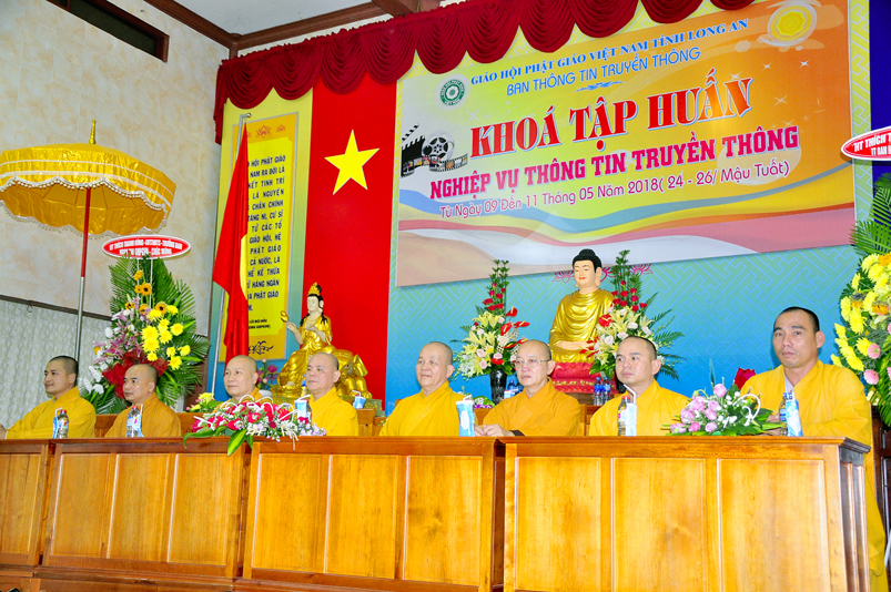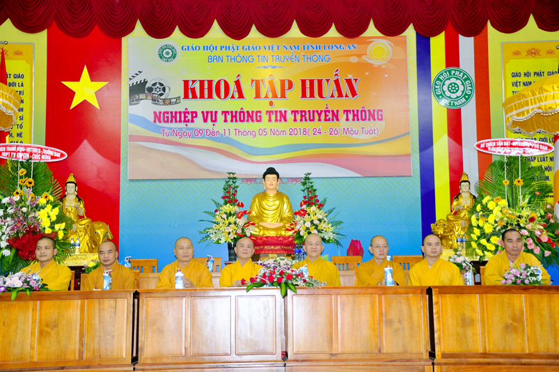 Quang lâm chứng minh có: HT. Thích Tấn Đạt – UV Thư ký HĐTS T.Ư, Phó Thường trực ban Hoằng pháp, Phó văn phòng 2 TW GHPGVN, Cố vấn truyền hình trực tiếp Phật Sự Miền Tây; HT. Thích Minh Thiện – UV HĐTS, Trưởng Ban Trị Sự GHPGVN tỉnh Long An; TT. Thích Quảng Tâm – Phó trưởng ban Thường trực Ban Trị Sự GHPGVN tỉnh Long An cùng chư Tôn Đức trong thường trực Ban Trị Sự GHPGVN tỉnh Long An quang lâm và chứng minh buổi lễ bế mạc khoá Tập Huấn Nghiệp Vụ Truyền Thông Phật Giáo.