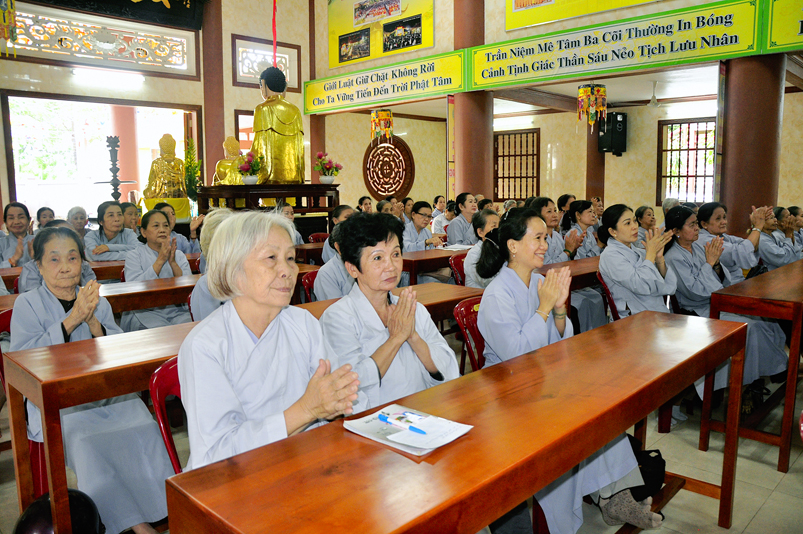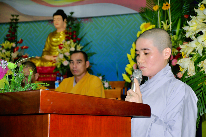 Sau báo cáo, là lời cảm tưởng của khoá sinh, các tăng ni khoá sinh đã đối trước Chư Tôn Đức chứng minh ,nêu cảm tưởng của mình sau 3 ngày tập huấn, các khoá sinh rất lấy làm cảm tạ Chư Tôn Đức trong Ban Trị Sự tỉnh Long An cũng như là Ban Thông Tin Truyền Thông đã tổ chức lớp Tập Huấn này nhằm đào tạo các Tăng Ni trẻ trong lĩnh vực Thông Tin Truyền Thông, nhằm phát huy lĩnh vực truyền thông theo tinh thần “Truyền Thông Như Một Kênh Hoằng Pháp” và “ Tâm trong – Trí sang – Ngoài bút thép” mà Hoà Thượng Chủ Tịch đã dạy. Và cũng không quên kính chúc đến chư Tôn Đức Pháp thể khinh an chúng sinh dị độ.