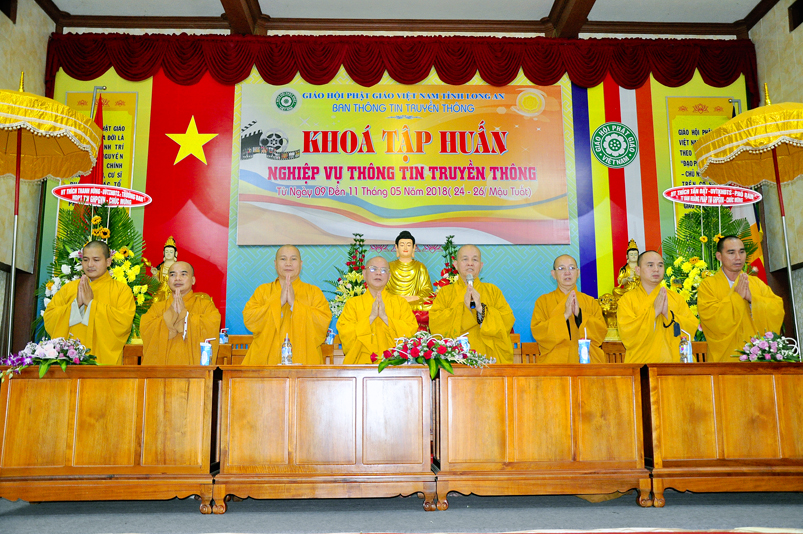 Chiều ngày 11 tháng 5 năm 2018 (26/4/ Mậu Tuất), tại hội trường Chùa Thiên Châu, số 101, Huỳnh Văn Nhứt, P.3, Tp. Tân An, Long An đã long trọng diễn ra buổi lễ Bế Mạc Khoá Tập Huấn Nghiệp Vụ Thông Tin Truyền Thông Phật Giáo do Ban Thông Tin Truyền Thông tỉnh Long An tổ chức từ ngày 9-11 tháng 5 năm 2018.