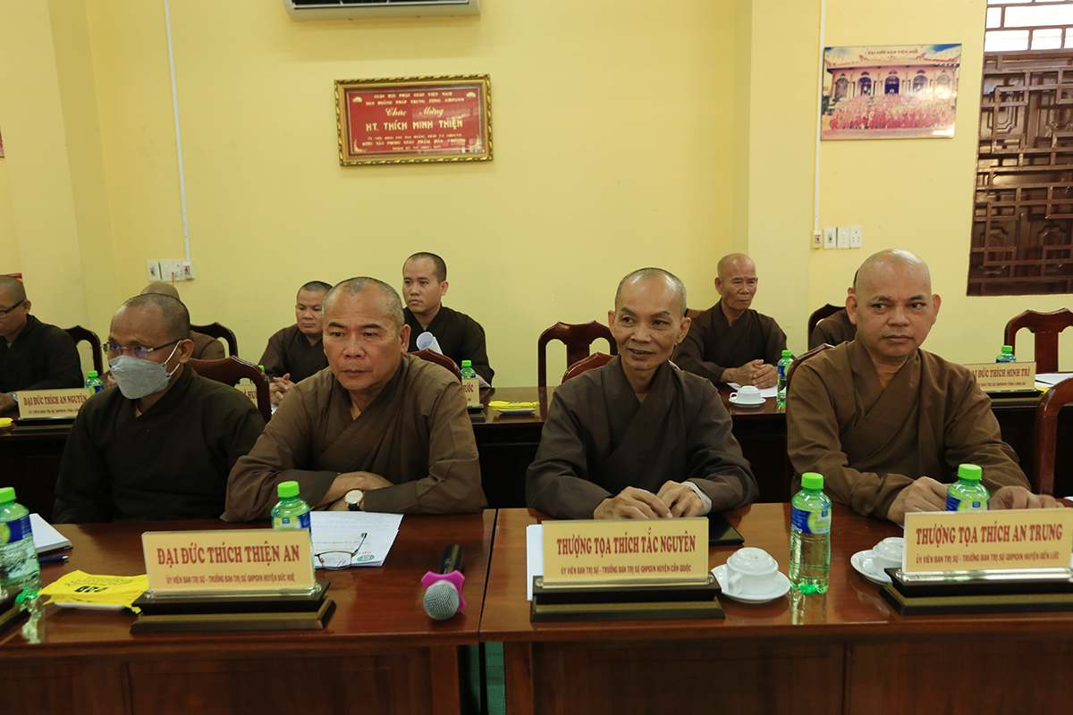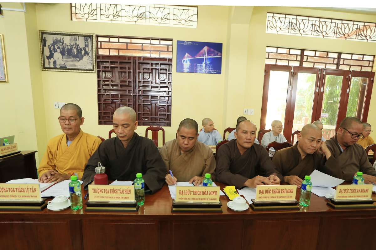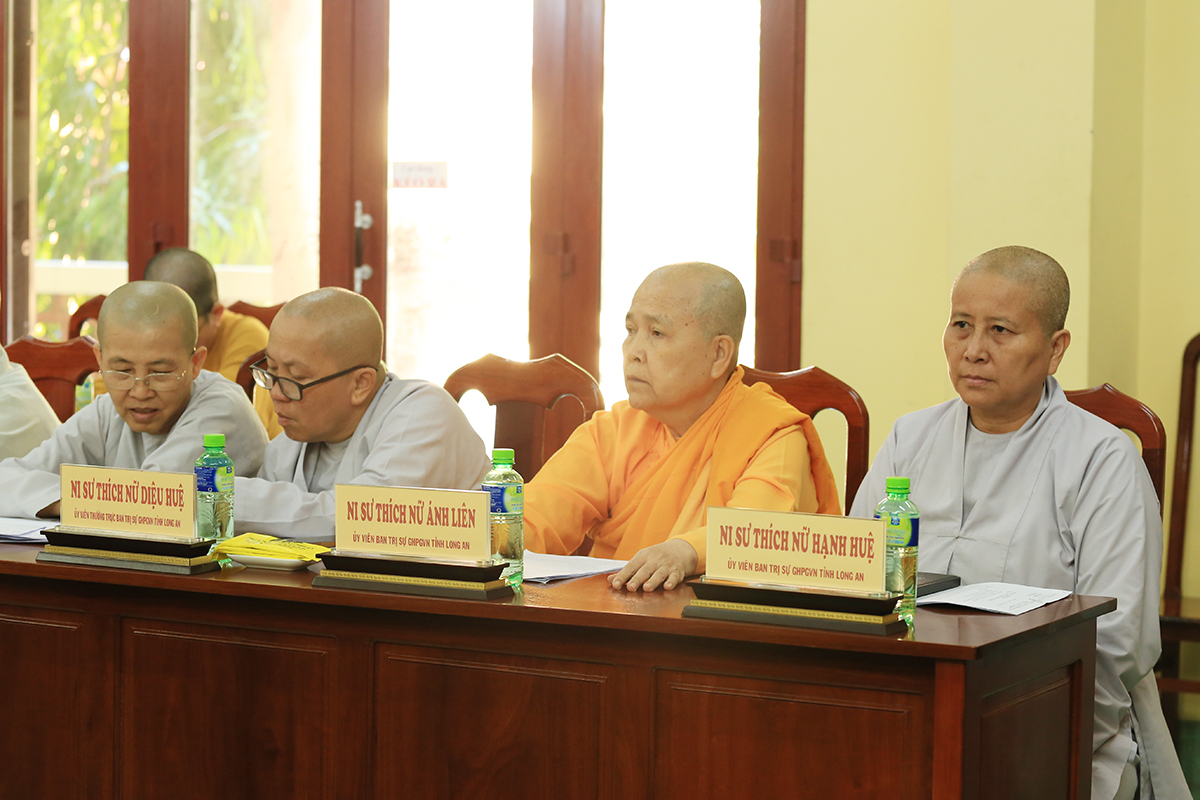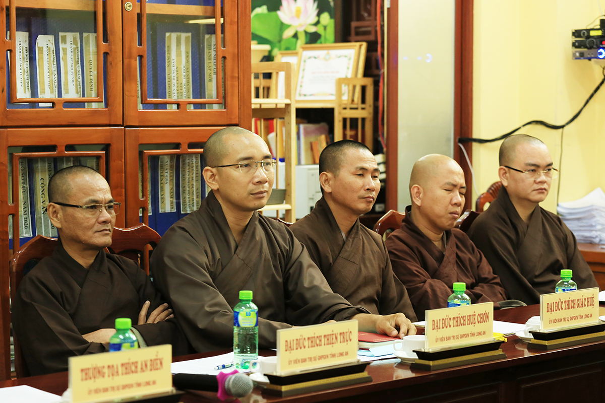 Phiên họp được cung nghinh sự quang lâm của Hòa thượng Thích Huệ Hồng – Chứng Minh BTS GHPGVN tỉnh Long An, Hòa thượng Thích Minh Thiện – UV HĐTS – Phó Trường Ban Hoằng pháp TW – Trưởng BTS GHPGVN tỉnh Long An, Thượng tọa Thích Quảng Tâm – UV HĐTS – Phó Trưởng Ban Thường trực BTS GHPGVN tỉnh Long An, cùng Chư Tôn đức đồng Phó Trưởng BTS GHPGVN tỉnh Long An, Chư tôn đức Thành viên Ban Thường trực, Chư tôn đức ủy viên BTS GHPGVN tỉnh Long An, Chư tôn đức Trưởng Ban Trị sự các huyện, thị, thành phố trực thuộc tỉnh Long An, cùng chư tôn đức Tăng Ni các Ban trực thuộc các BTS trực thuộc tỉnh đồng thân lâm tham dự.