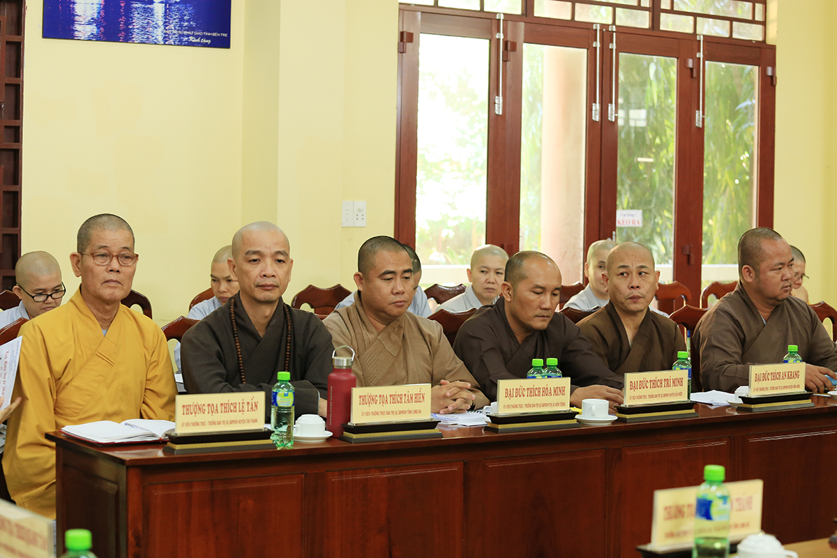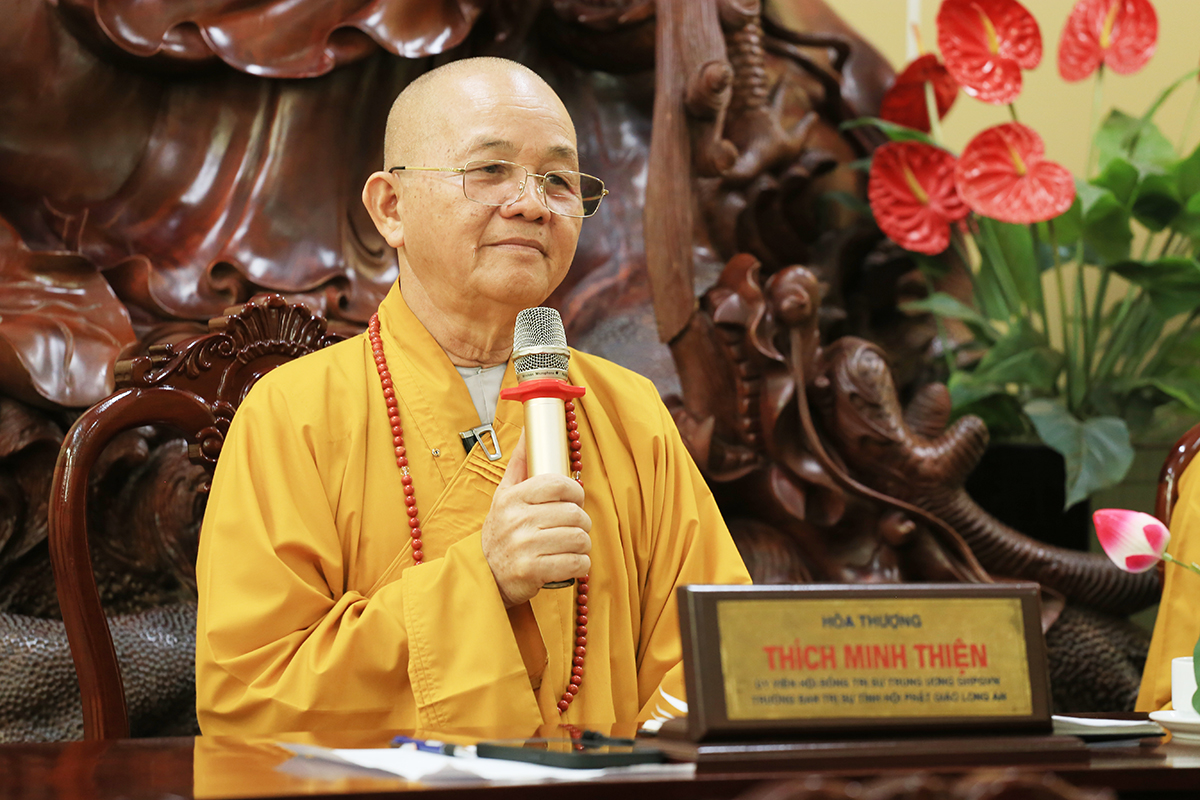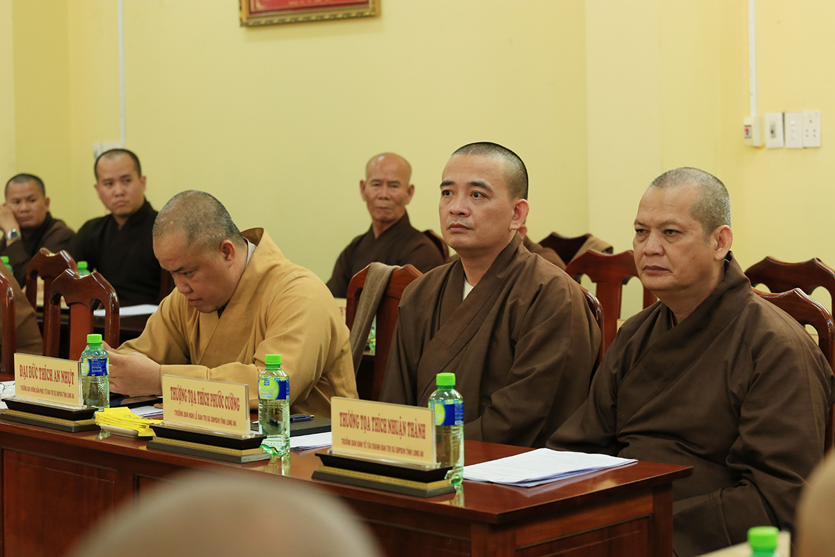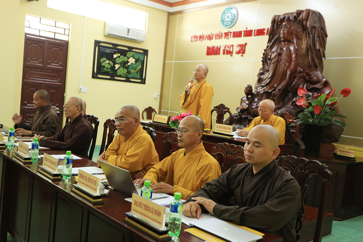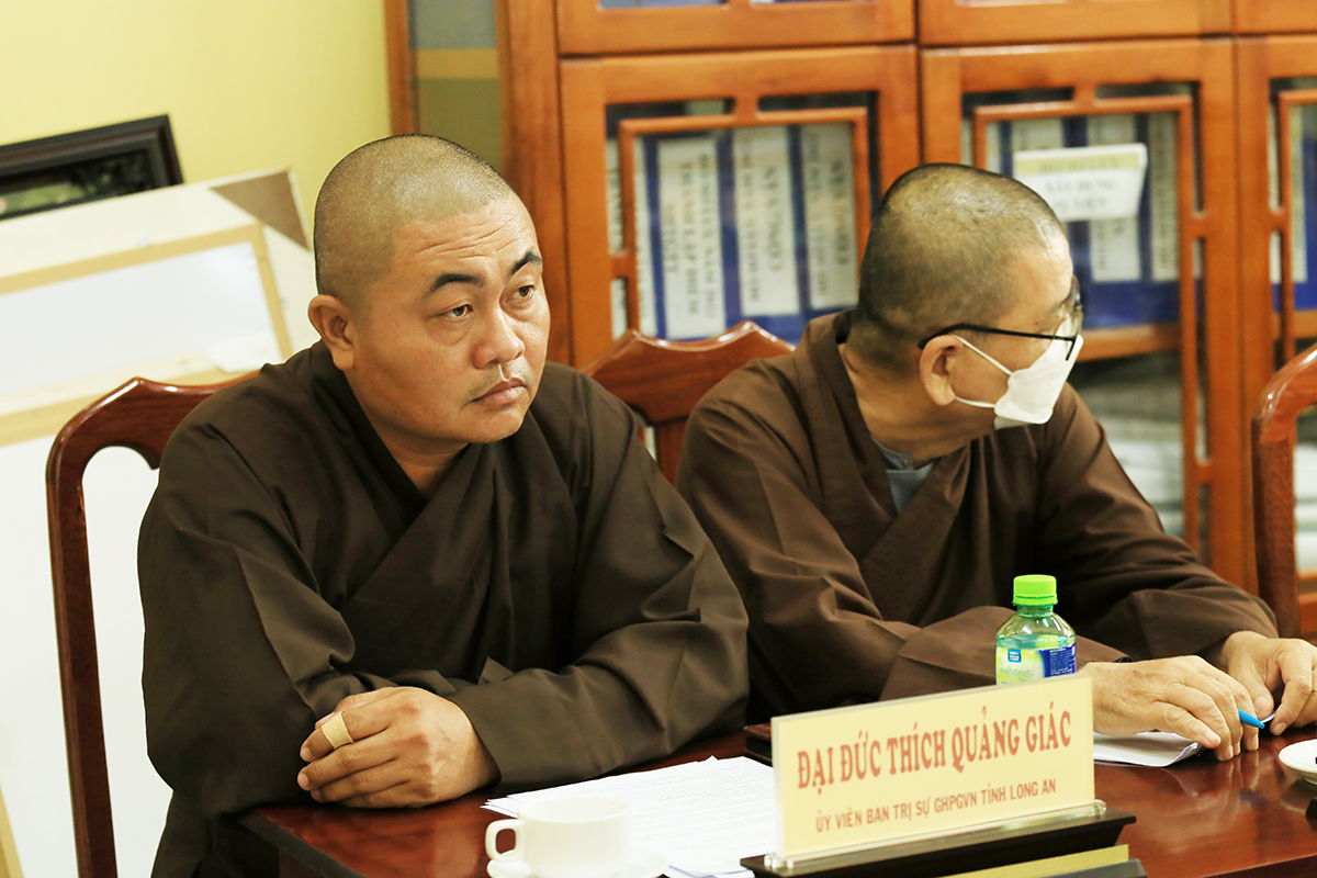 Phiên họp được đón nhận nhiều ý kiến đóng góp từ Chư tôn đức tham dự, Thượng tọa Thích Quảng Tâm – Uỷ viên HĐTS – Phó Trưởng Ban Thường trực BTS GHPGVN tỉnh Long An đã tóm tắt và thống nhất toàn bộ ý kiến, kính trình Hòa thượng Trưởng Ban trị sự cho ý kiến chỉ đạo.