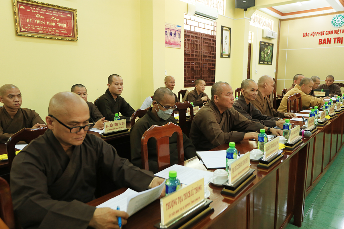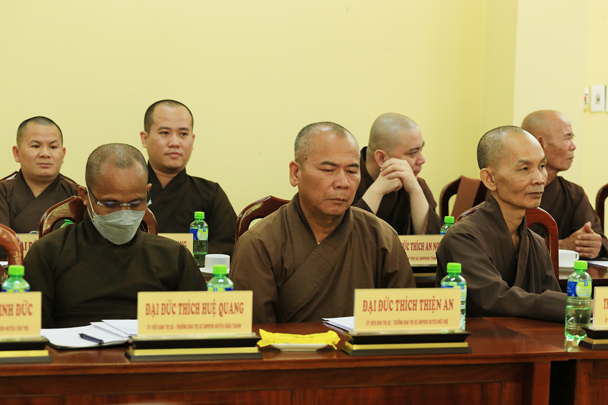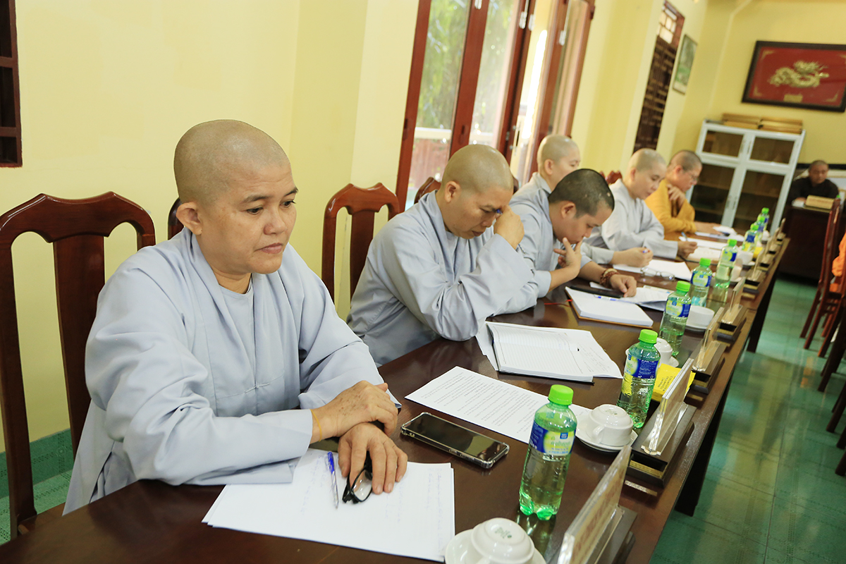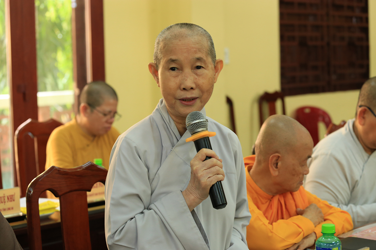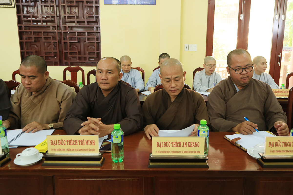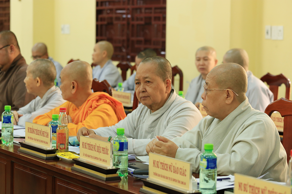 Phiên họp được đón nhận nhiều ý kiến đóng góp từ Chư tôn đức tham dự, Thượng tọa Thích Quảng Tâm – Uỷ viên HĐTS – Phó Trưởng Ban Thường trực BTS GHPGVN tỉnh Long An đã tóm tắt và thống nhất toàn bộ ý kiến, kính trình Hòa thượng Trưởng Ban trị sự cho ý kiến chỉ đạo.