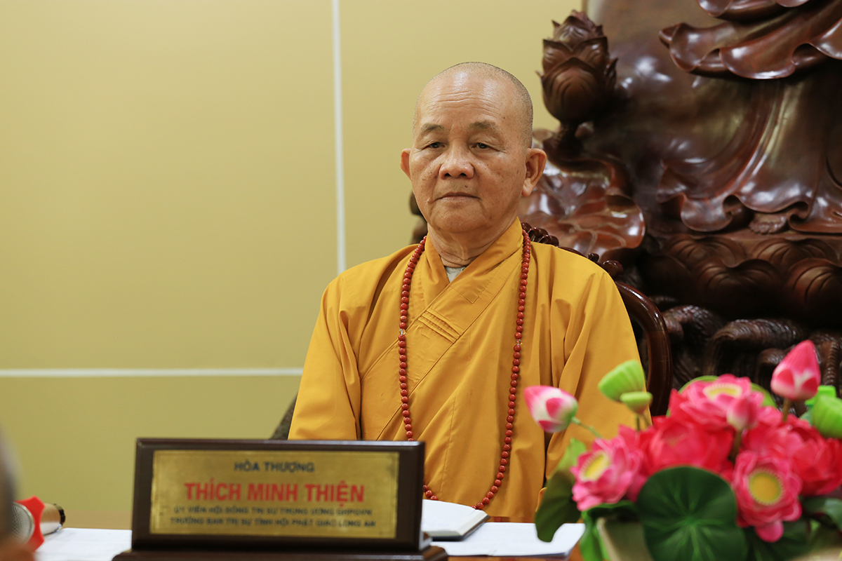 Hòa thượng Thích Minh Thiện – Uỷ viên HĐTS – Trưởng BTS GHPGVN tỉnh Long An đã ban lời đạo từ về thống nhất ý kiến của toàn thế chư tôn đức, bên cạnh đó nhận mạnh về việc chuẩn hóa Pháp phục Phật giáo và nhi thức tụng niệm là điều cấp thiết và hữu ích trong thời buổi hiện tại, Hòa thượng đã đúc kết lại quá trình hình thành và phát triển chùa Pháp Minh, kính tưởng đến công đức của Tổ sư Thượng Liễu Hạ Lạc, chỉ đạo Chư tôn đức tiến hành nhanh chóng hoàn thiện về việc cung thỉnh Hội động Thập sư truyền giới sớm hoàn thành, cung thỉnh Chư tôn đức các huyện, thị Thành phố trong Ban tiri chức giới đàn một cách chọn lọc và tinh tế nhất, bên cạnh đó về mặt trang trí giới trường cần có sự thẫm mỹ khách quan từ nhiều mặt sao cho giới trường được trang nghiêm. Ngài nhấn mạnh việc hoàn chỉnh nhất quán về mặt ban giám khảo, giám thị tại trường giới, thống nhất các câu hỏi và câu trả lời trong đề cương khảo hạch giới tử, tán thán công đức chư tôn đức đang khẩn trương cho công tác hoàn thành khâu chuẩn bị hoàn thiện về mọi mặt Phật sự, về Khóa An cư Kiết Hạ sắp đến, Hòa thượng chỉ đạo cần có tính nghiêm túc, tinh tấn trong quá trình tu tập tại các Hạ trường, tiếp tục duy trì các trường Hạ đã được ấn định, đồng thời Ban Chức sự nơi các trường hạ cần thống nhất về thời khóa tu tập theo truyền thống, kiểm tra về tư cách hành giả tu tập, chỉnh chu về quá trình thực hiện các thủ tục hành chánh như cấp sổ hạ, cấp chứng điệp an cư kiết hạ cho chư hành giả tu tập. Hòa thượng kêu gọi chư tôn đức cần đoàn kết, chung tay để việc tổ chức đại thành tựu tốt đẹp nhất.