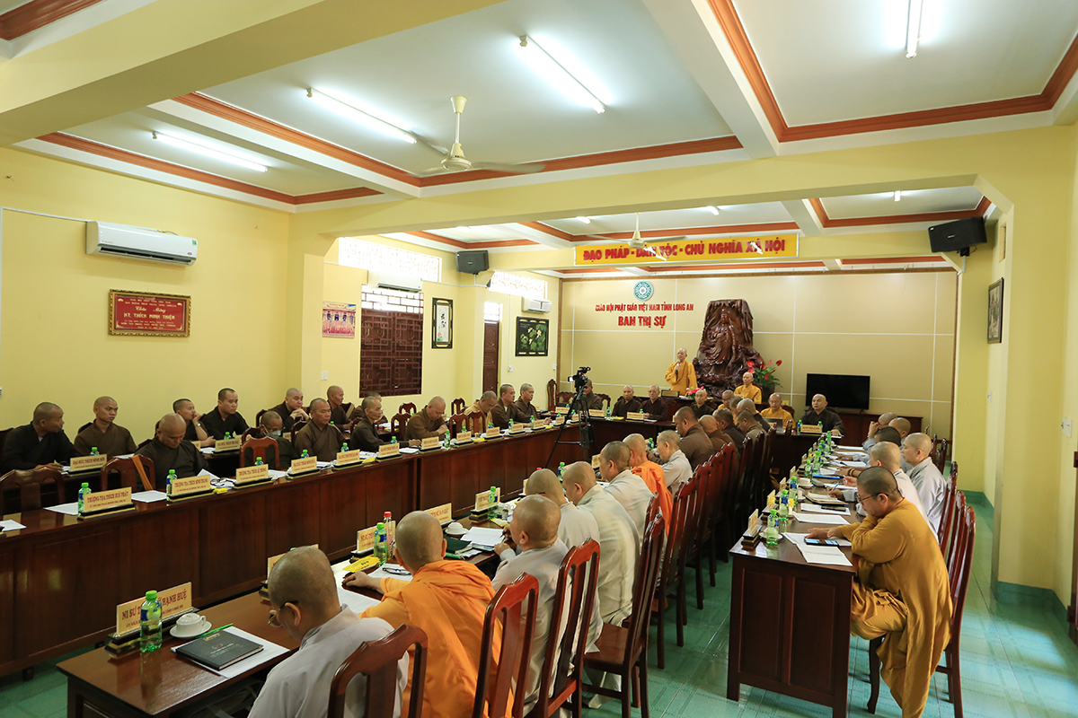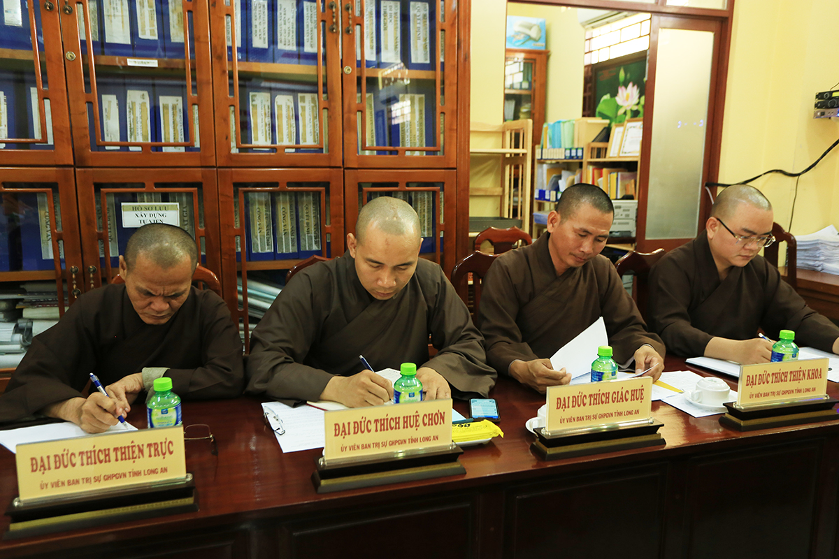 Sau khi thông qua chương trình phiên họp, Chư tôn đức Trưởng các Phân ban Hoằng pháp, Ban Văn Hóa Phật giáo tỉnh Long An đã báo các công tác Phật sự chuyên môn tại các huyện thị thuộc tỉnh, Ban Văn hóa đã thống nhất và báo cáo công tác tổ chức Đại gới đàn và pháp phục để phục vụ Đại giới đàn và Đại lễ Phật đản trong các khâu tôn thiết, trang trí dần hoàn thành, chuẩn bị tốt cho mọi thành tựu sắp đến. Văn phòng thư ký đã báo cáo về số lượng hồ sơ đã tiếp nhận, đồng thời hướng dẫn về quá trình chuẩn bị hồ sơ, bồi dưỡng về kiến thức hành chánh công tác giáo hội sắp đến để chư tôn đức được nắm bắt và thụ lý hồ sơ được tốt hơn