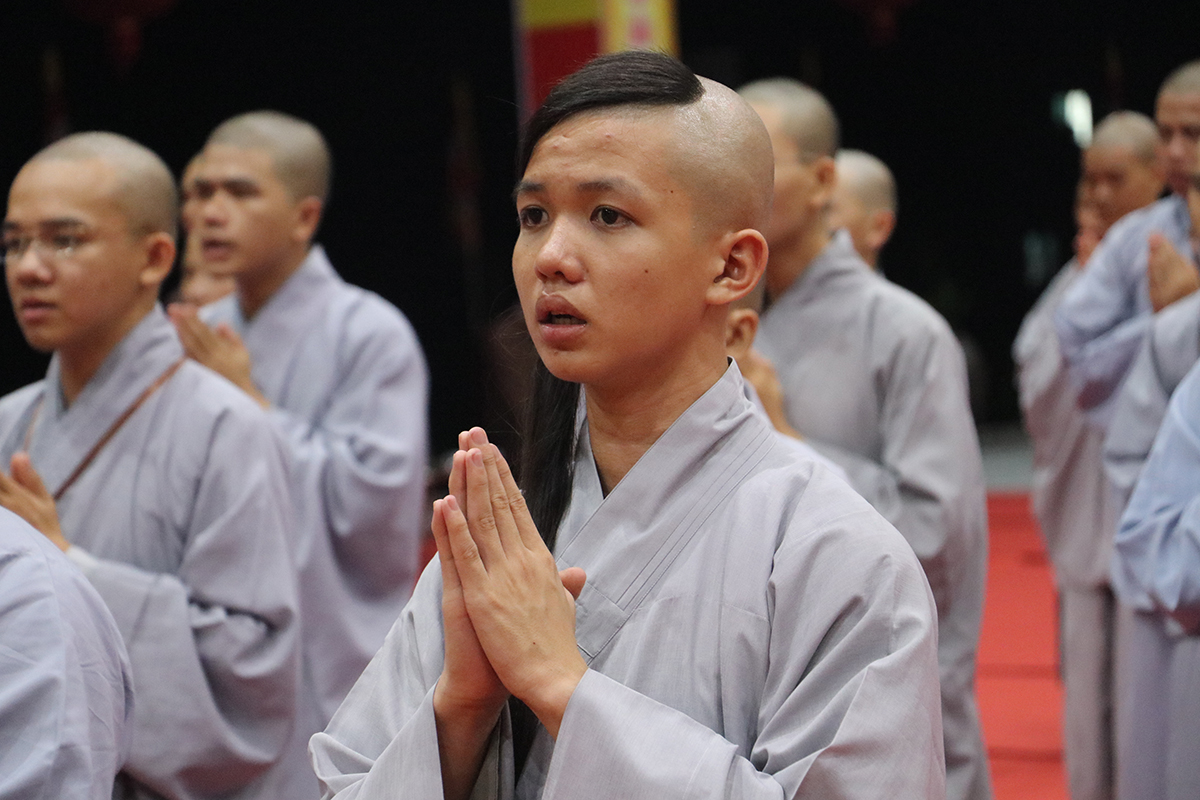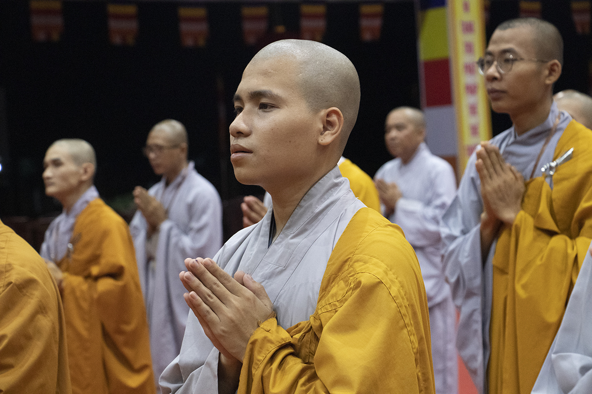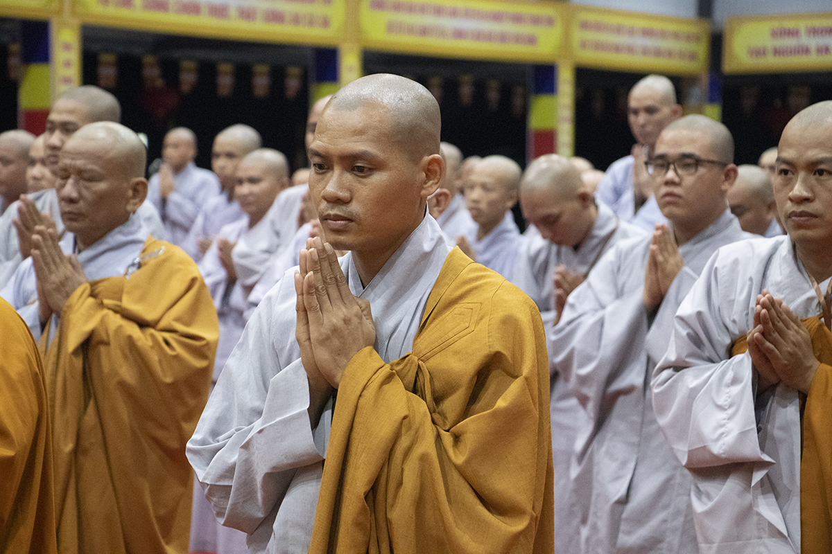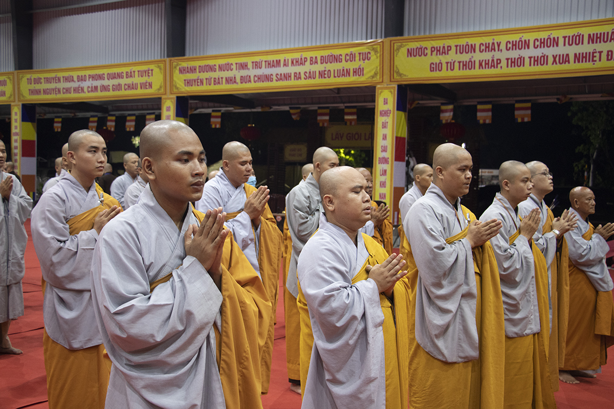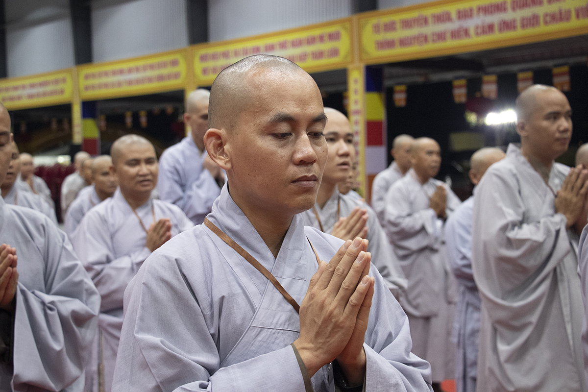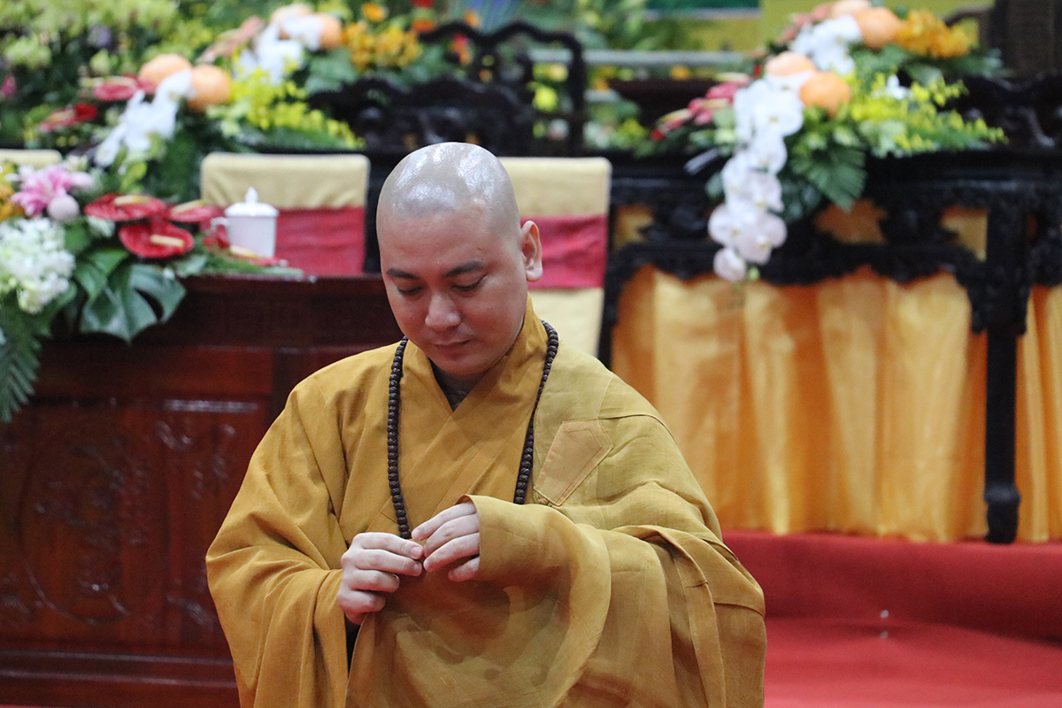 Chư giới tử đã lắng nghe lời chỉ dạy của Thượng tọa Thích An Trung – UV BTS Phật giáo tỉnh – Trưởng BTS GHPGVN huyện Bến Lức – Thành viên BTS Đại giới đàn đã hướng dẫn toàn thể giới tử về việc đắp y, thọ bát, thọ tọa cụ, đãy lược nước, chuẩn bị cho giới tử chuẩn bị thọ giới.