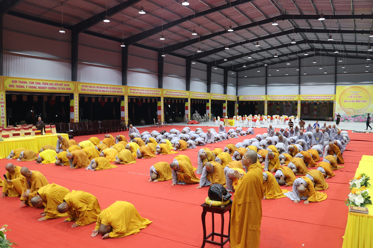 Sau khi trải qua kỳ khảo thí của Đại giới đàn, các giới tử đã đồng vân tập trở về hội trường, nơi tôn thiết lễ đài Đức Phật Thích Ca Mâu Ni để thành tâm lễ Phật sám hối, an trú tam nghiệp, sau thời khóa sám hối chư giới tử đủ điều kiện được phép thọ giới tại Đại giới đàn Liễu lạc đã tập trung tại Hội trường vào lúc 20h00 cùng ngày để được lắng nghe BTC Đại giới đàn thông qua Nội quy Đại giới đàn.