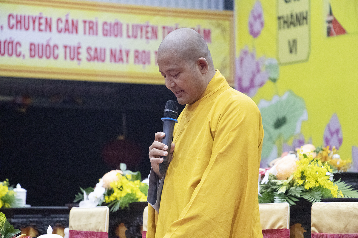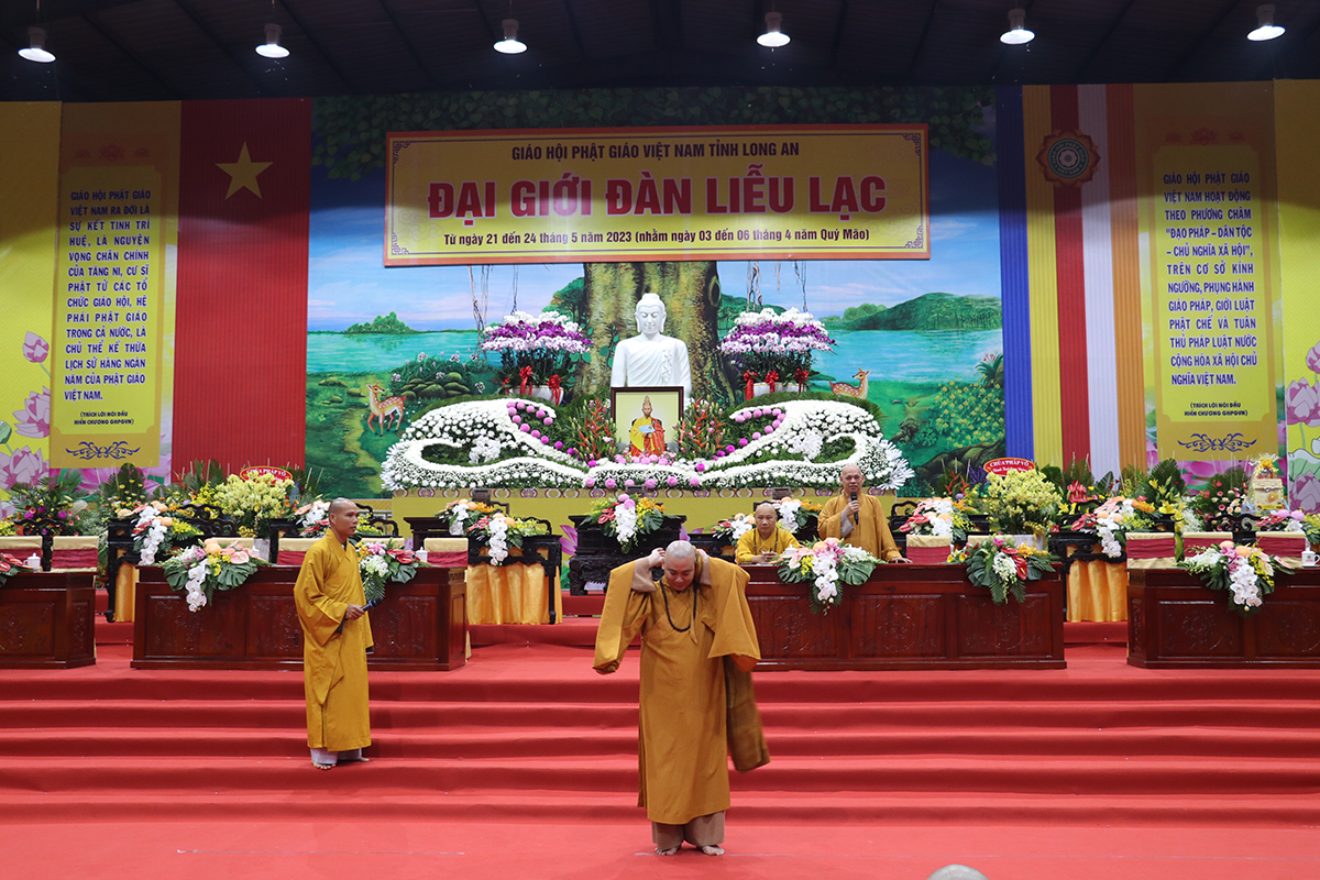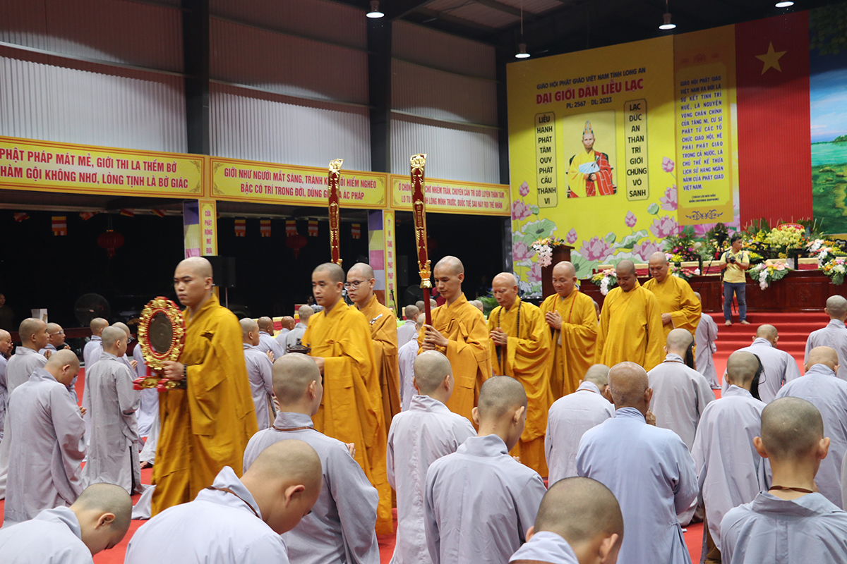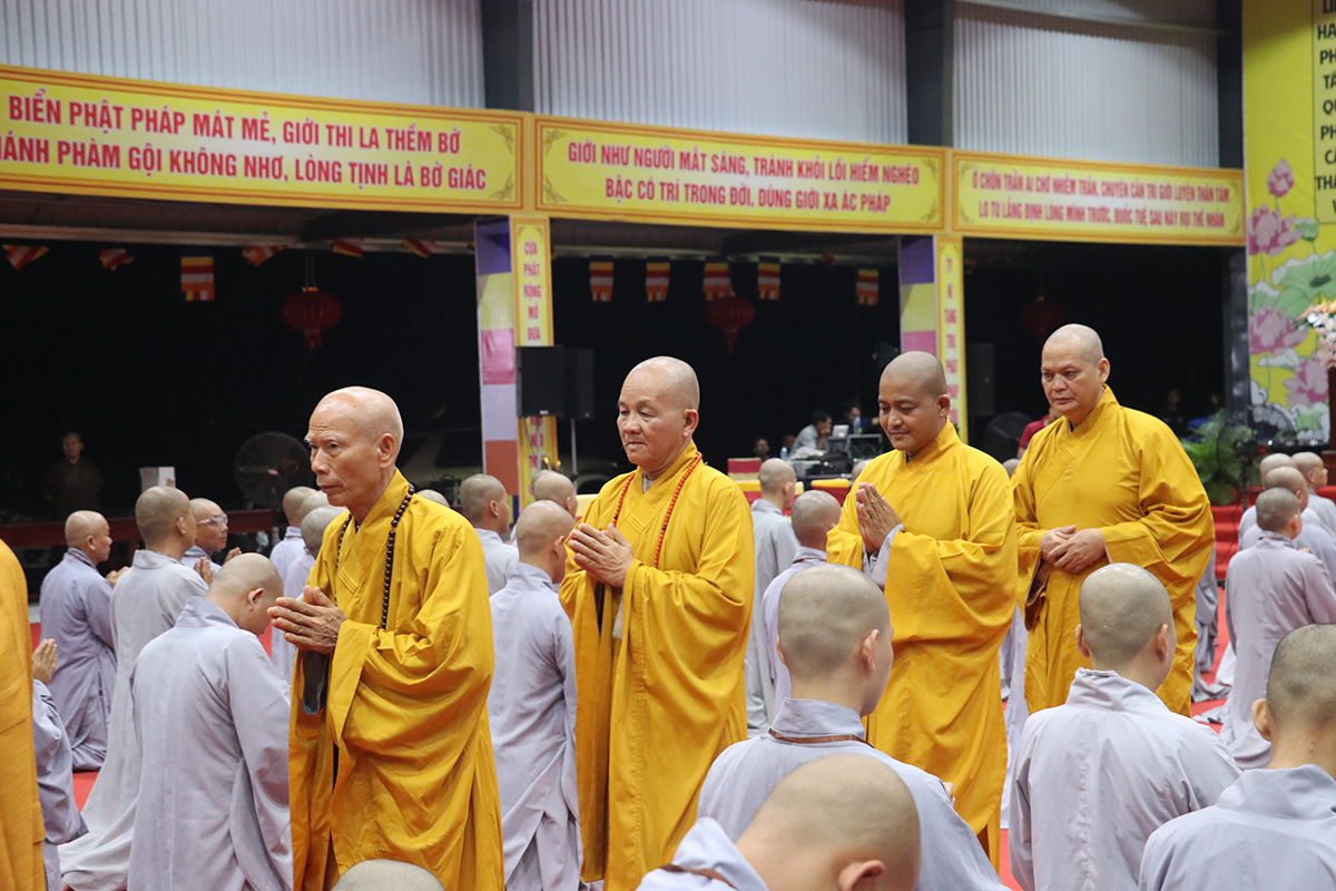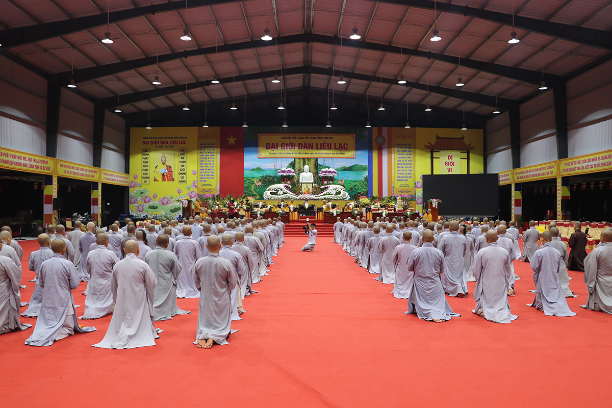 Buổi sinh hoạt nội quy được cung thỉnh Hòa thượng Thích Huệ Hồng – CM BTS GHPGVN tỉnh Long An, Hòa thượng Thích Minh Thiện – UV HĐTS, Phó Trưởng Ban Hoằng pháp TƯ, Trưởng BTS GHPGVN tỉnh Long An, Trưởng Ban tổ chức Đại giới đàn, Thượng tọa Thích Đức Hoàng – Phó Trưởng BTS GHPGVN tỉnh Long An, Đại đức Thích Lệ Duyên – Phó Trưởng ban kiêm Chánh Thư ký BTS tỉnh, cùng Chư tôn đức Ban Thường trực BTS GHPGVN tỉnh Long An, Chư Tôn đức Ban tổ chức Đại giới đàn, và sự hiện diện của đầy đủ các giới tử đủ điều kiện thọ giới tại Đại giới đàn.