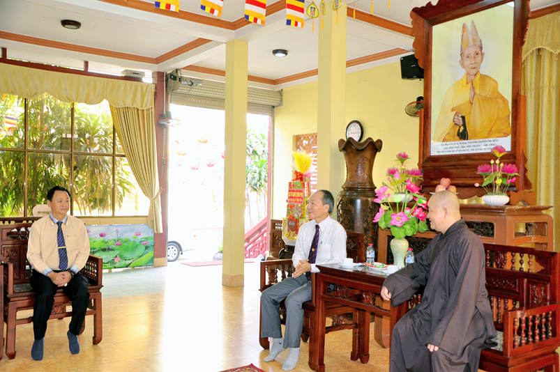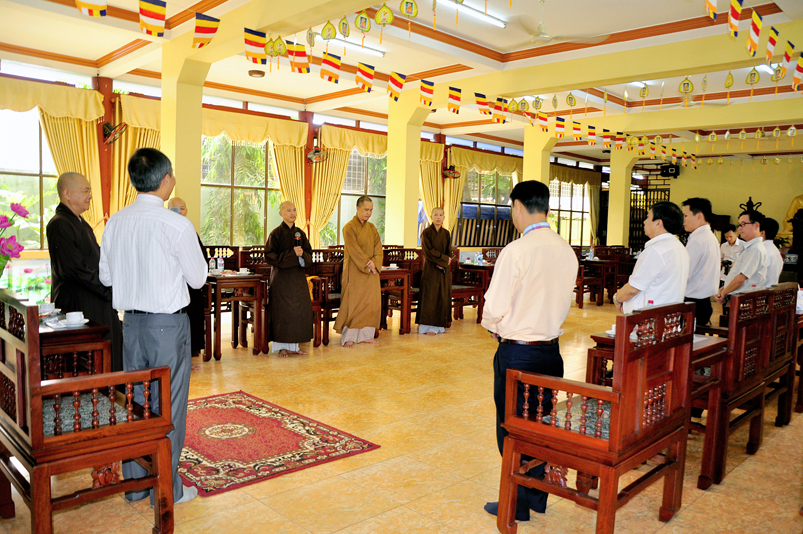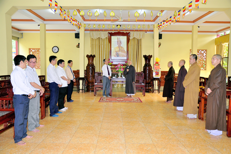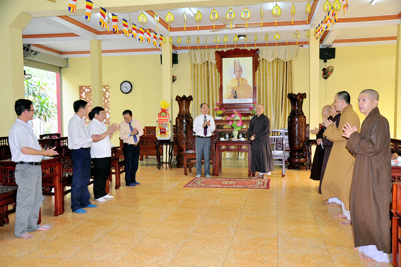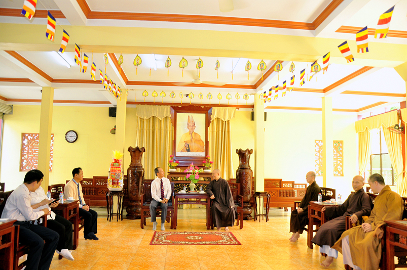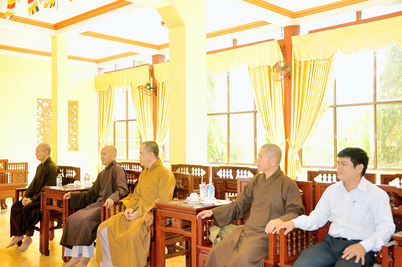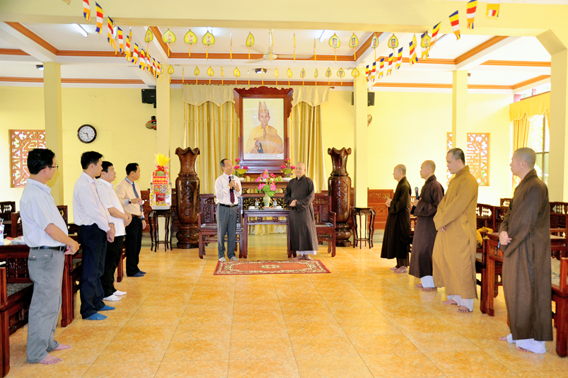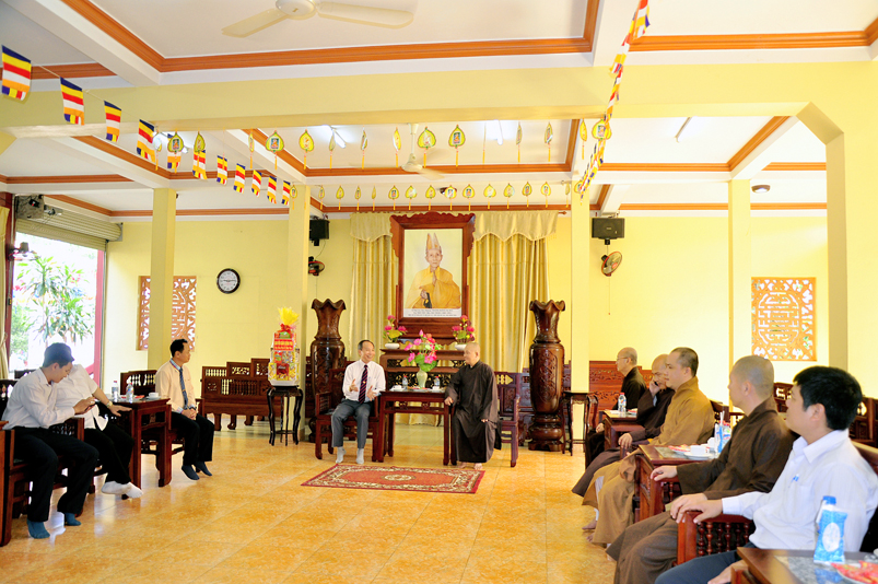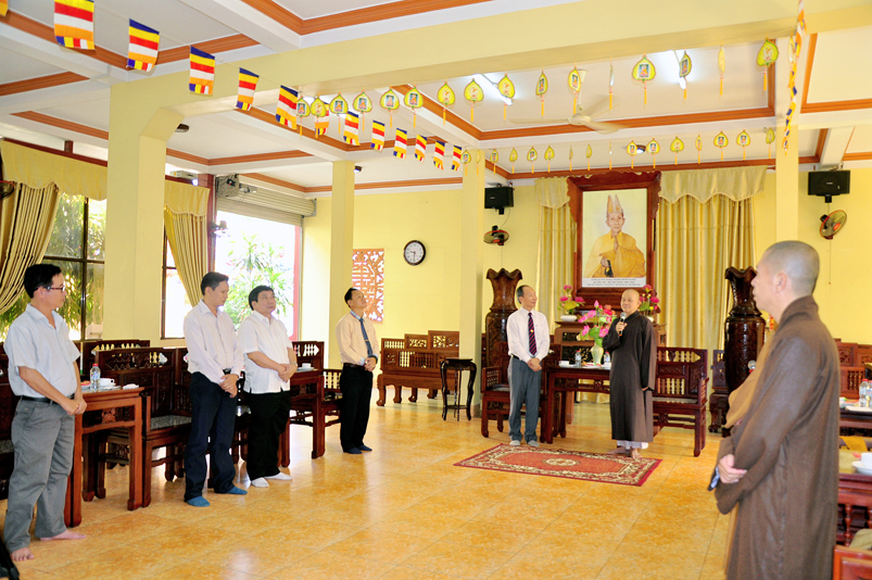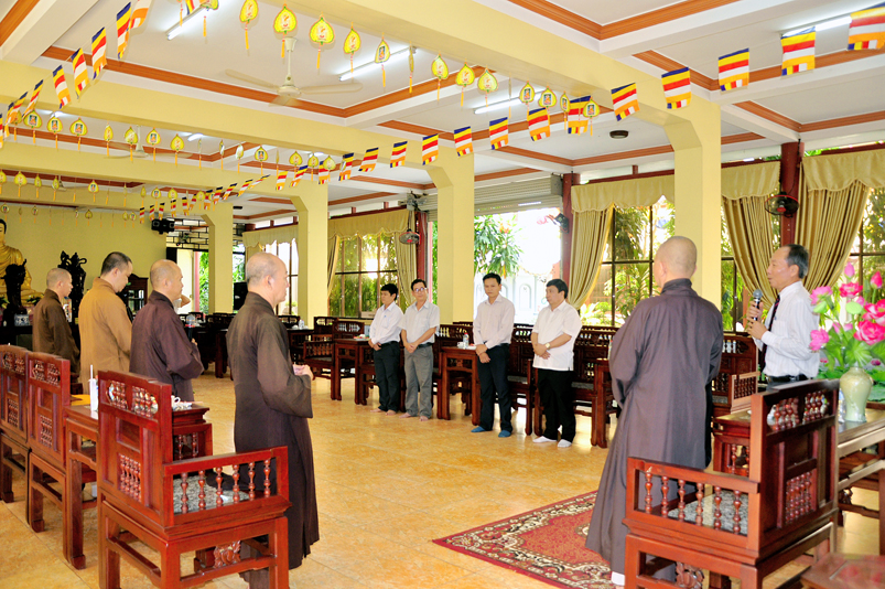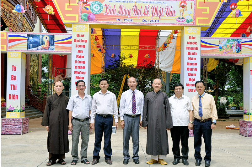 Phái đoàn do ông Trần Thanh Hùng – Phó ban Tôn giáo Chính phủ làm trưởng đoàn. Tiếp phái đoàn, gồm có quý vị đại diện Ban Tôn giáo, Ban Dân vận tỉnh Long An, Hoà thượng Thích Minh Thiện – Uỷ viên HĐTS, Phó ban Hoằng pháp Trung ương GHPGVN, Trưởng Ban Trị sự GHPGVN tỉnh Long An cùng chư tôn đức Ban Thường trực Trị sự Phật giáo tỉnh Long An.
