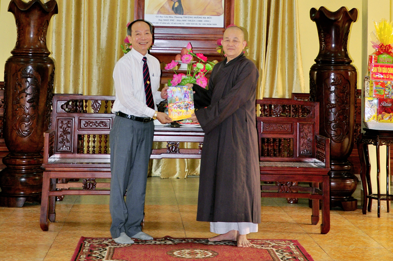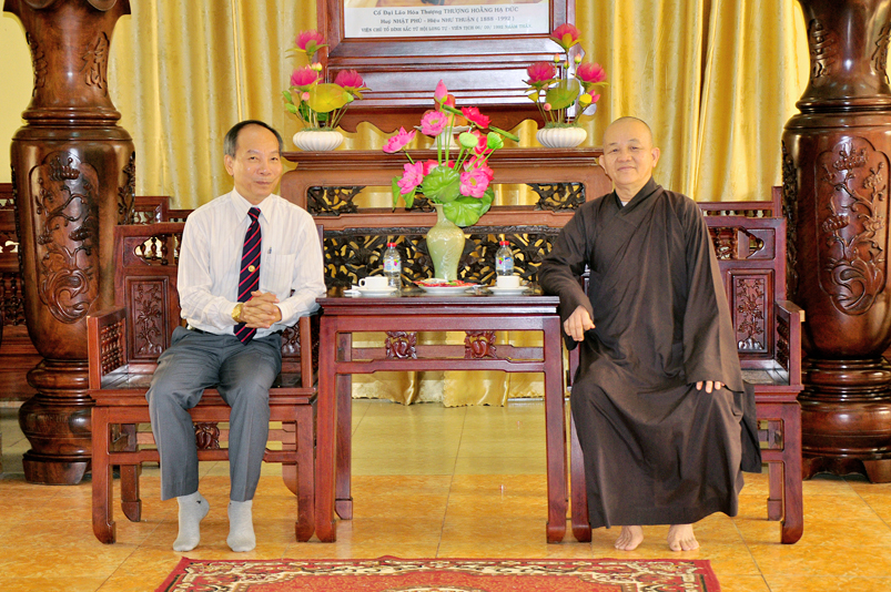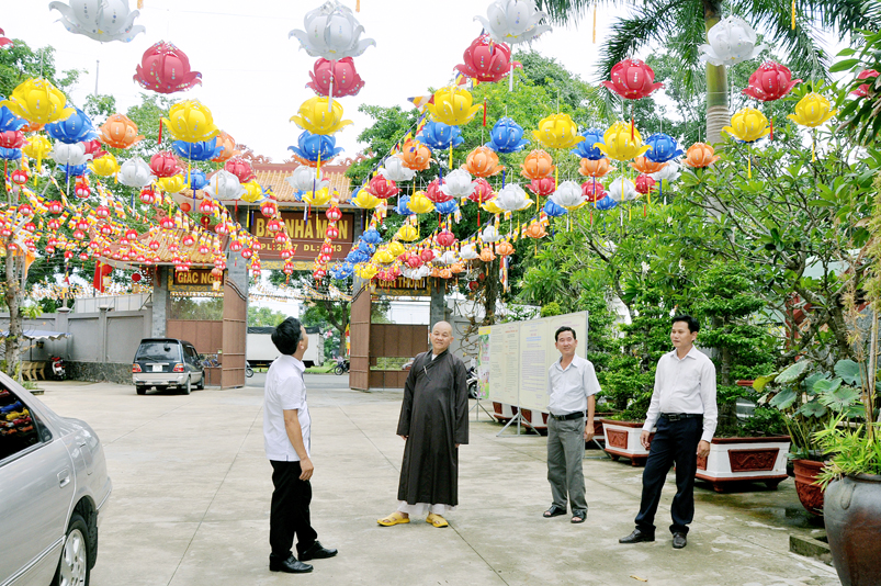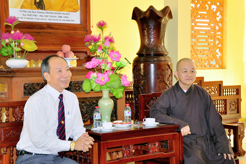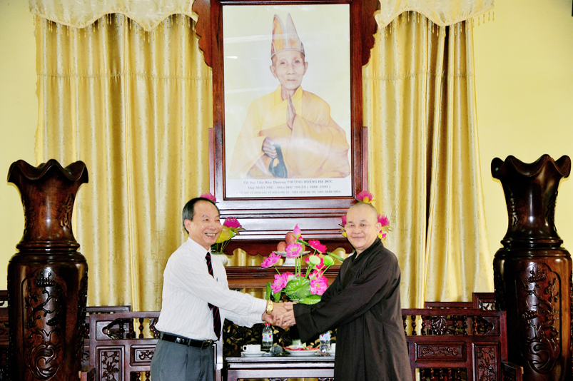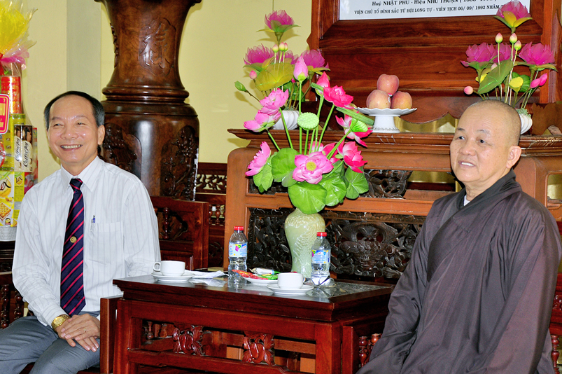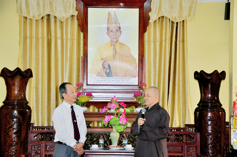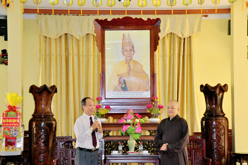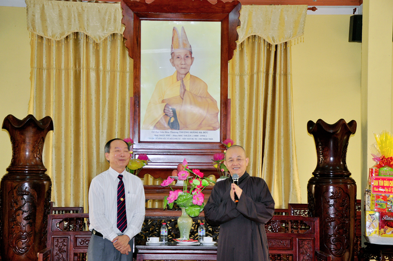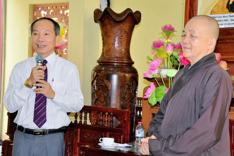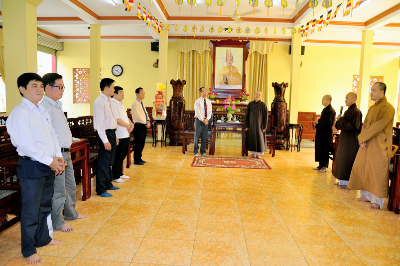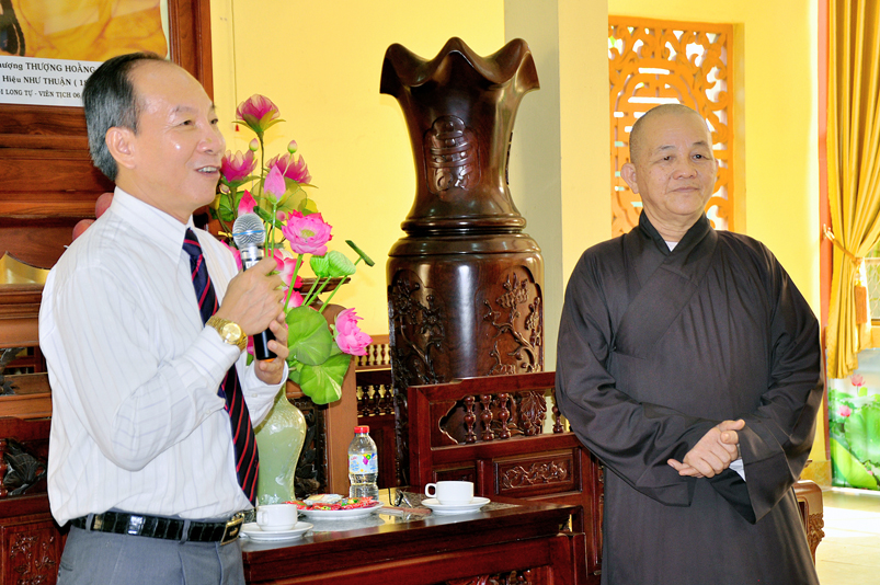 Phái đoàn do ông Trần Thanh Hùng – Phó ban Tôn giáo Chính phủ làm trưởng đoàn. Tiếp phái đoàn, gồm có quý vị đại diện Ban Tôn giáo, Ban Dân vận tỉnh Long An, Hoà thượng Thích Minh Thiện – Uỷ viên HĐTS, Phó ban Hoằng pháp Trung ương GHPGVN, Trưởng Ban Trị sự GHPGVN tỉnh Long An cùng chư tôn đức Ban Thường trực Trị sự Phật giáo tỉnh Long An.