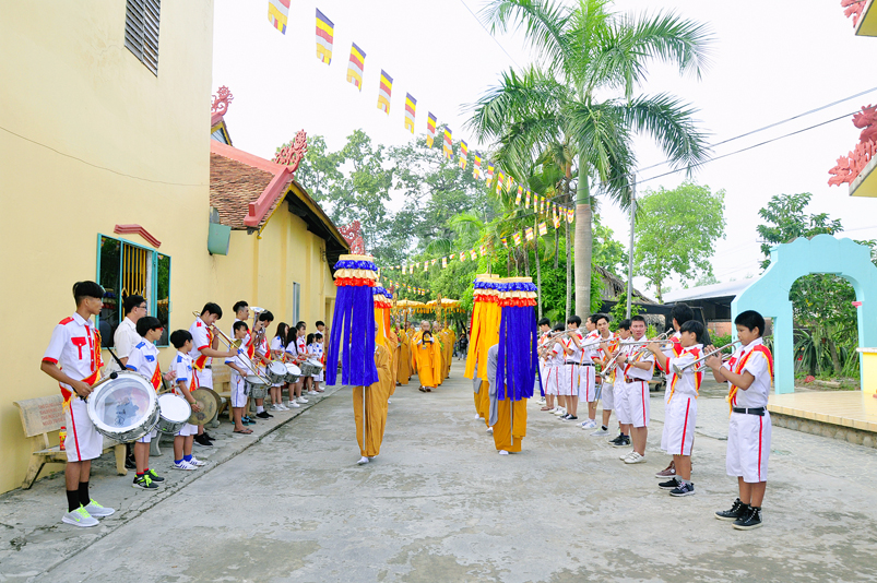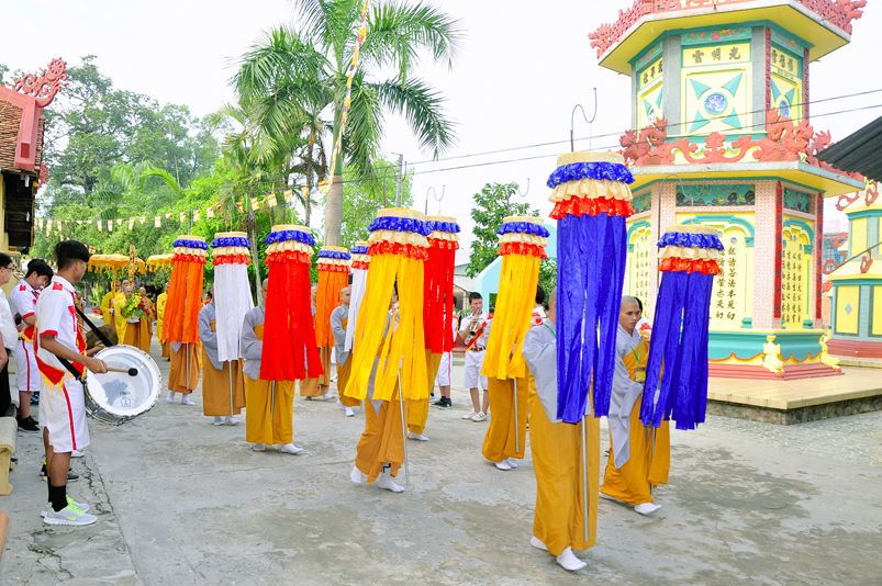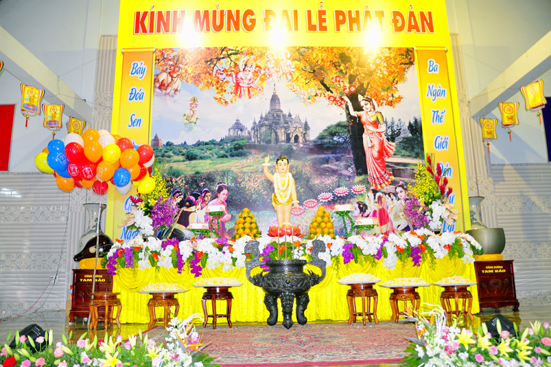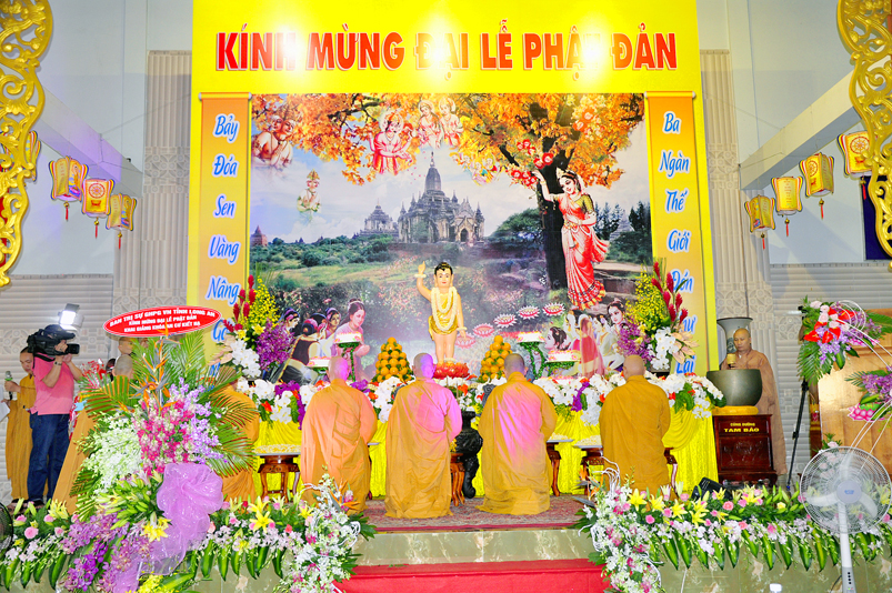 Trong khói trầm hương lan tỏa, chư Tôn đức Tăng Ni đồng kính niệm dâng hương, tiến hành nghi thức cúng dường Phật Đản sanh. Đất trời Đức Hòa như bừng chuyển kính mừng mỗi bước chân của Đức Từ Phụ giáng trần: