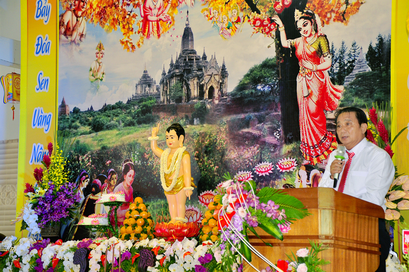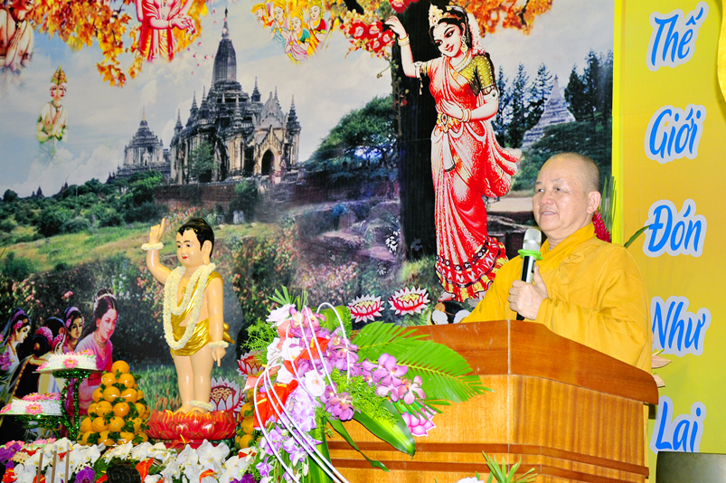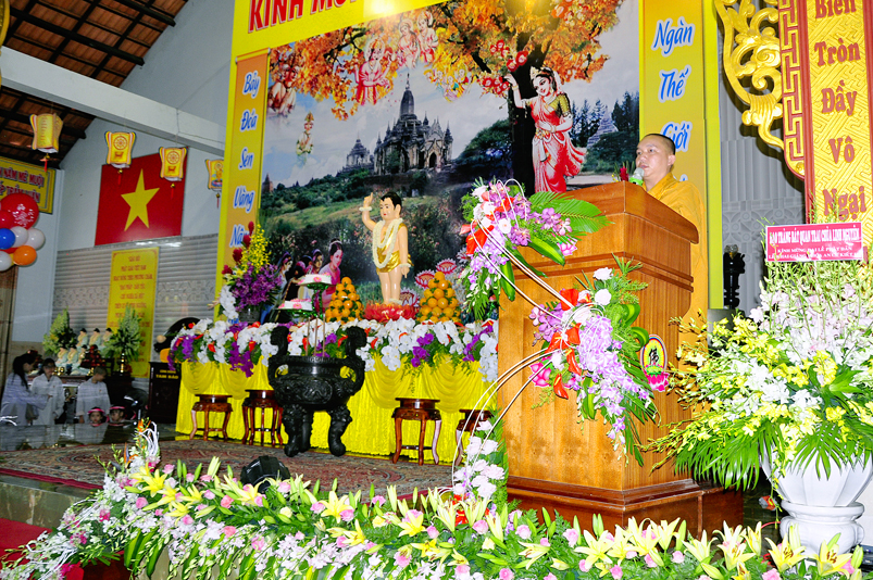 Trong giây phút trang trọng này, Ban tổ chức cũng đã cung thỉnh HT. Thích Thiện Phúc, Trưởng ban tổ chức buổi lễ tuyên đọc Diễn văn kính mừng Phật đản của Hòa thượng Chủ tịch HĐTS TW GHPGVN.