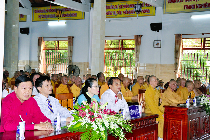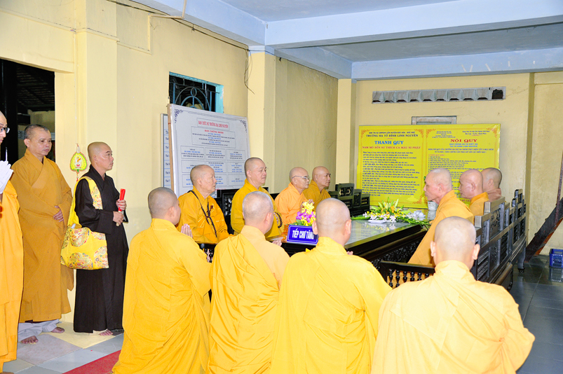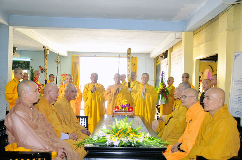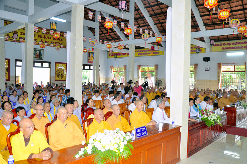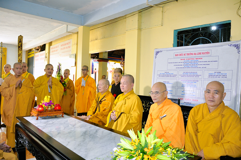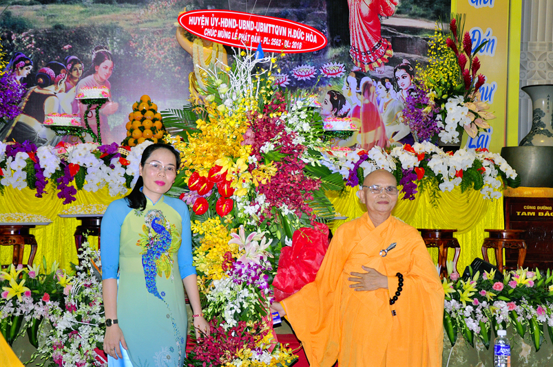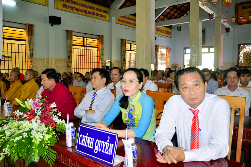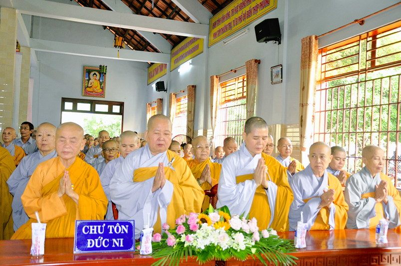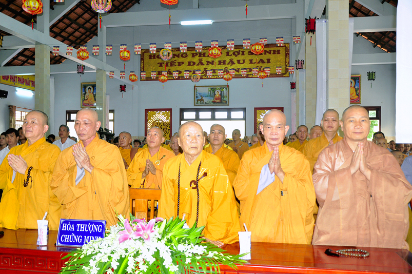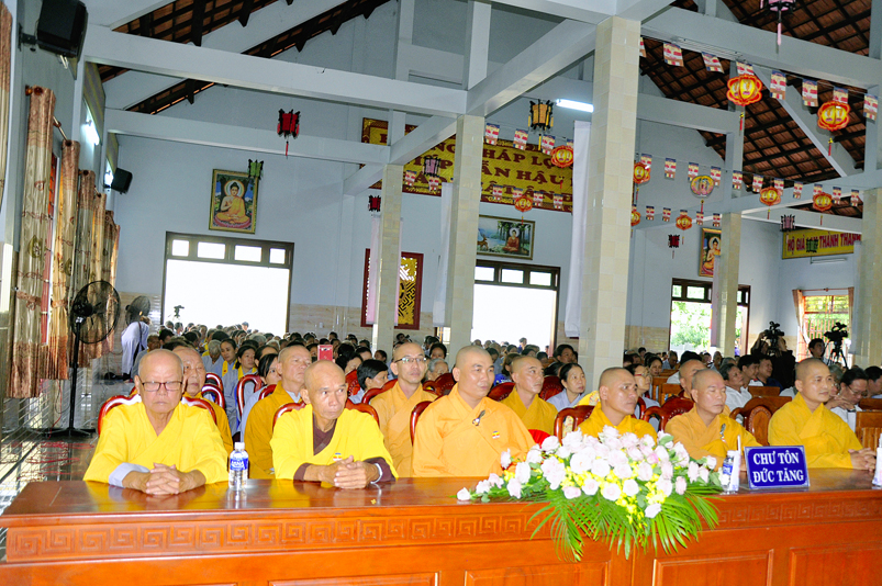 Tham dự và chứng minh buổi lễ, Ban tổ chức cung kính cung nghinh sự hiện diện của chư Tôn Giáo phẩm: HT. Thích Thiện Huệ – Chứng minh BTS GHPGVN tỉnh Long An; HT. Thích Trí Khai – Cố vấn Chứng minh BTS GHPGVN liên huyện Đức Hòa – Đức Huệ; HT. Thích Minh Thiện – UVHĐTS, Phó Ban Hoằng Pháp TƯ GHPGVN – Trưởng BTS GHPGVN tỉnh Long An; HT. Thích Chơn Đạo – Giáo thọ trường Trung cấp Phật học tỉnh Long An; TT. Thích Đức Hoàng – Phó Ban trị sự GHPGVN tỉnh Long An; HT. Thích Thiện Phúc – UV BTS GHPGVN tỉnh Long An, Trưởng Ban Trị sự GHPGVN liên huyện Đức Hòa – Đức Huệ; TT. Thích Minh Trung – Uỷ viên BTS GHPGVN tỉnh Long An, Phó trưởng ban Thường trực Ban Trị sự GHPGVN liên huyện Đức Hòa – Đức Huệ, ĐĐ. Thích Lệ Duyên – Chánh Thư ký BTS GHPGVN tỉnh Long An, Phó Ban Trị sự GHPGVN liên huyện Đức Hòa – Đức Huệ cùng chư Tôn đức Tăng Ni trong thường trực Ban Trị sự Phật giáo liên huyện; Chư Tôn đức Ban Trị sự các huyện, thị, thành phố, Trụ trì các tự viện, Tịnh thất tại trong huyện.